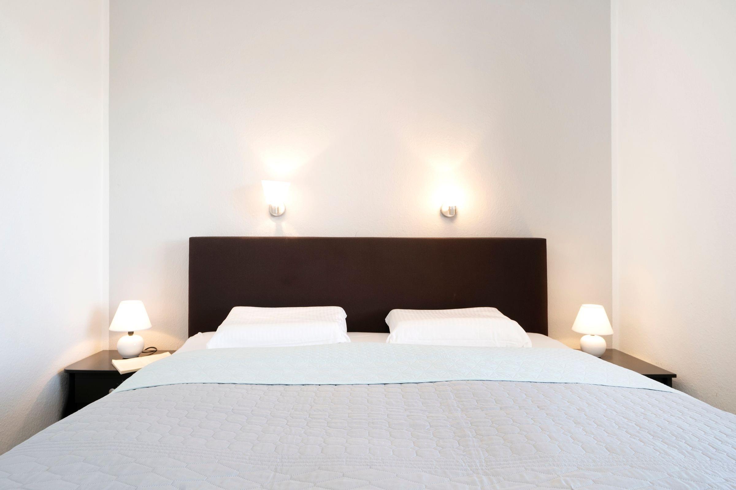 Schlafzimmer: 1 Doppelbett (2x 80x200 cm), Kleiderschrank, Verdunkelung (Jalousie + Vorhang)