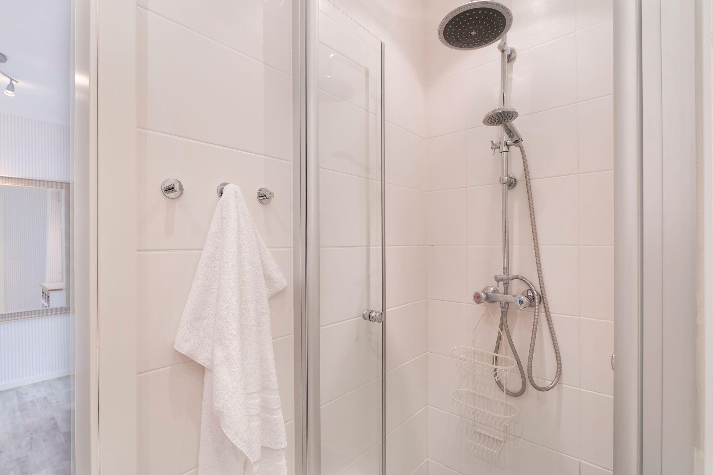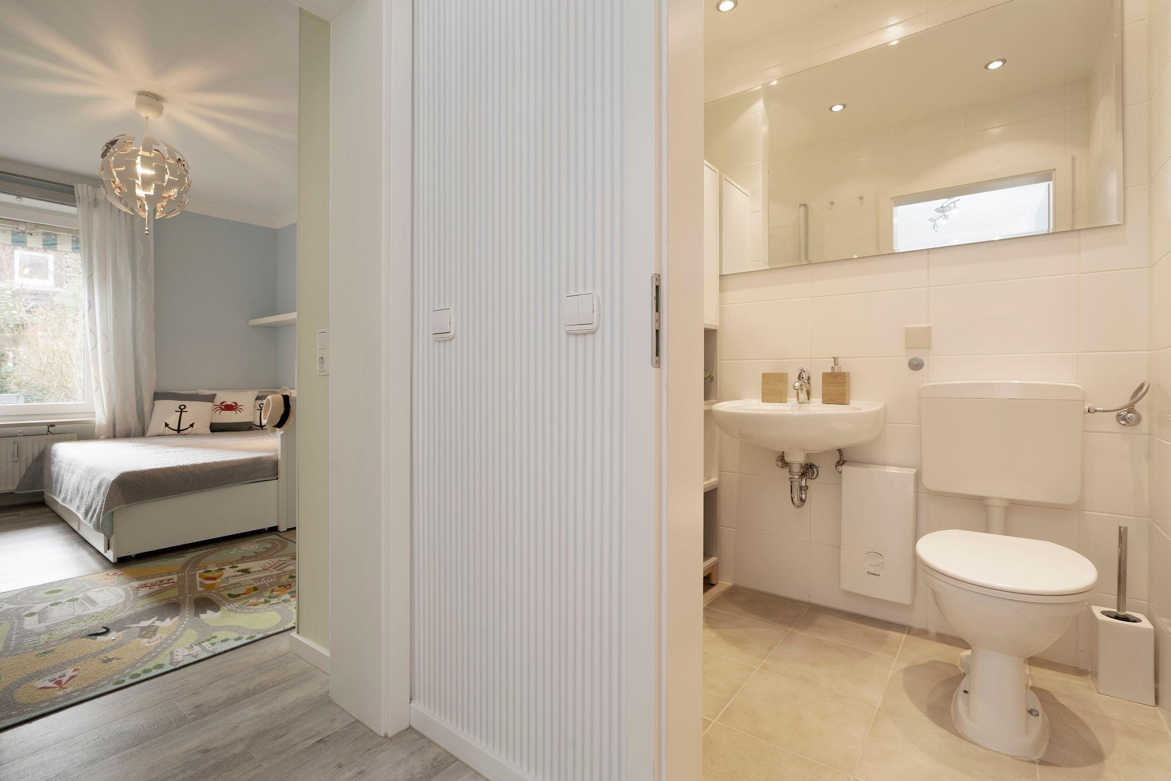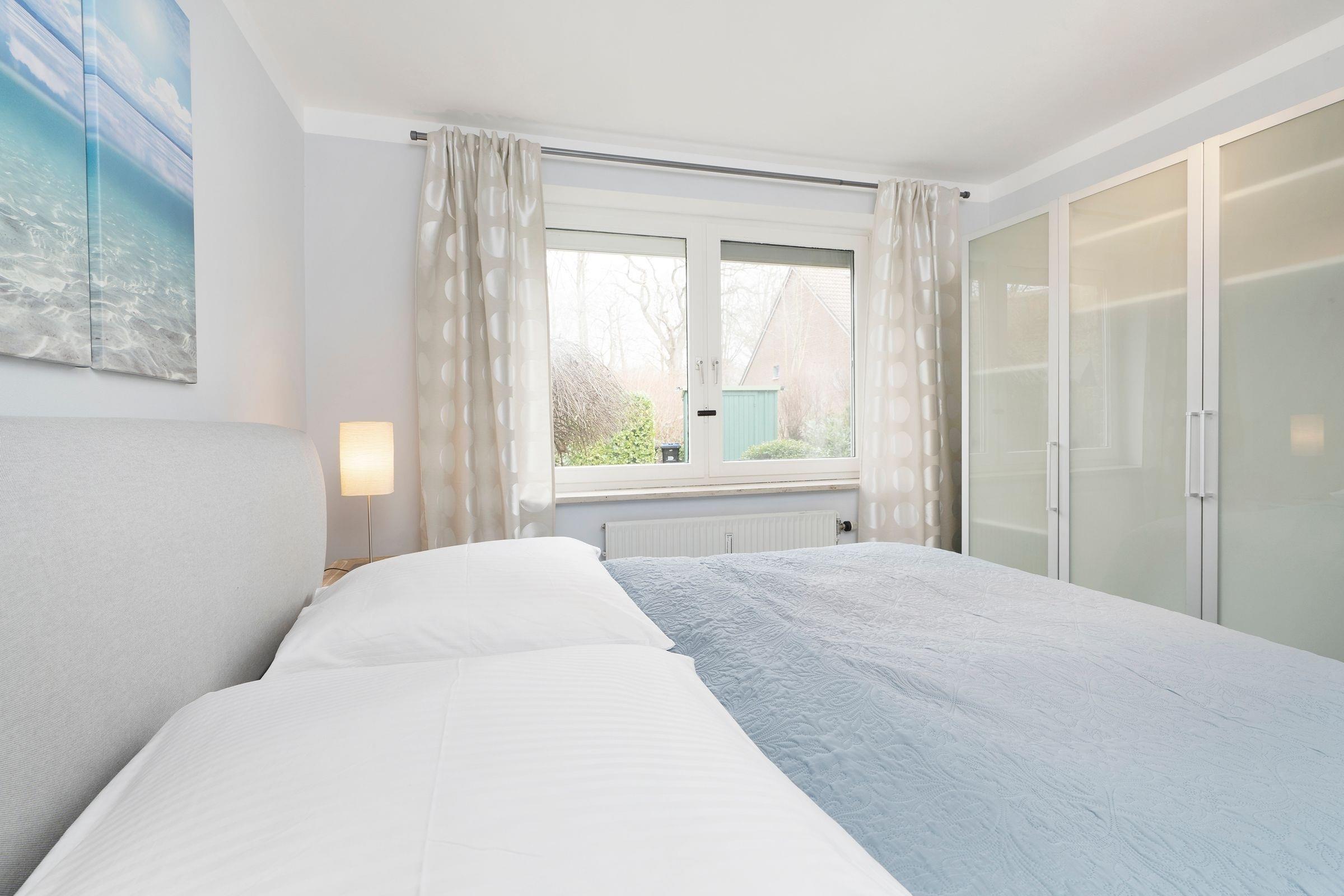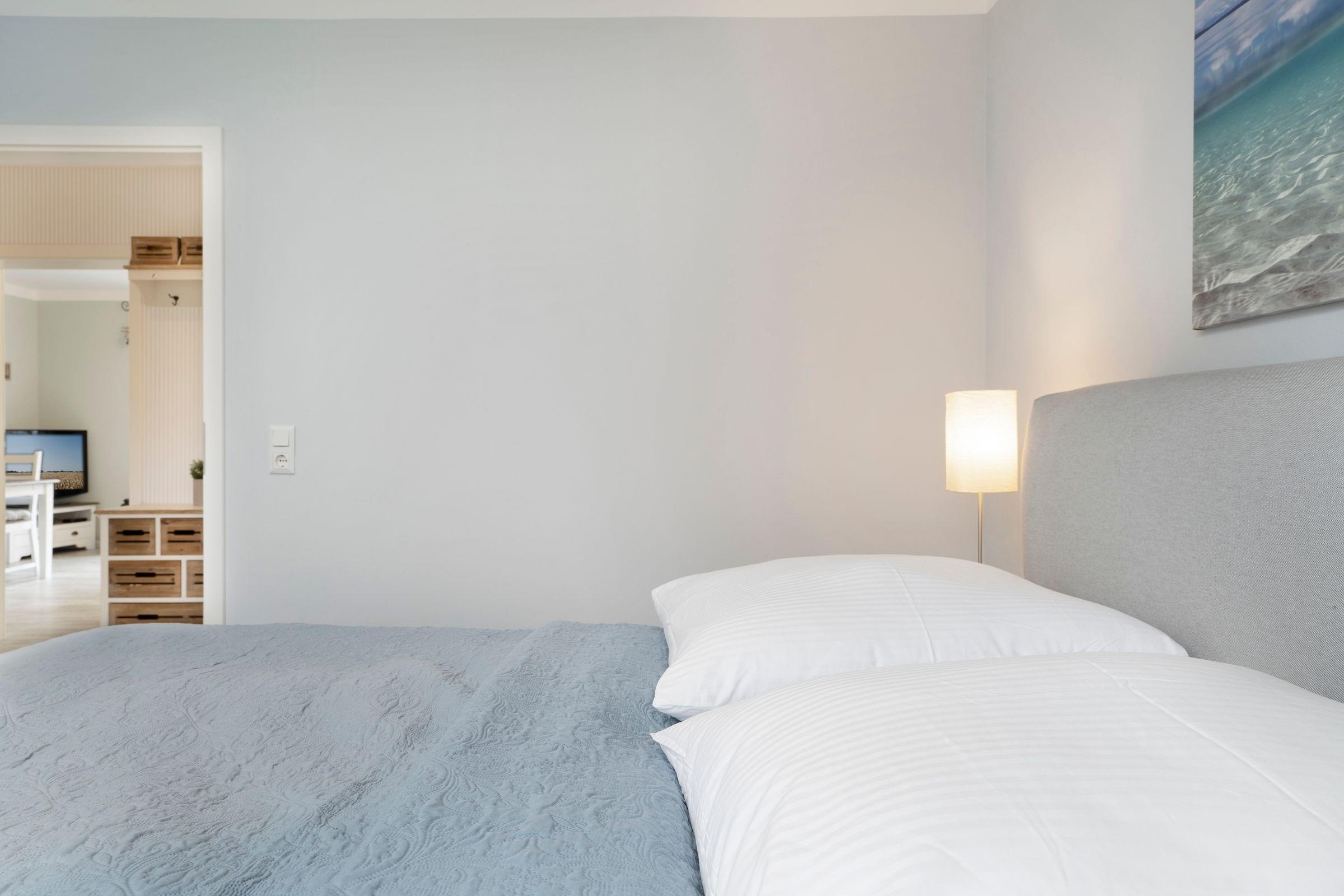 Einen himmlisch guten Schlaf versprechen die beiden separaten Schlafzimmer, die jeweils mit Doppelbetten (1x Boxspringbett 180x200cm und 1x Doppelbett 2x 90x200cm) ausgestattet sind. Das funktionale Badezimmer mit ebenerdiger Dusche rundet das Angebot dieser Ferienwohnung ab.
