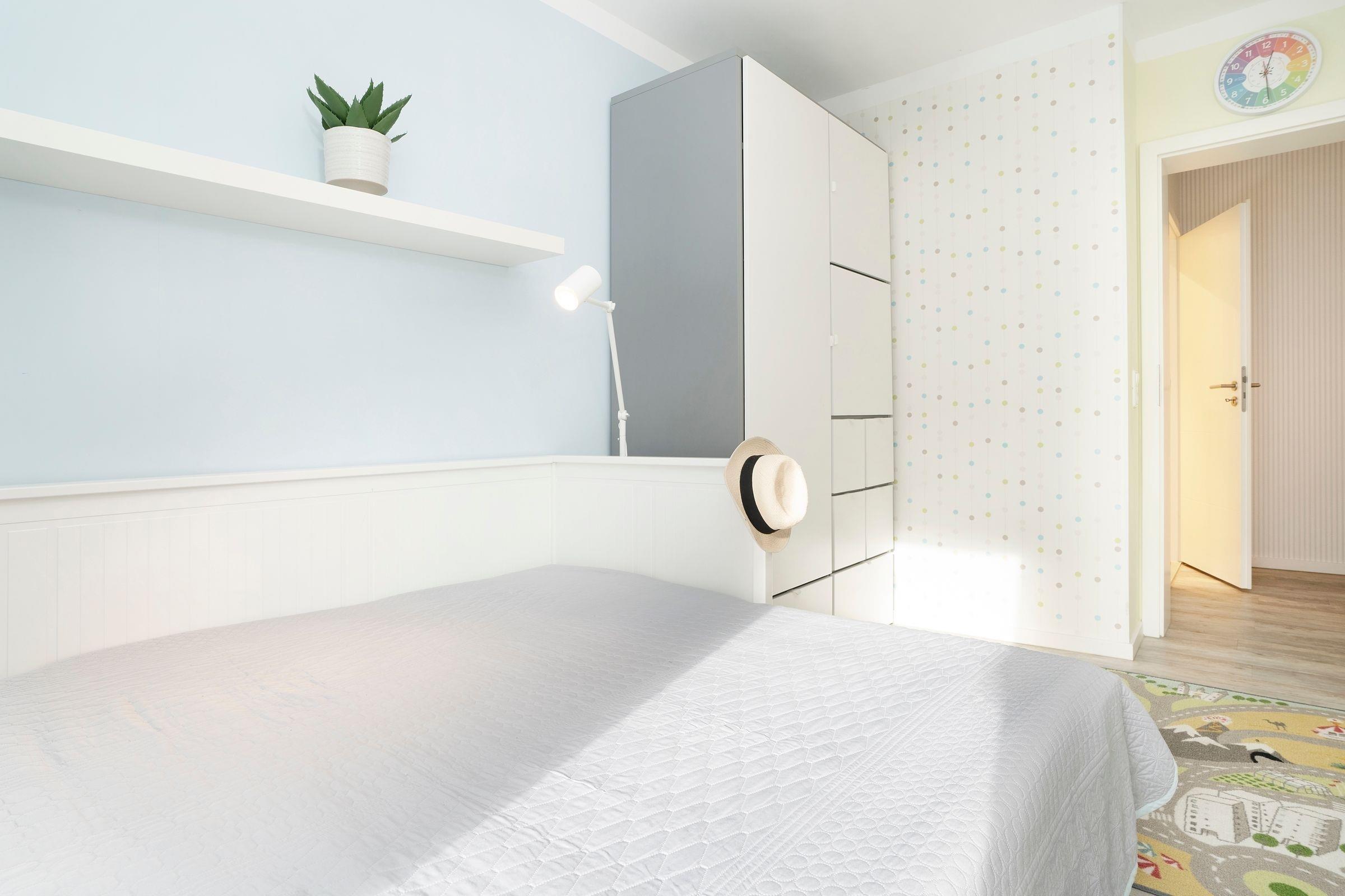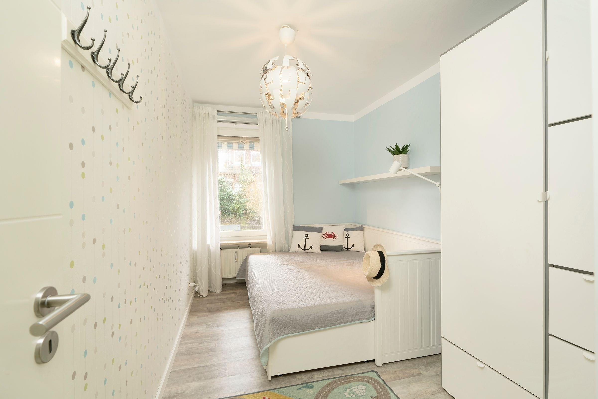 Schlafzimmer 2: 1 Doppelbett (2x 90x200 cm), Kleiderschrank, Verdunkelung: Rollo, Platz für Babybett vorhanden