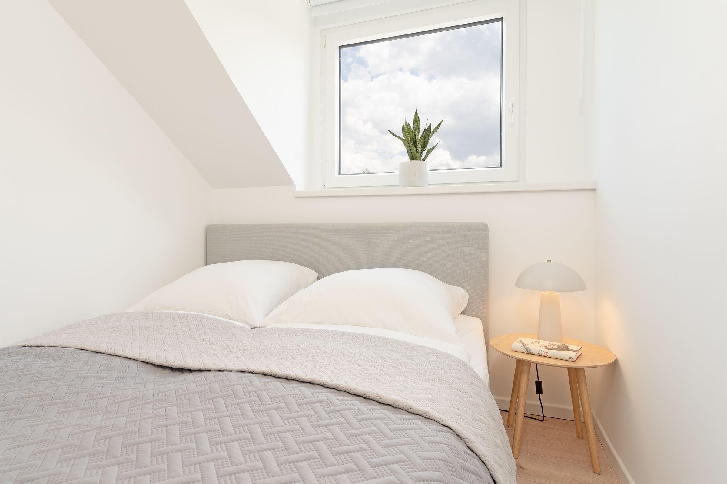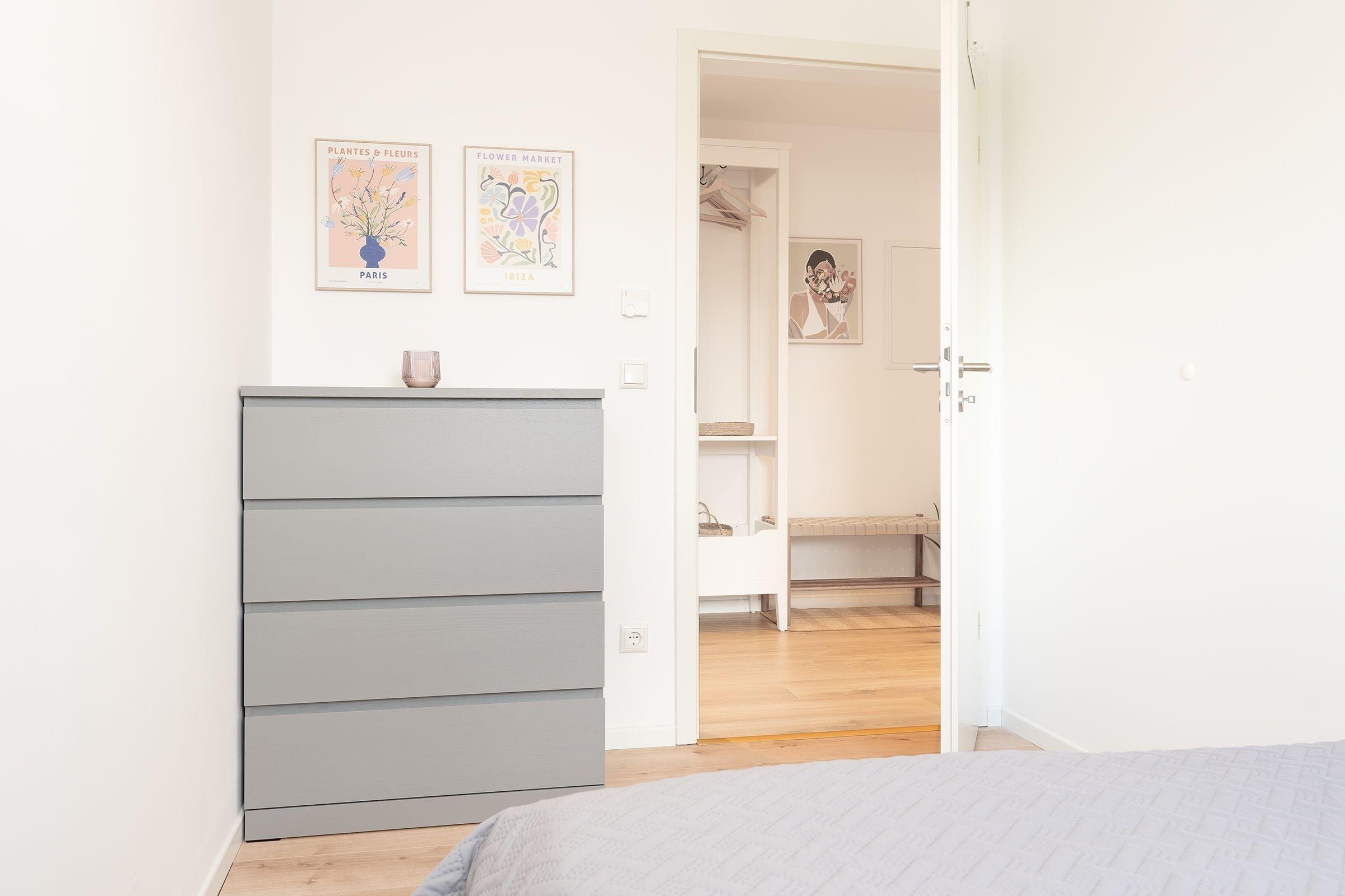 Schlafzimmer 1: 1 Doppelbett (160 x 200 cm), Kommode, Verdunkelung: Rollo, kein Platz für Babybett vorhanden