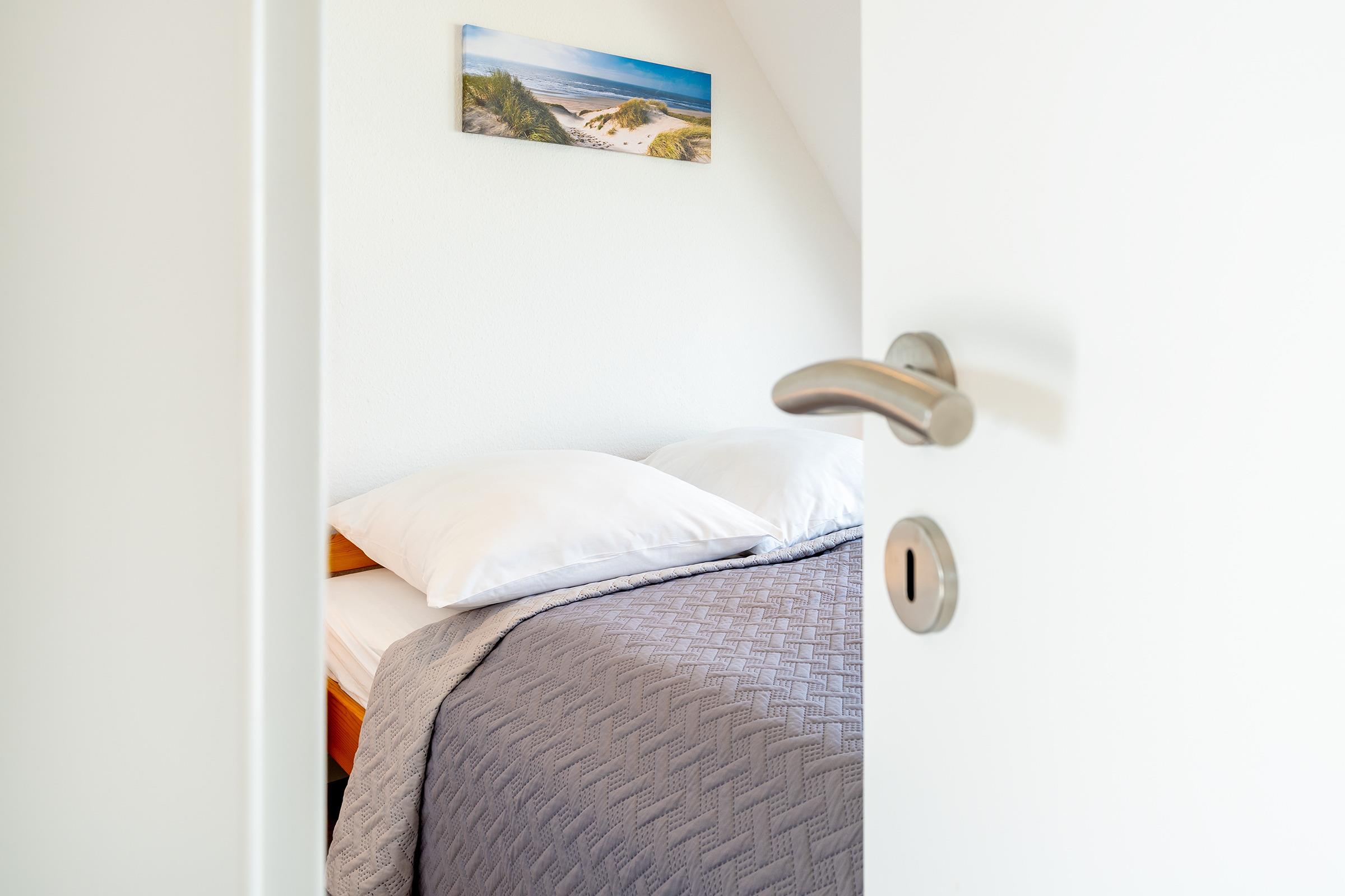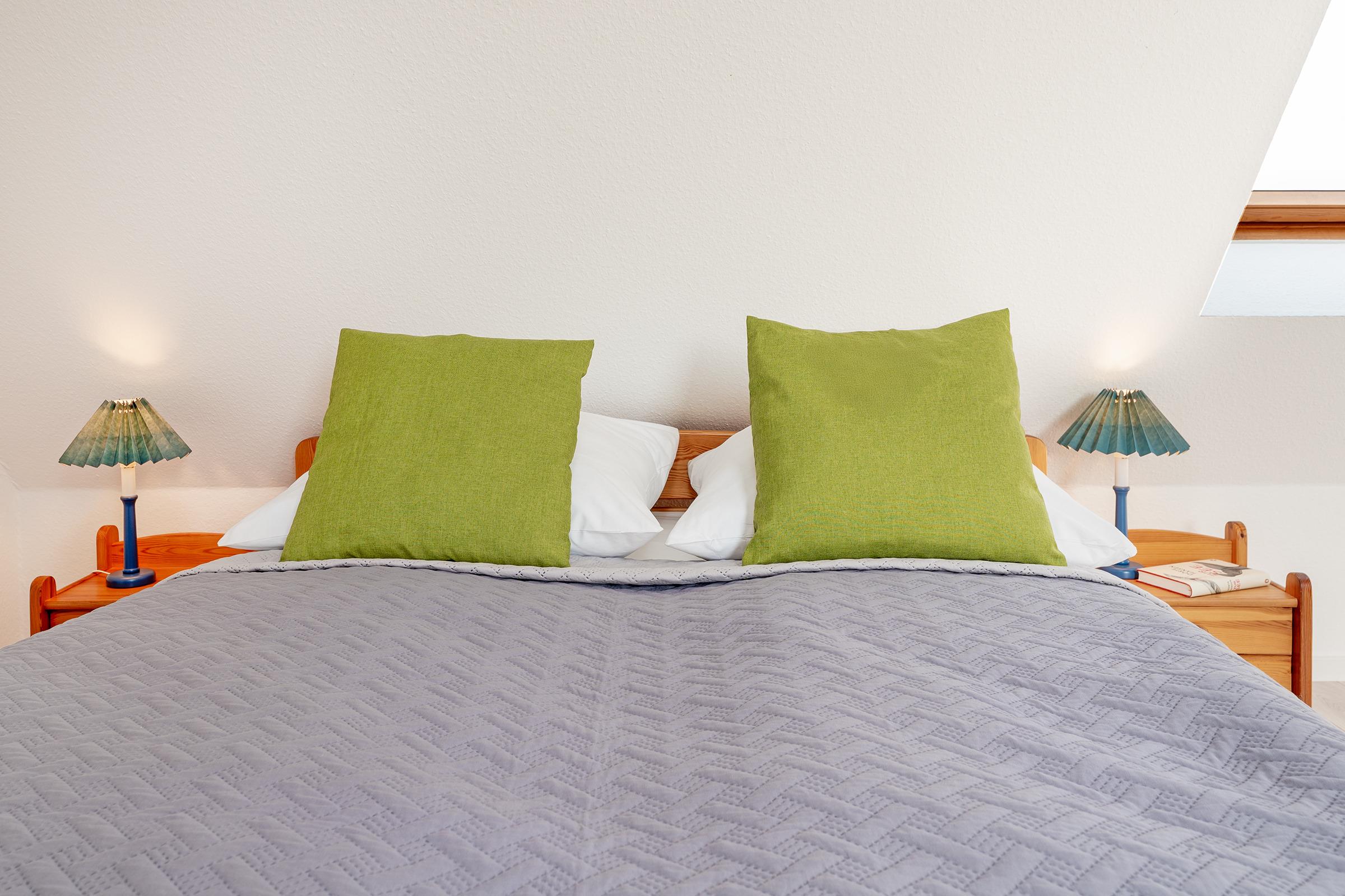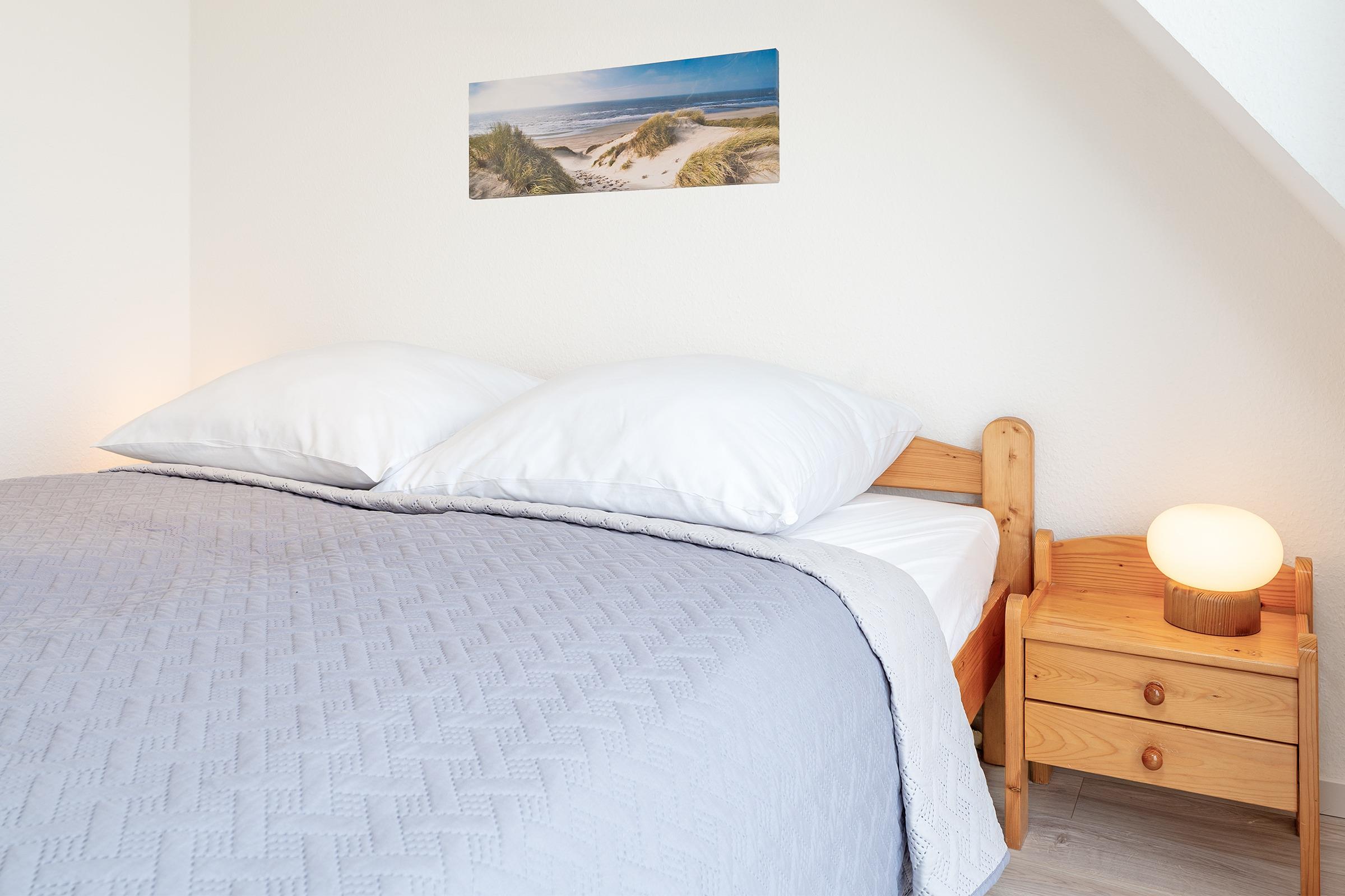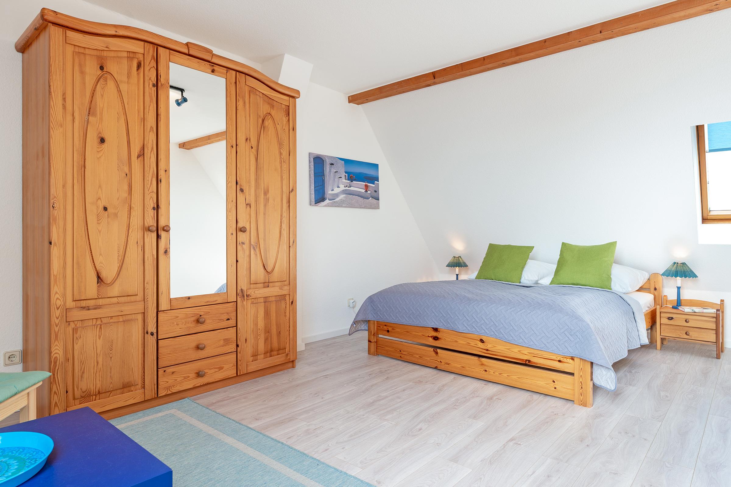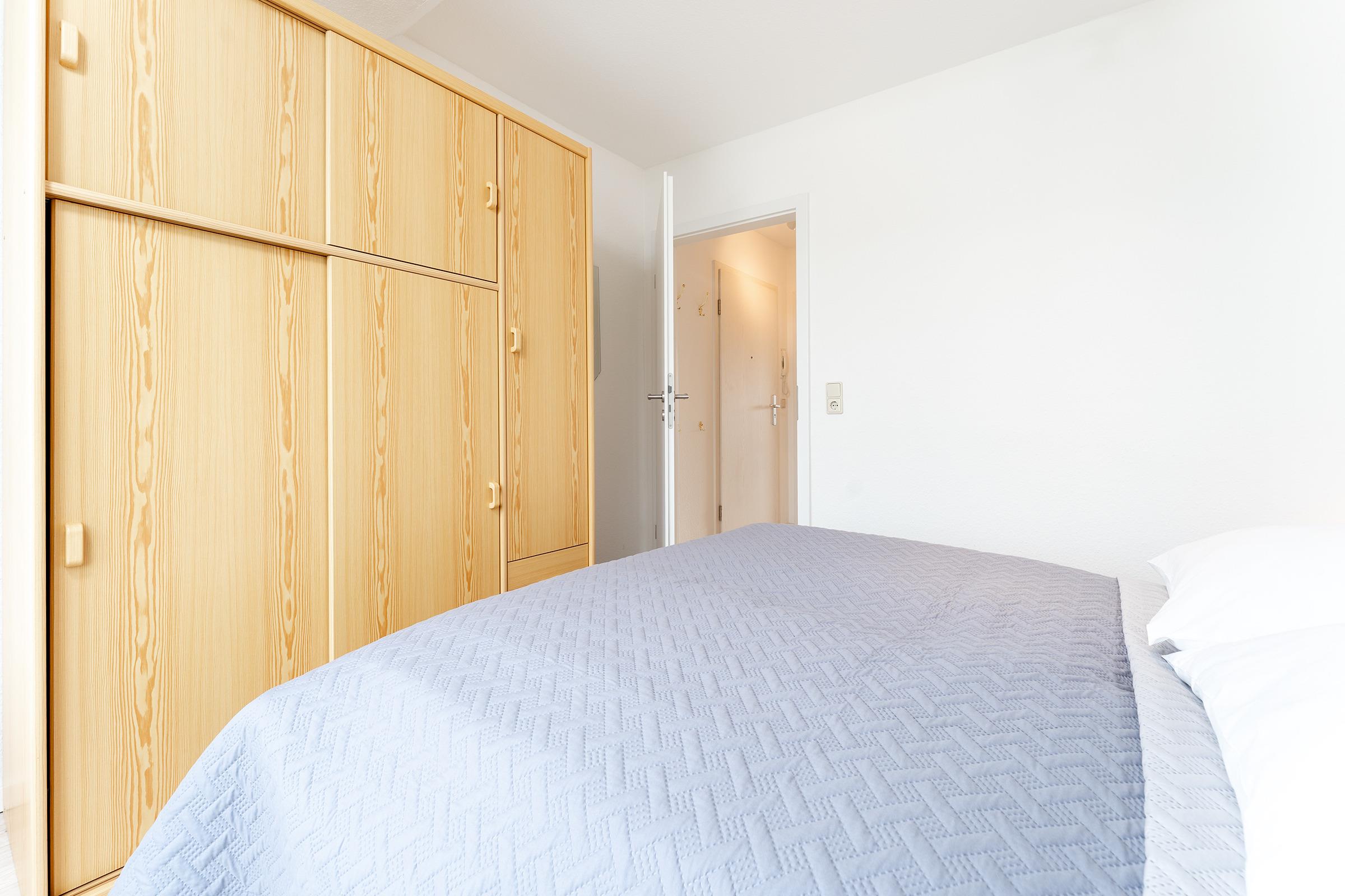 Schlafzimmer 1: 1 Doppelbett (2x 80x200 cm), Kleiderschrank, kein Platz für Babybett vorhanden