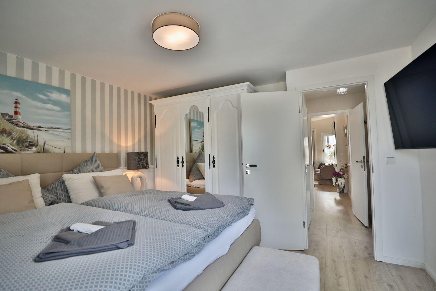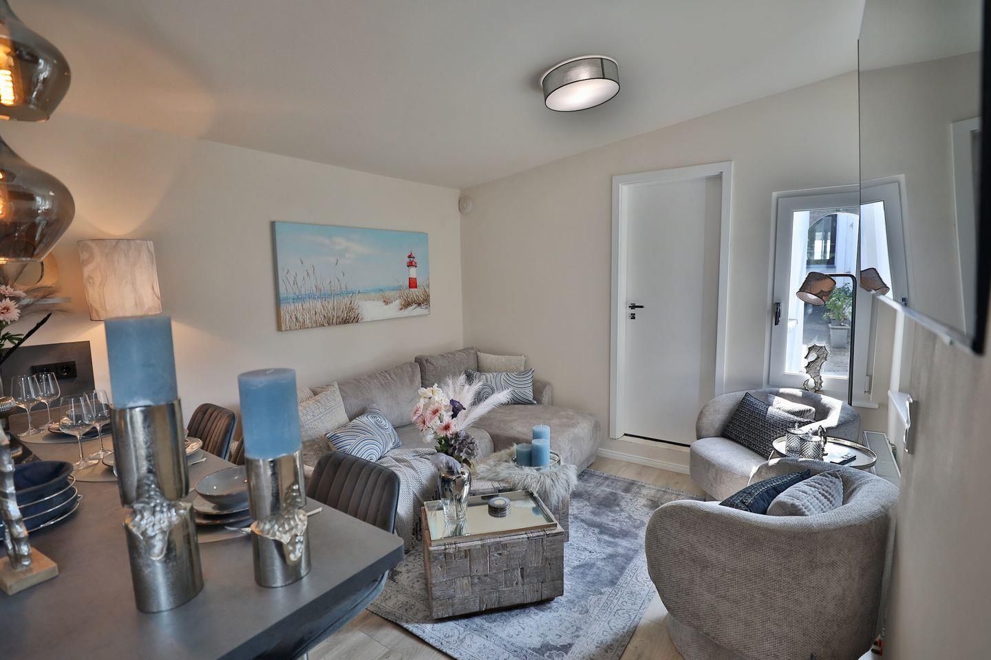 Das moderne Ferienhaus im Sommer 2025 fertiggestellt überzeugt mit einer voll ausgestatteten, offenen Küche und einem großzügigen Küchentresen – ideal für gesellige Abende. Der helle Wohnbereich ist mit viel Liebe zum Detail eingerichtet und lädt zum Entspannen ein. Im separaten Schlafzimmer erwartet Sie ein komfortables Doppelbett und ein hochwertiger Kleiderschrank im Landhausstil.