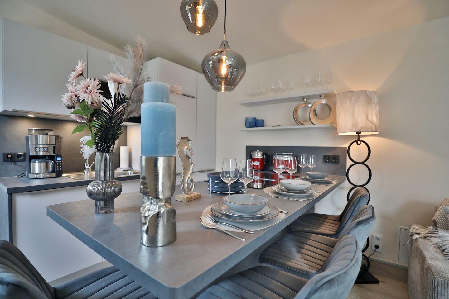 • Hochwertige Einrichtung & offene Küche mit Tresen