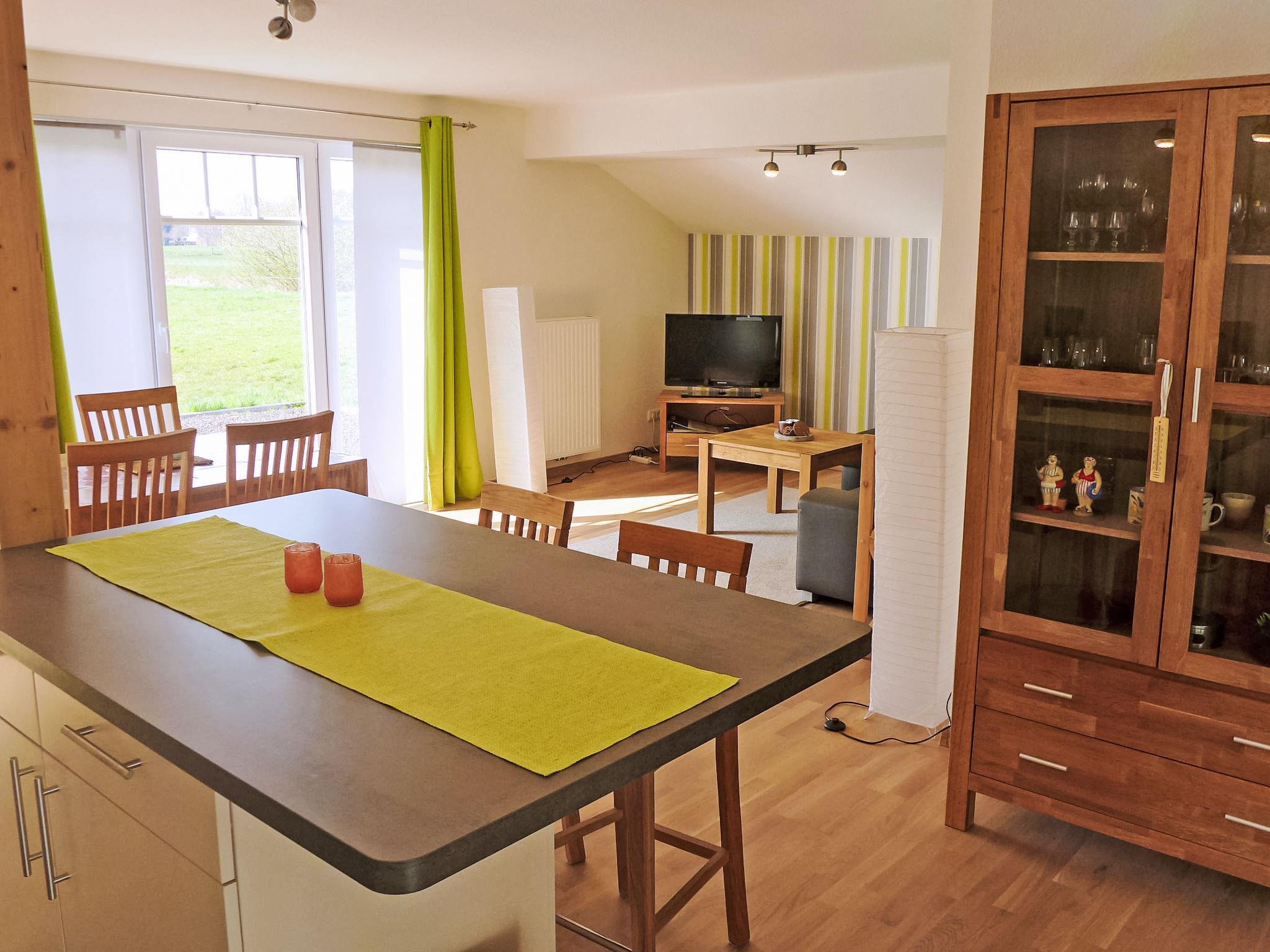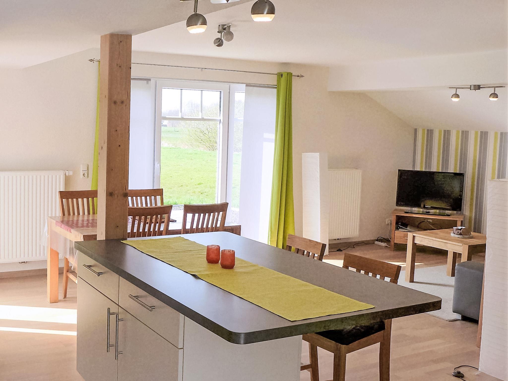 2-room apartment 45 m2, on the ground floor. Modern and tasteful furnishings: living/dining room 30 m2 with satellite TV (flat screen), radio and CD-player. Exit to the terrace. 1 room 9 m2 with 1 double bed (2 x 90 cm, length 200 cm). Open kitchen (oven, 4 ceramic glass hob hotplates, electric coffee machine). Shower/WC. Small terrace. Terrace furniture. View of the countryside. Facilities: hair dryer. Internet (WiFi, free). Please note: non-smokers only. Smoke alarm.