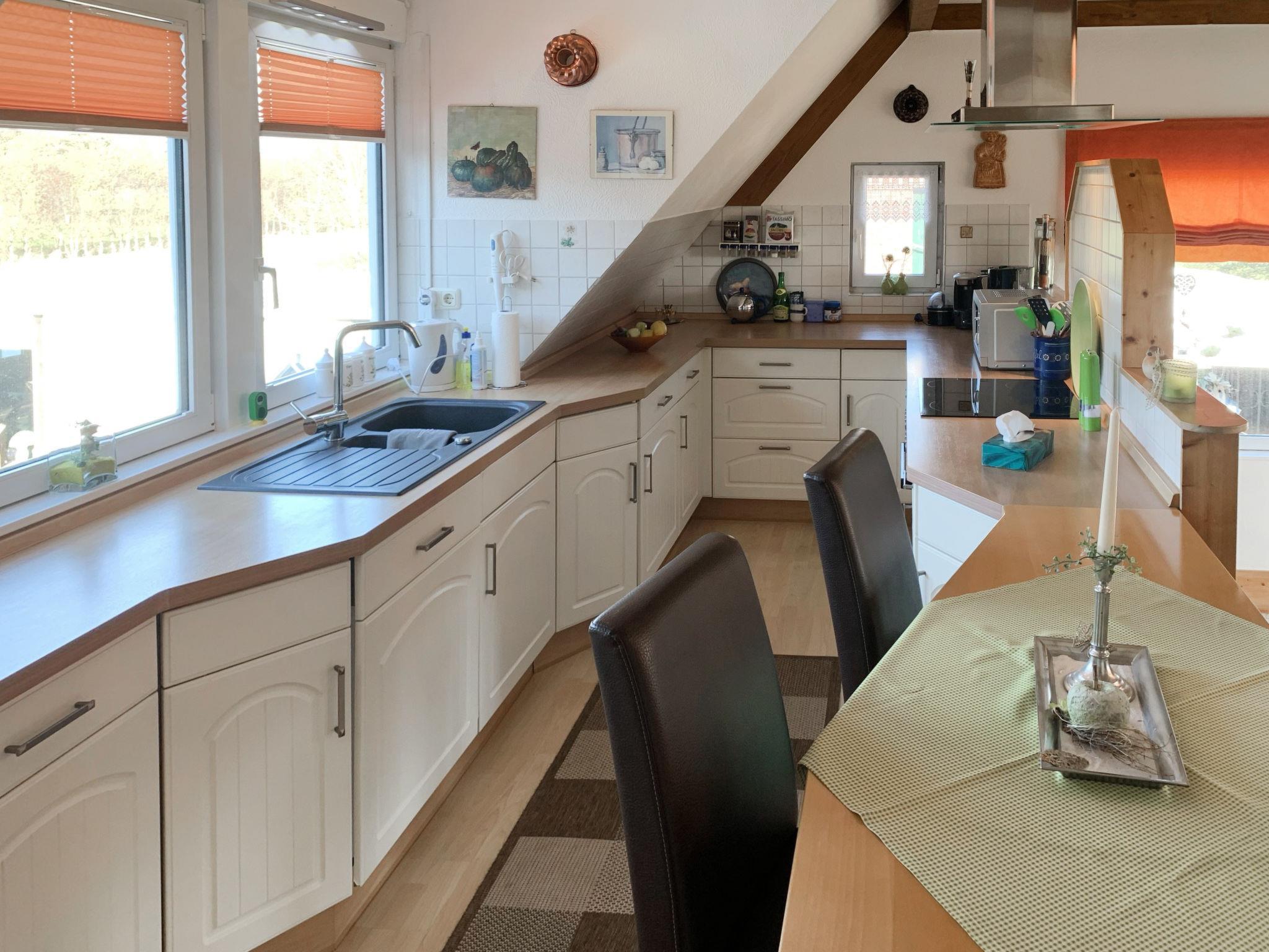 2-room apartment 70 m2, on the upper floor. Beautiful and cosy furnishings: living/dining room with satellite TV (flat screen), radio. 1 room with 1 double bed (2 x 90 cm, length 200 cm). Kitchenette (oven, dishwasher, 4 ceramic glass hob hotplates, toaster, kettle, microwave, electric coffee machine). Shower/WC. Terrace. Terrace furniture, barbecue (portable). Facilities: hair dryer. Internet (WiFi, free). Please note: non-smokers only. Smoke alarm.