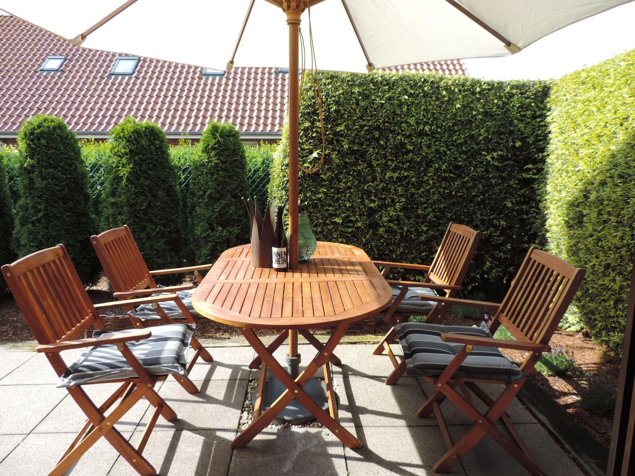In addition to the lovingly furnished house, the property is certainly another highlight. There are a total of 2 terraces at the house which are wonderful at any time of day. In addition to our seating for up to 4 people, there is a large garden that is completely fenced in and surrounded by a hedge. It has a large meadow. The fence is 1.60 metres high.