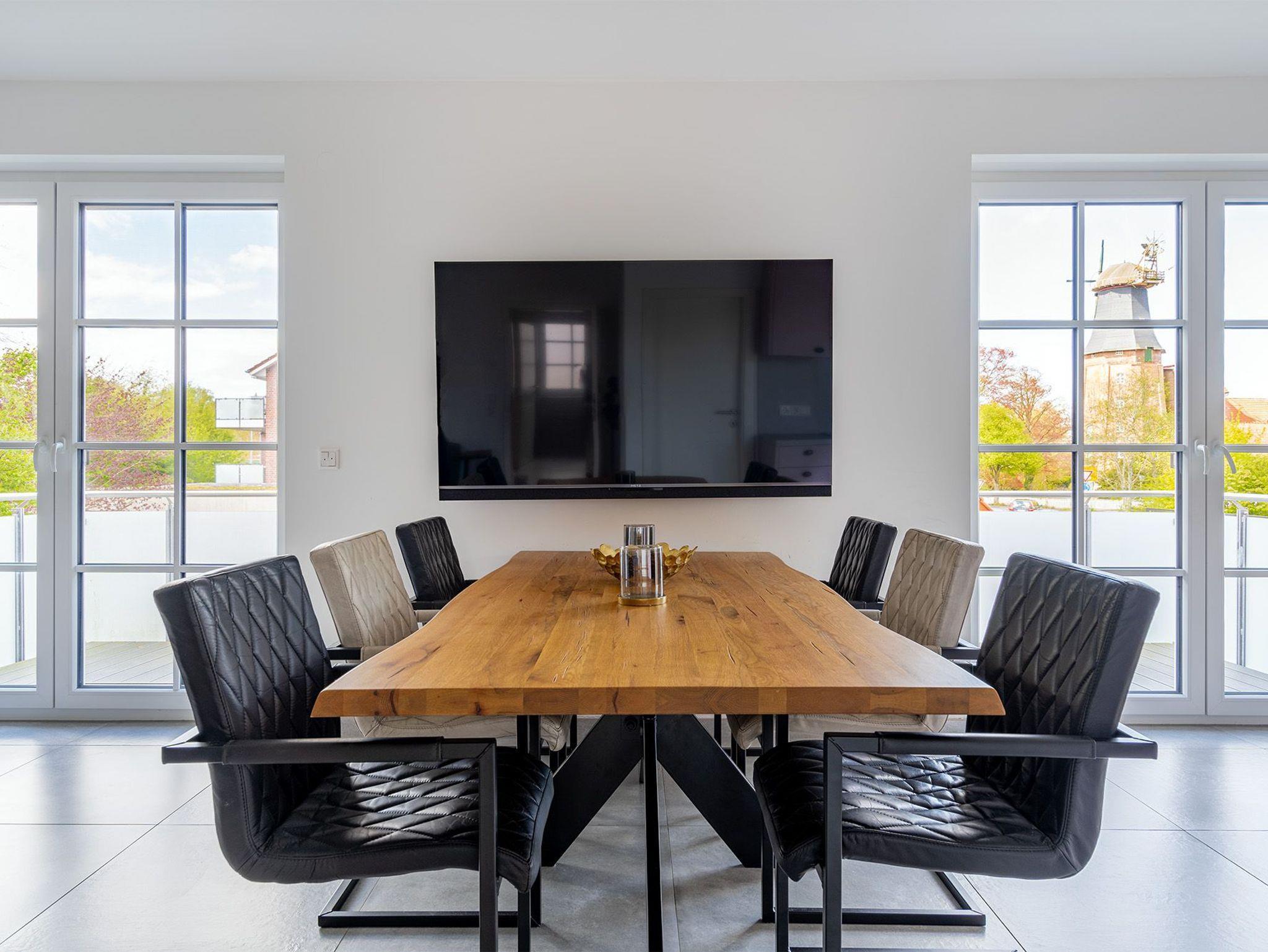 Unmittelbar an der Hager Mühle, dem Schloss Nordeck und der Burg Berum gelegen befindet sich unsere Wohnung Mühlenblick 4 im Luftkurort Hage. Diese verfügt auf etwa 90qm über eine hellen und modernen Wohn-Ess-Bereich mit großer Sofalandschaft und voll ausgestatteter Küche sowie einen Balkon, vom dem man direkten Mühlenblick genießen kann. Die beiden Schlafzimmer mit bequemen und hochwertigen Boxspringbetten verfügen über ausreichend Ablageflächen und TV's. Neben dem Tageslichtbad mit ebenerdiger Dusche rundet das zusätzliche Gäste-WC den Komfort dieser Wohnung ab. Ein weiteres Highlight im Hausflur ist die gemeinschaftlich nutzbare Bibliothek mit Lese- und Spielmaterial. Dank der herausragenden zentralen, dennoch ruhigen Lage sind Restaurants, Supermärkte etc. bequem zu Fuß erreichbar. Ein eigener Parkplatz am Haus sowie ein Abstellraum für Fahrräder stehen Ihnen selbstverständlich zur Verfügung.