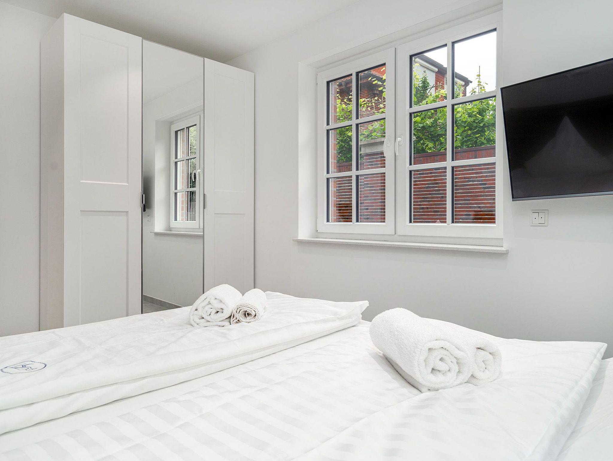 In unserer Wohnung Mühlenblick 1 in Hage finden Sie auf etwa 90qm einen hellen und gemütlichen Wohn-Ess-Bereich mit einer voll ausgestatteten Küche und ausreichend Sitzmöglichkeiten für den gemeinsamen Urlaub mit Freunden und Familie. Außerdem verfügt sie über zwei Schlafzimmern mit bequemen und hochwertigen Boxspringbetten mit Ablagefläche sowie ein Tageslichtbad mit ebenerdiger Dusche. Auch ein zusätzliches Gäste-WC macht die Wohnung sehr komfortabel. Den Garten mit Terrasse erreichen Sie durch den Wohnbereich, den auch Ihr Vierbeiner sicher zu schätzen weiß. Ein weiteres Highlight im Hausflur ist die gemeinschaftlich nutzbare Bibliothek mit Lese- und Spielmaterial. Durch die zentrale und gute Lage erreichen Sie alles gut zu Fuß. Die Hager Mühle, das Schloss Nordeck und die Burg Berum sind nur ein Katzensprung entfernt. Selbstverständlich steht Ihnen ein eigener Parkplatz am Haus, sowie ein Abstellraum für Fahrräder zur Verfügung.