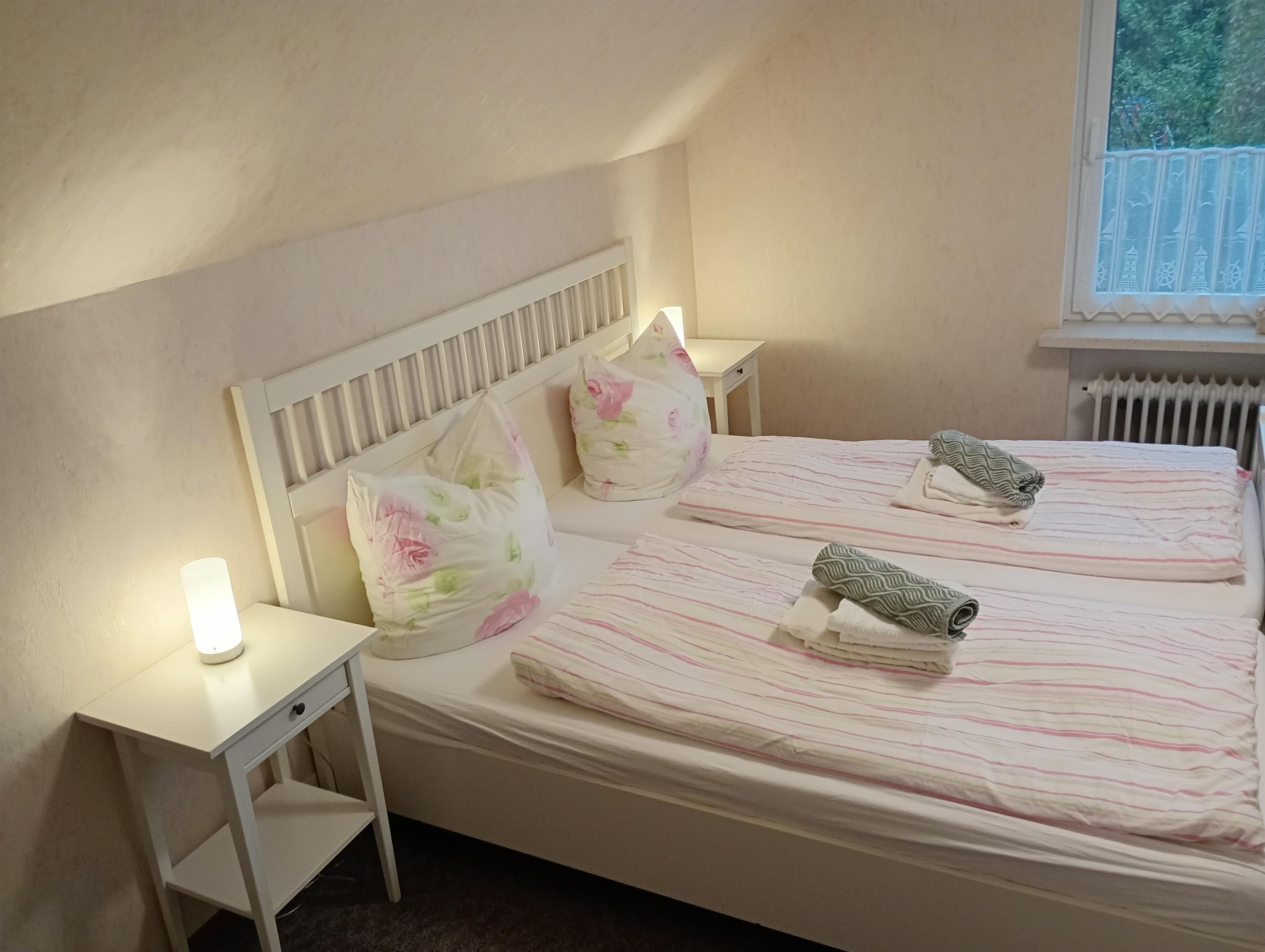 Zur Ruhe kommen Sie in den zwei Schlafzimmern mit je 180*200 Doppelbett und geräumigem Kleiderschrank.