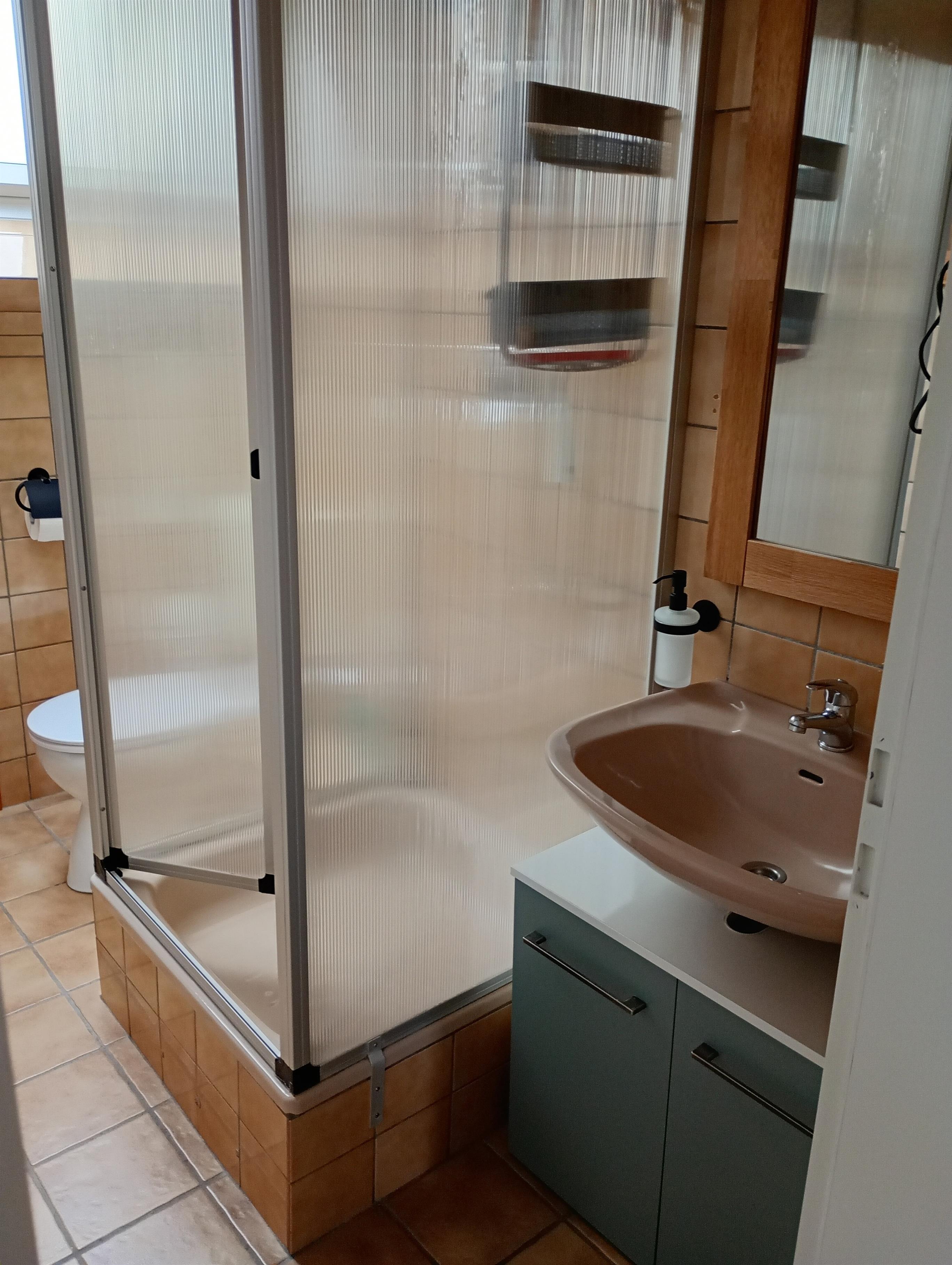 Zum Stylen bieten wir ein Tageslichtbad mit großem Spiegel, Dusche und WC sowie Waschbecken, das andere Tageslichtbad hat eine Badewanne zum Entspannen und WC sowie Waschbecken.