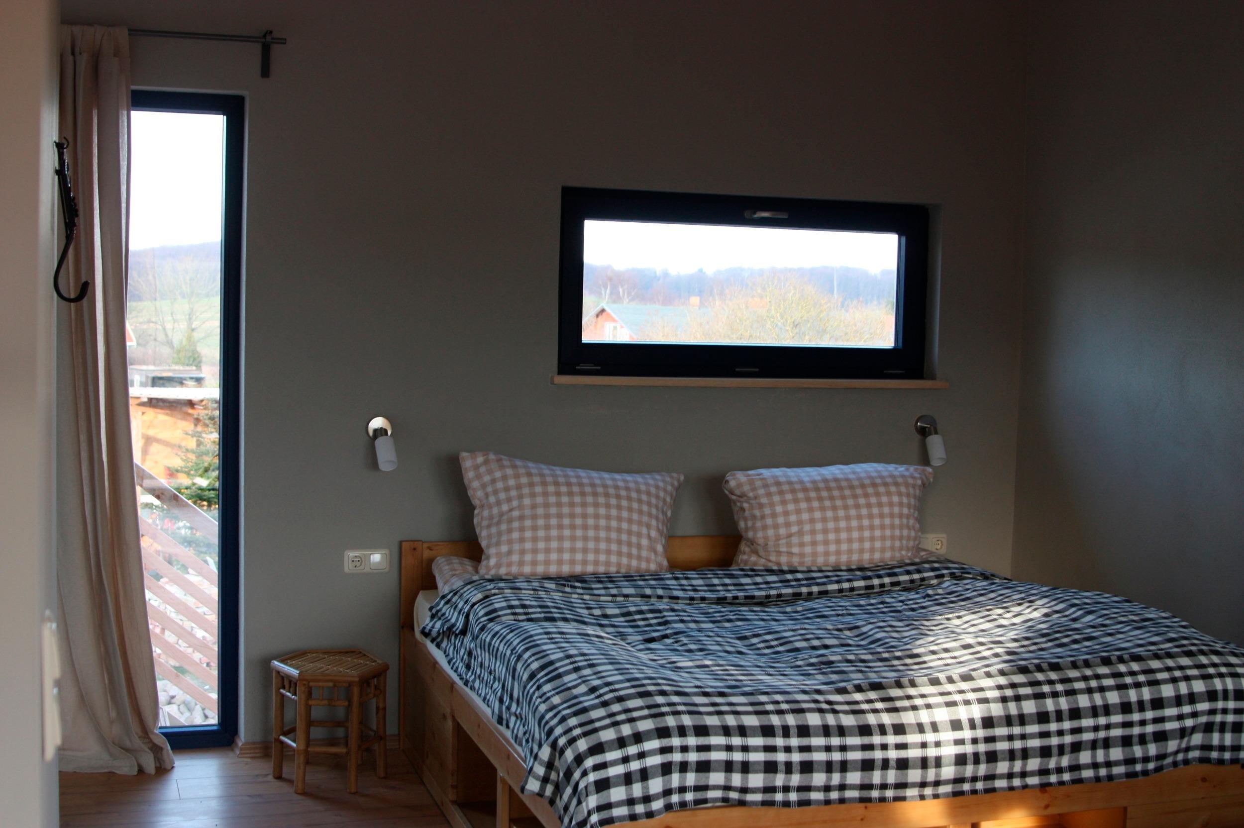 Die Wohnung verfügt über einen seperaten Eingang und einen unverstellten weiten Blick über den hauseigenen See und die zum Grundstück gehörende Weide bis zum Wald.