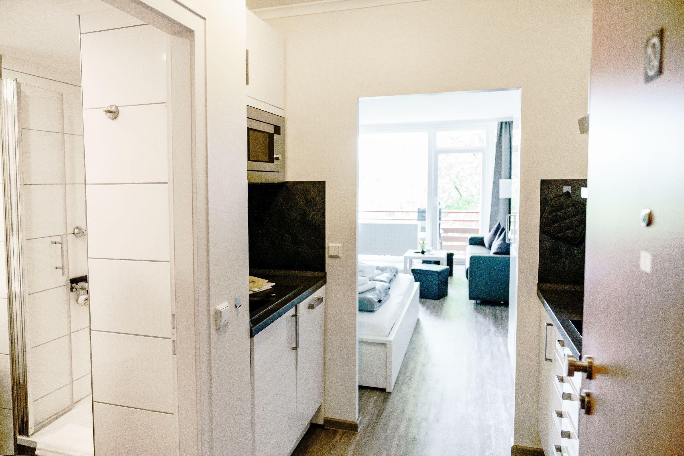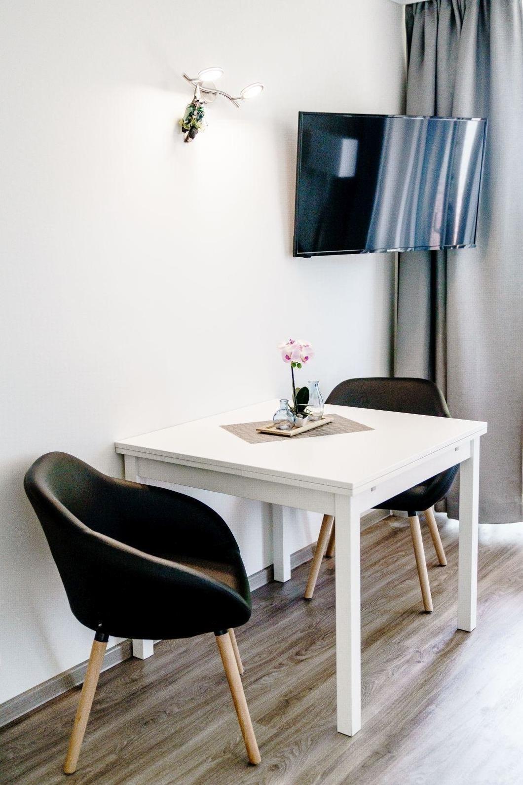 In einer modernen Ferienwohnung erwartet die Gäste eine stilvolle und komfortable Ausstattung. Das Schlafzimmer ist mit einem Doppelbett ausgestattet, während das Wohnschlafzimmer eine praktische Schlafcouch bietet. Die Küche überzeugt mit einer gut ausgestatteten Küchenzeile, die einen Geschirrspüler, Elektro-/Gasherd, Backofen, Mikrowelle, Kühlschrank, Kaffeemaschine, Toaster und Gefriermöglichkeiten umfasst. Ein Esstisch lädt zum gemeinsamen Speisen ein. Für Entspannung sorgt das Badezimmer mit Dusche und Haartrockner. Der Wohnbereich ist mit einer HiFi-Anlage und TV ausgestattet, um die Freizeit angenehm zu gestalten. Wi-Fi mit einer Geschwindigkeit von 25 MBit/s ist ebenfalls vorhanden. Die Wohnung verfügt über Heizung, Badetücher, Geschirr und Besteck sowie weitere Annehmlichkeiten wie einen Parkplatz und einen Fahrstuhl. Ein Safe und Rauchmelder bieten zusätzliche Sicherheit, während eine Garderobe für die persönliche Ablage sorgt.