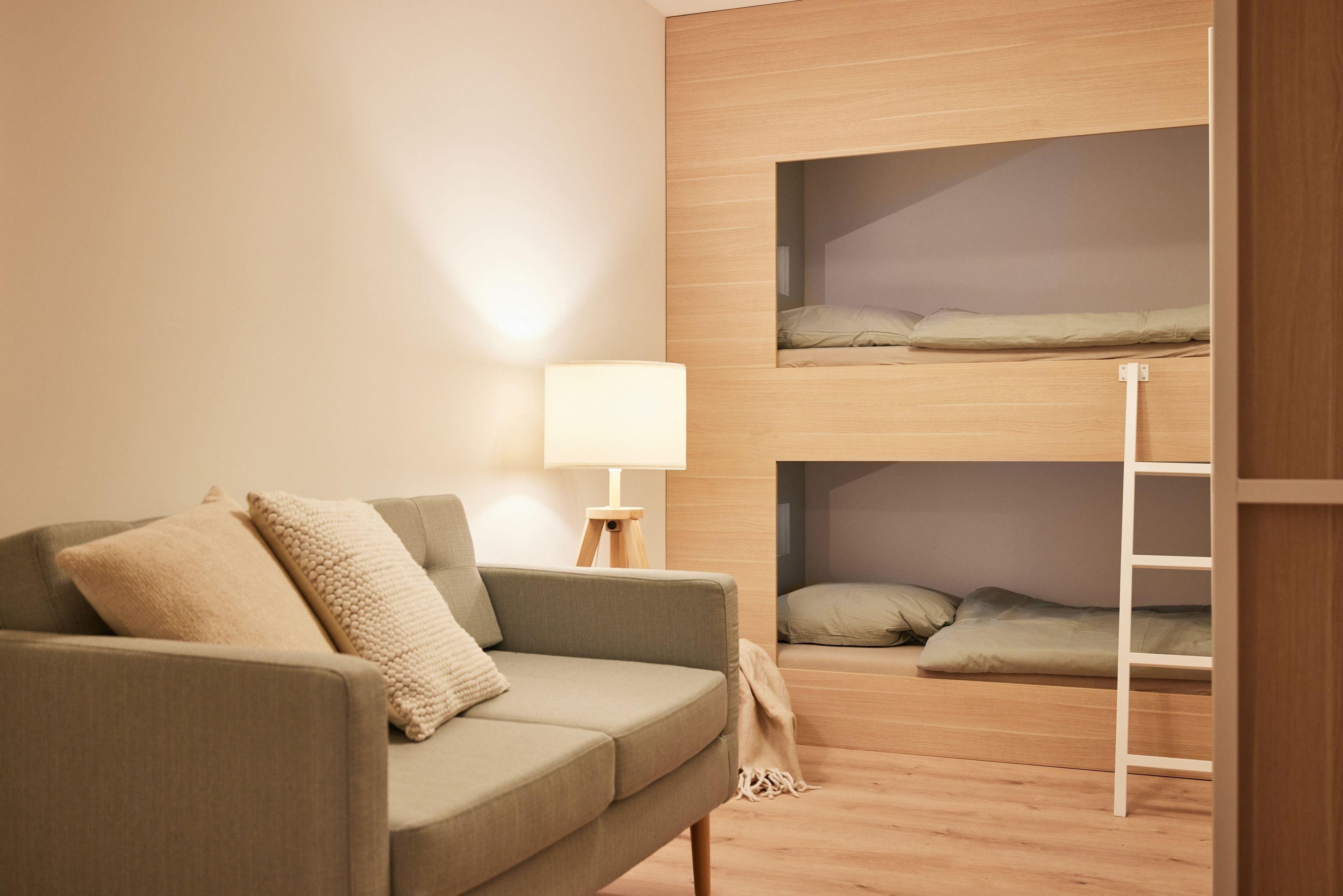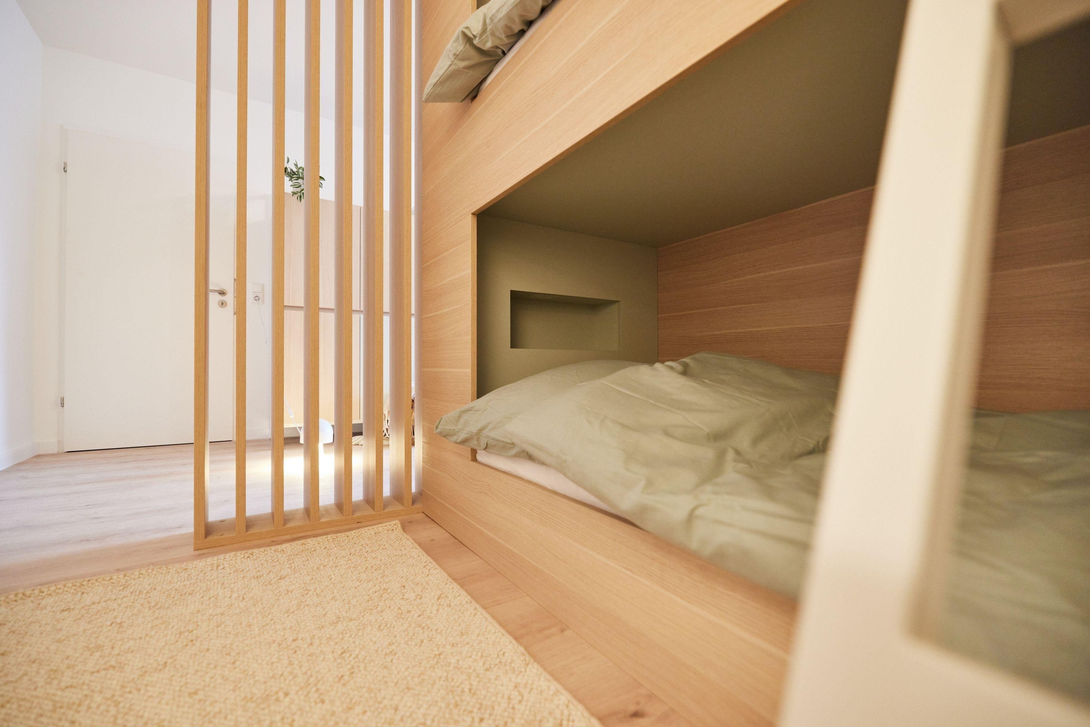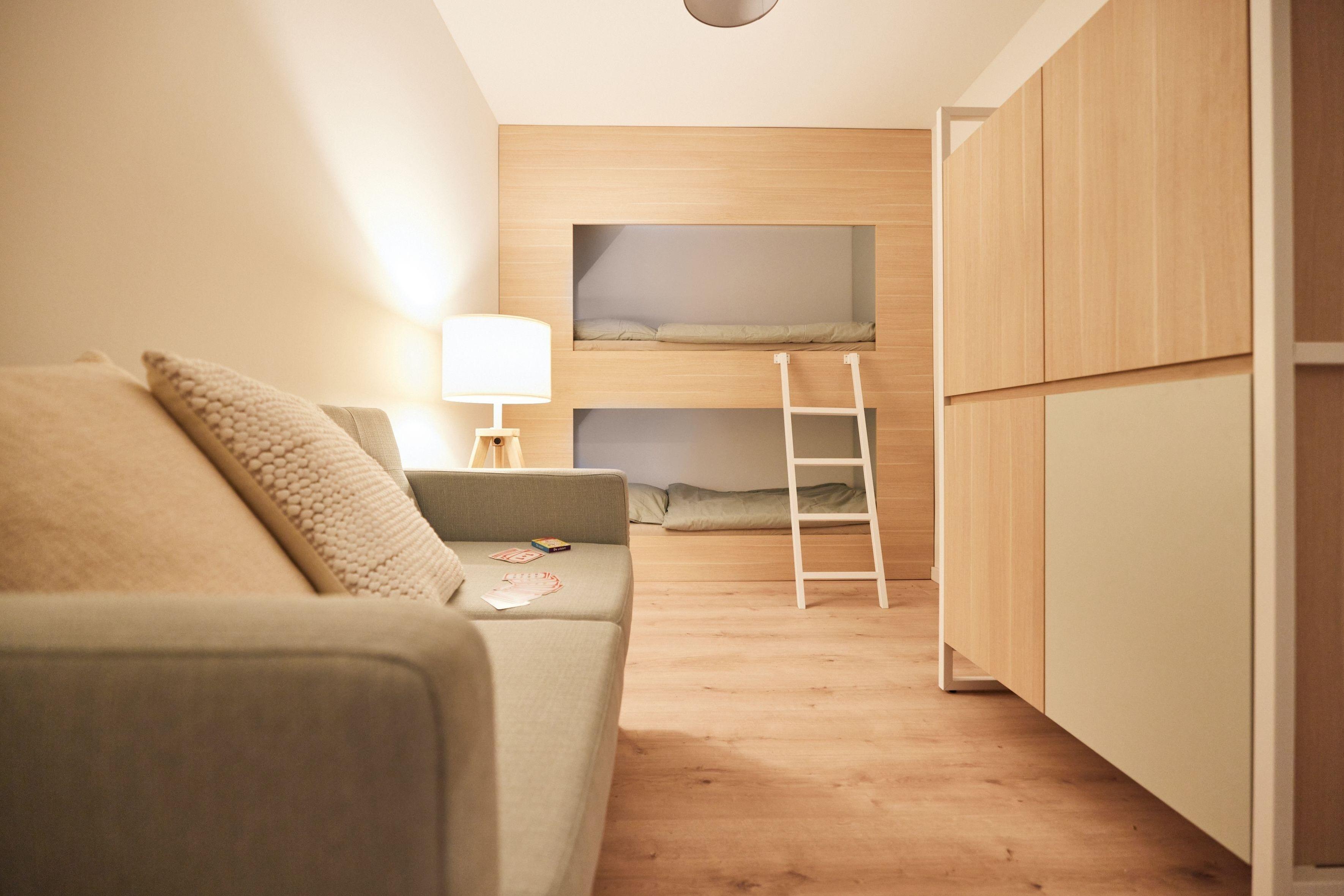 Ein weiteres Stockbett befindet sich nochmals separat. Diese sind durch die Kojen-artige Bauform gemütlich und sorgen für einen ruhigen Schlaf.