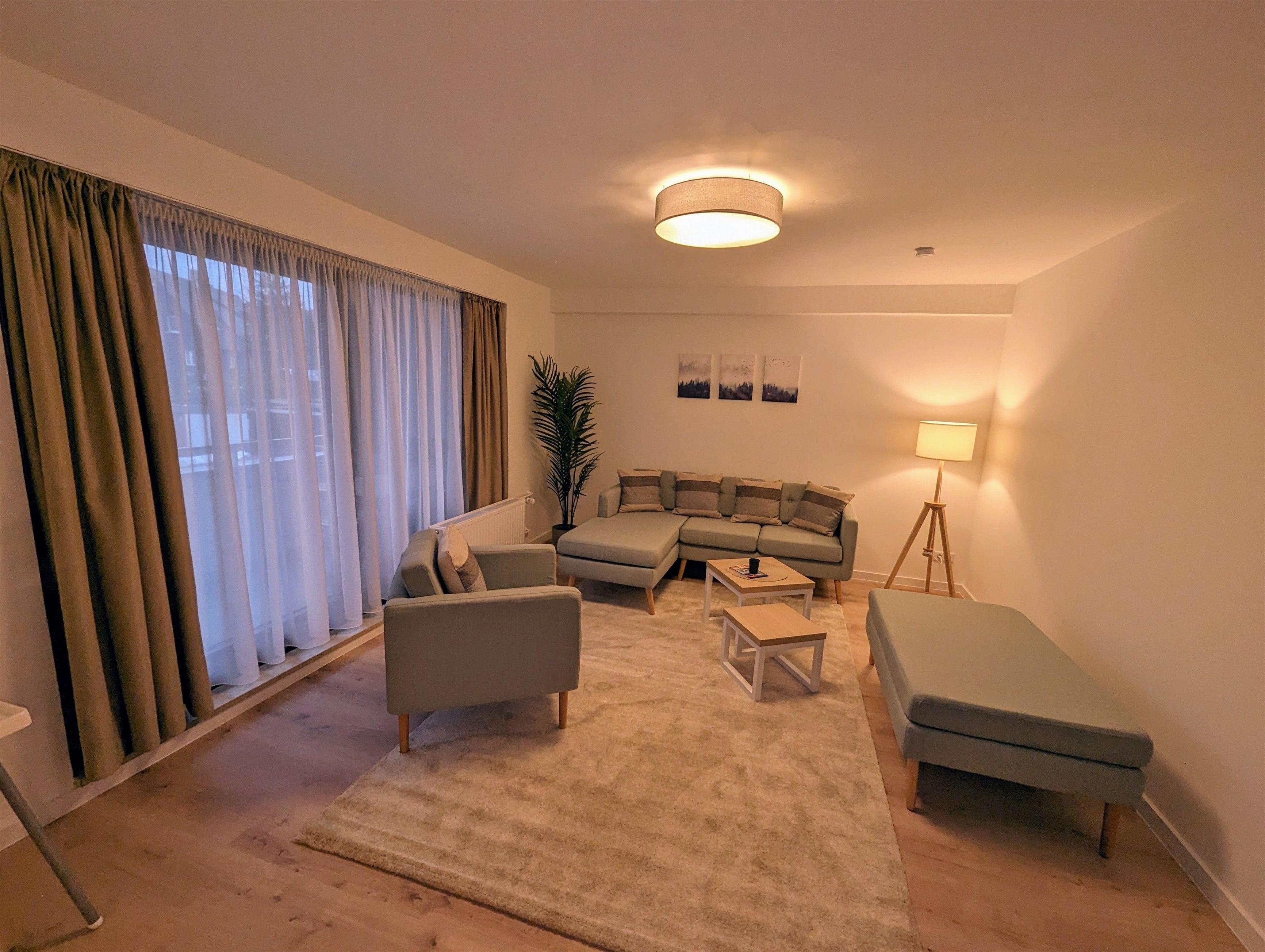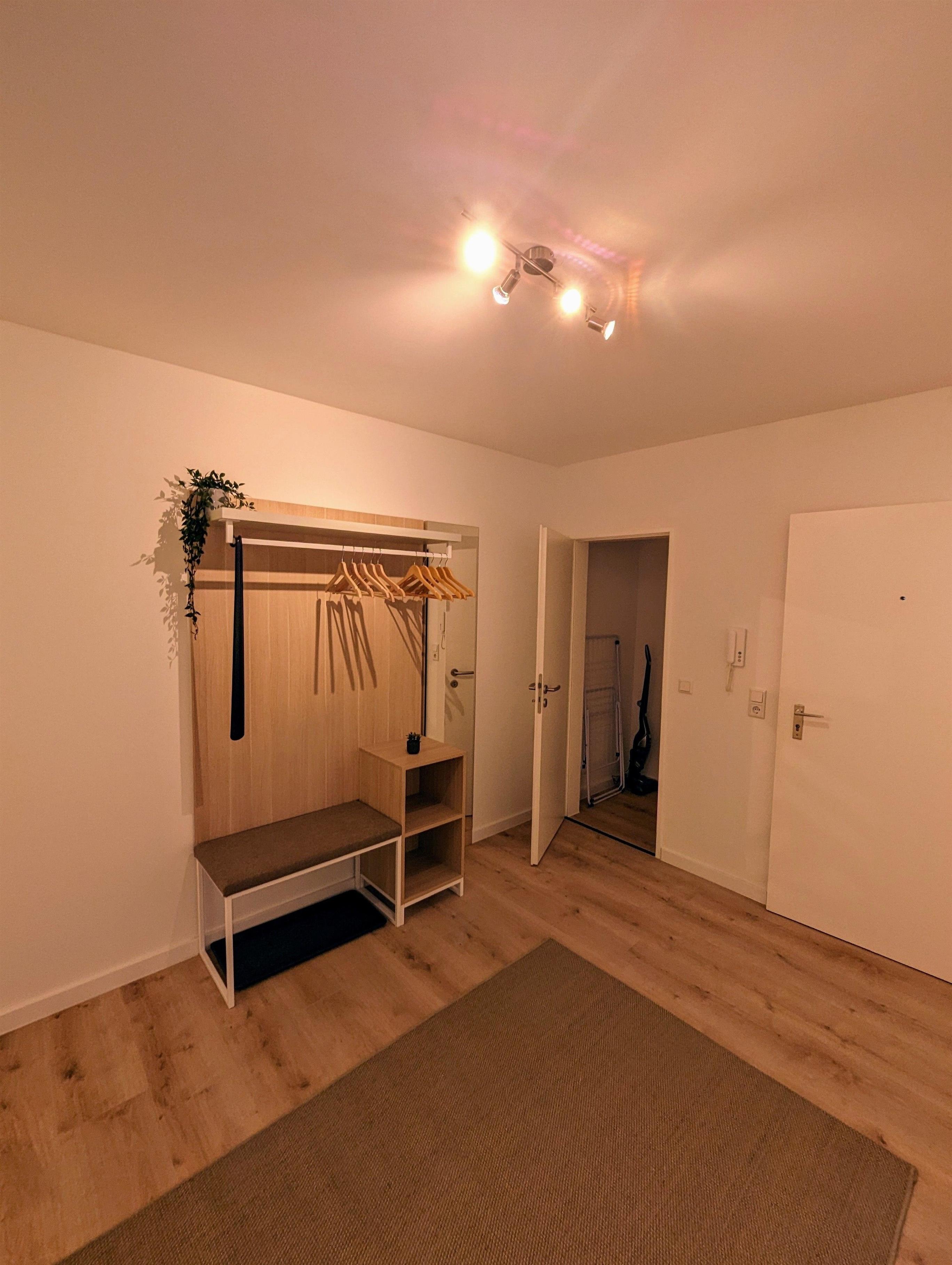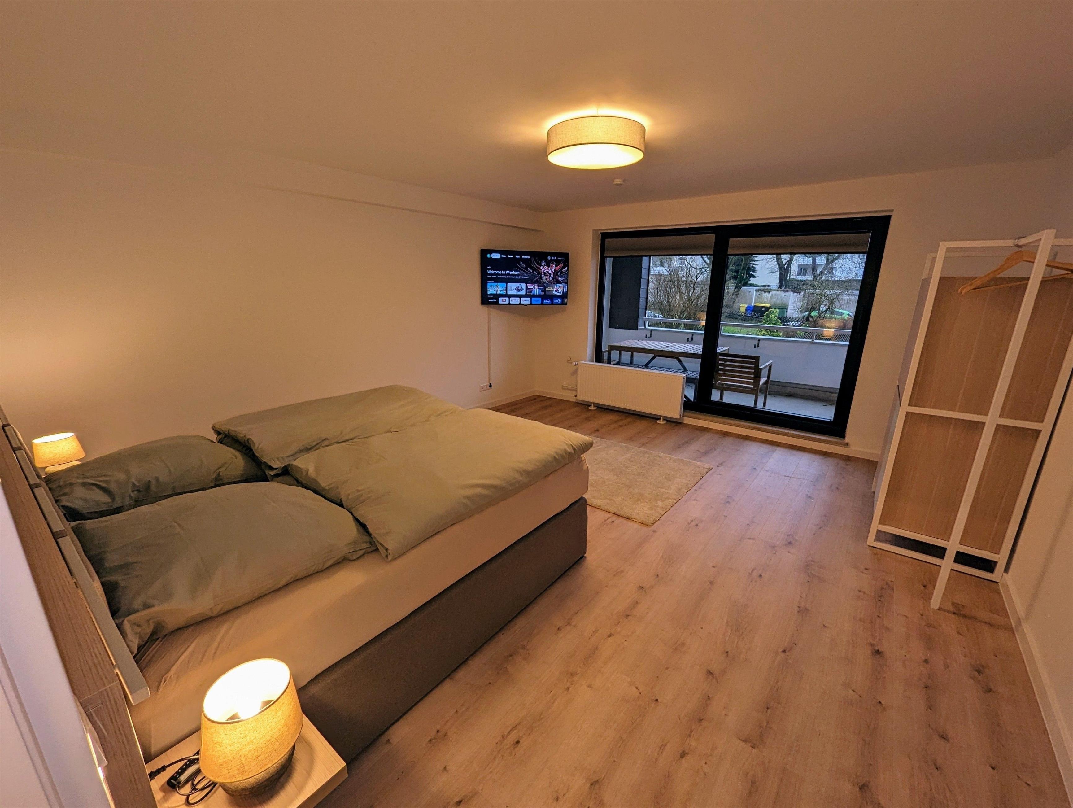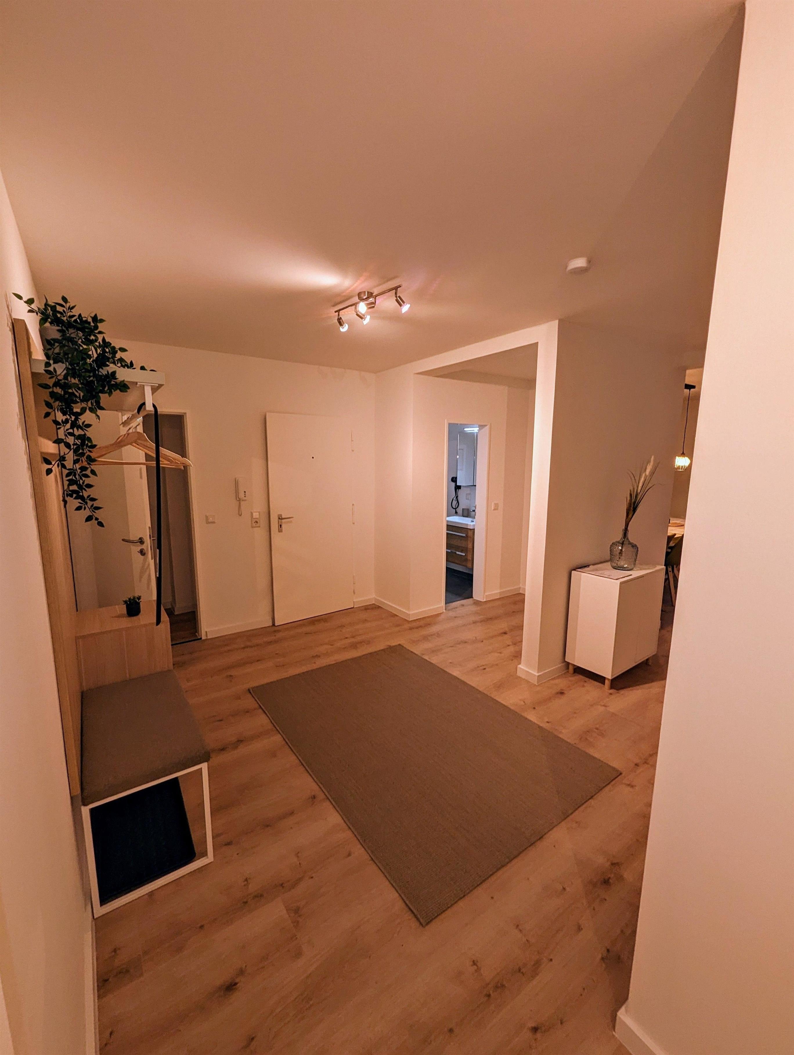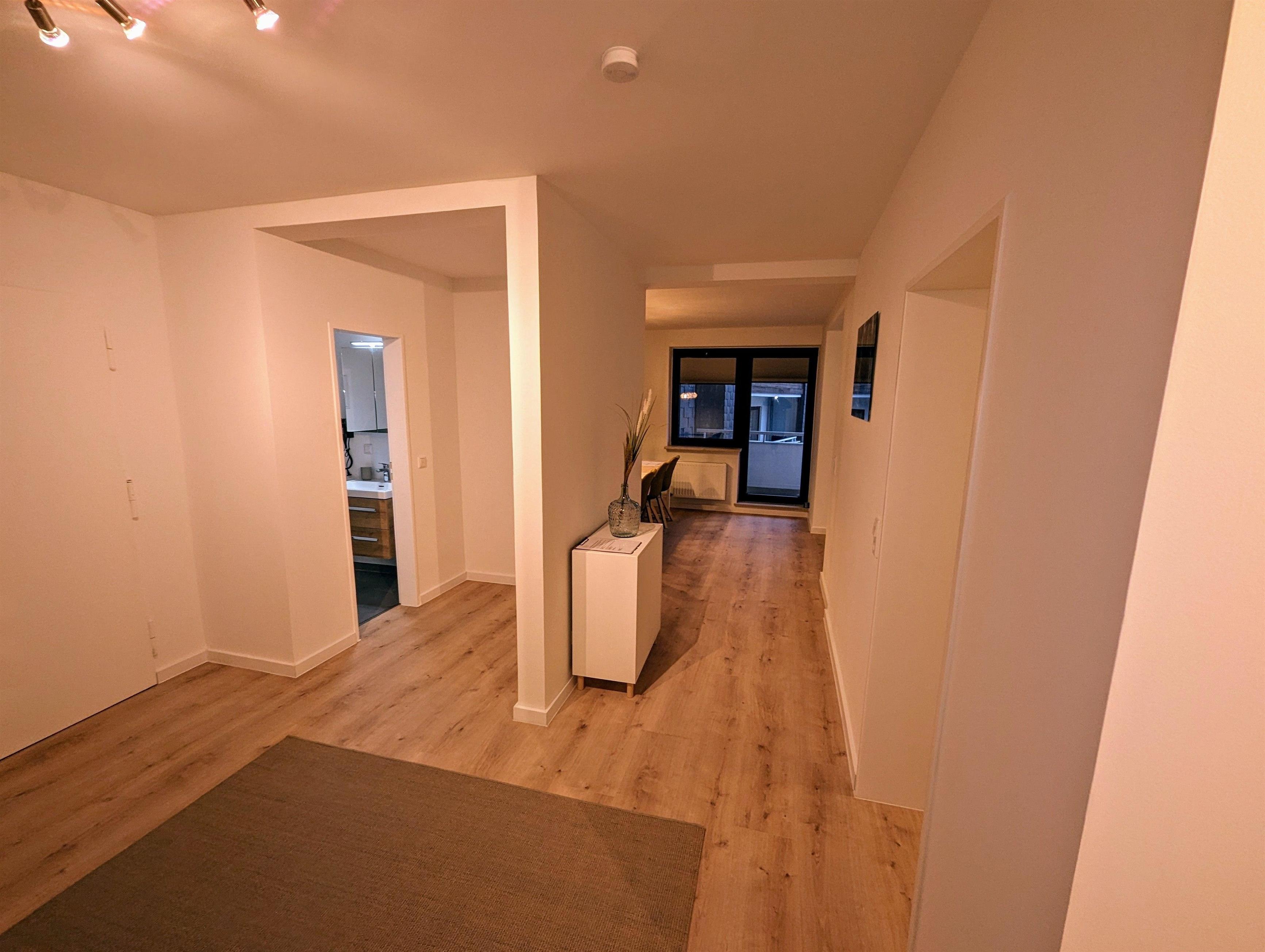 Hier finden Sie auf 135m2 eine moderne und helle Wohnung. Diese verfügt über ein Schlafzimmer mit Doppelbett, einem Schlafzimmer mit Doppelbett sowie durch einen modernen Raumteiler abgetrennten Bereich ein Stockbett.