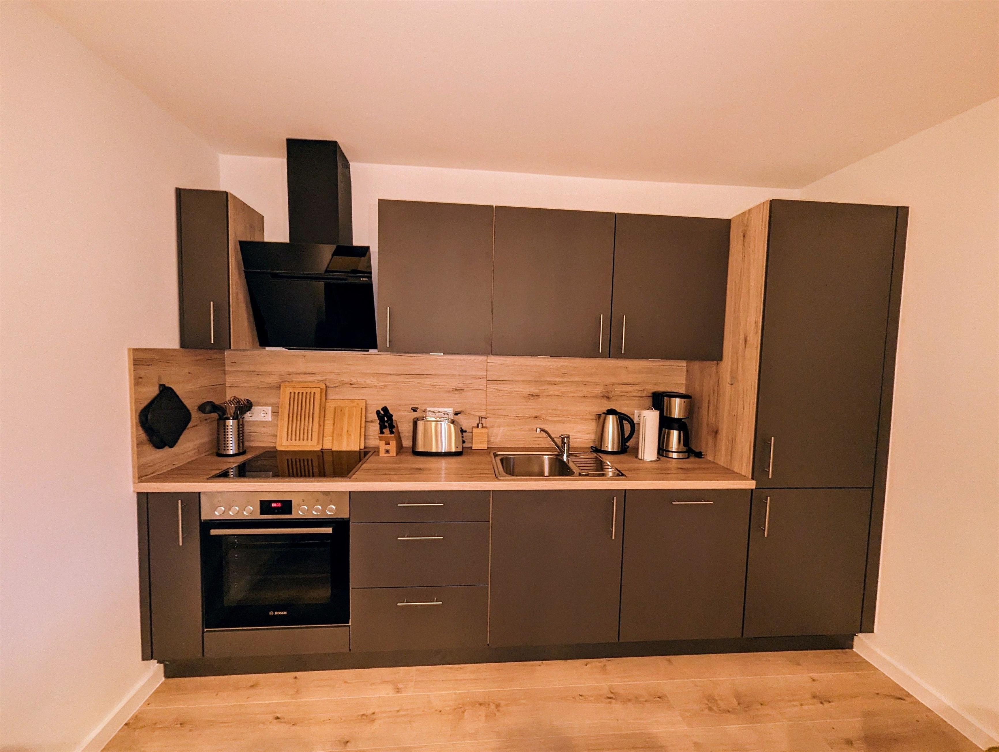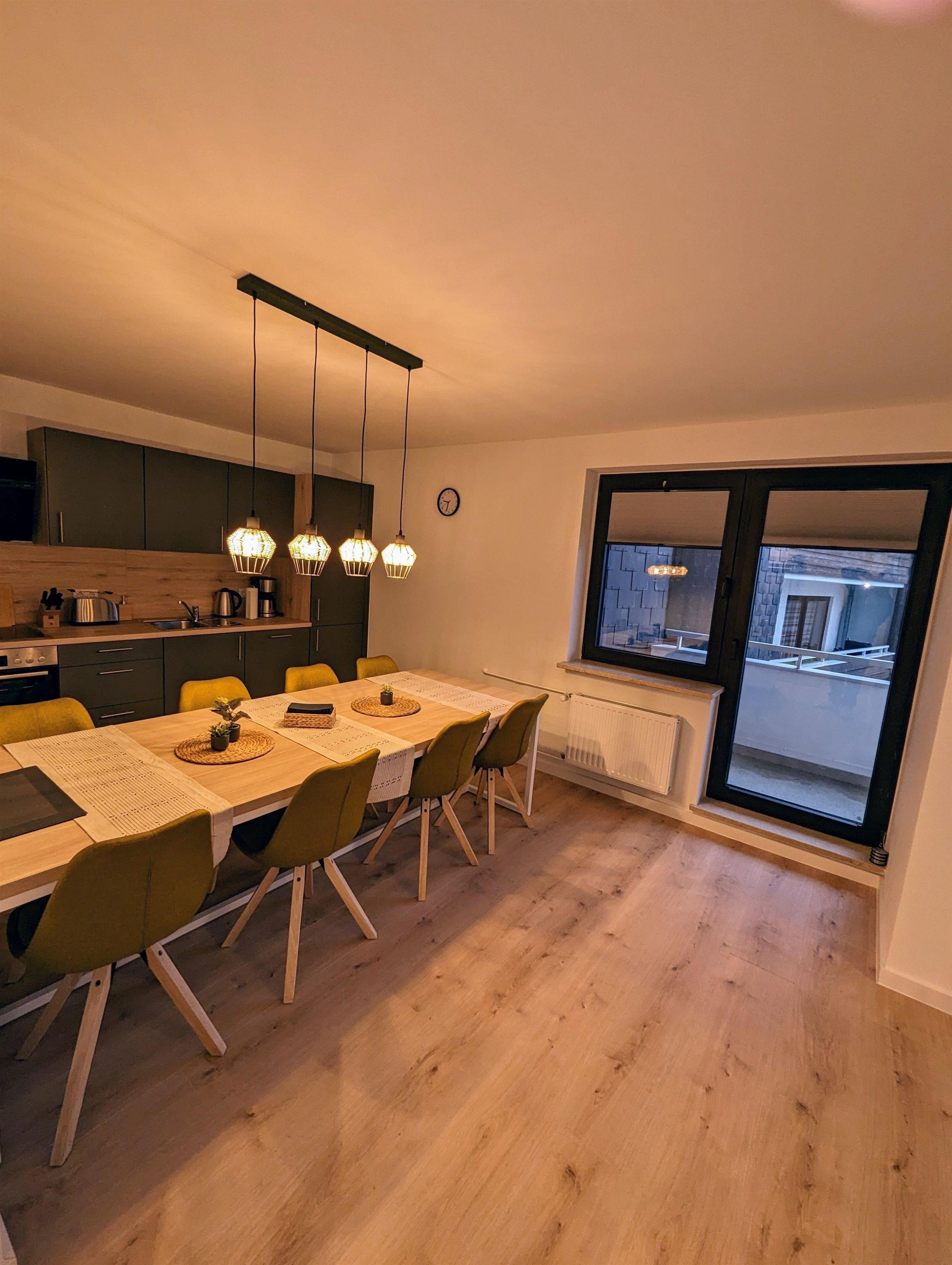 Ein kleines Highlight ist der Wohn-Essbereich. Hier finden Sie alle an einem großen Tisch Platz und können nach einem gemeinsamen Frühstück in den Tag starten. Die vorhandene Küche ist voll ausgestattet und verfügt über alle gängigen Geräte.