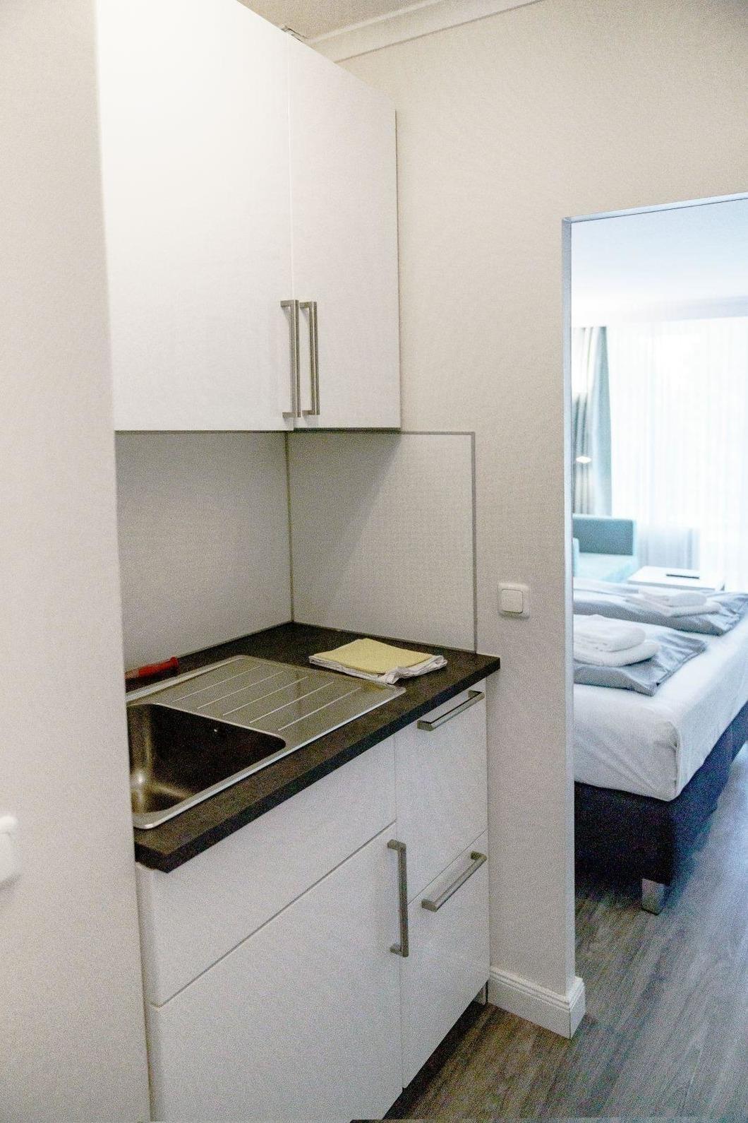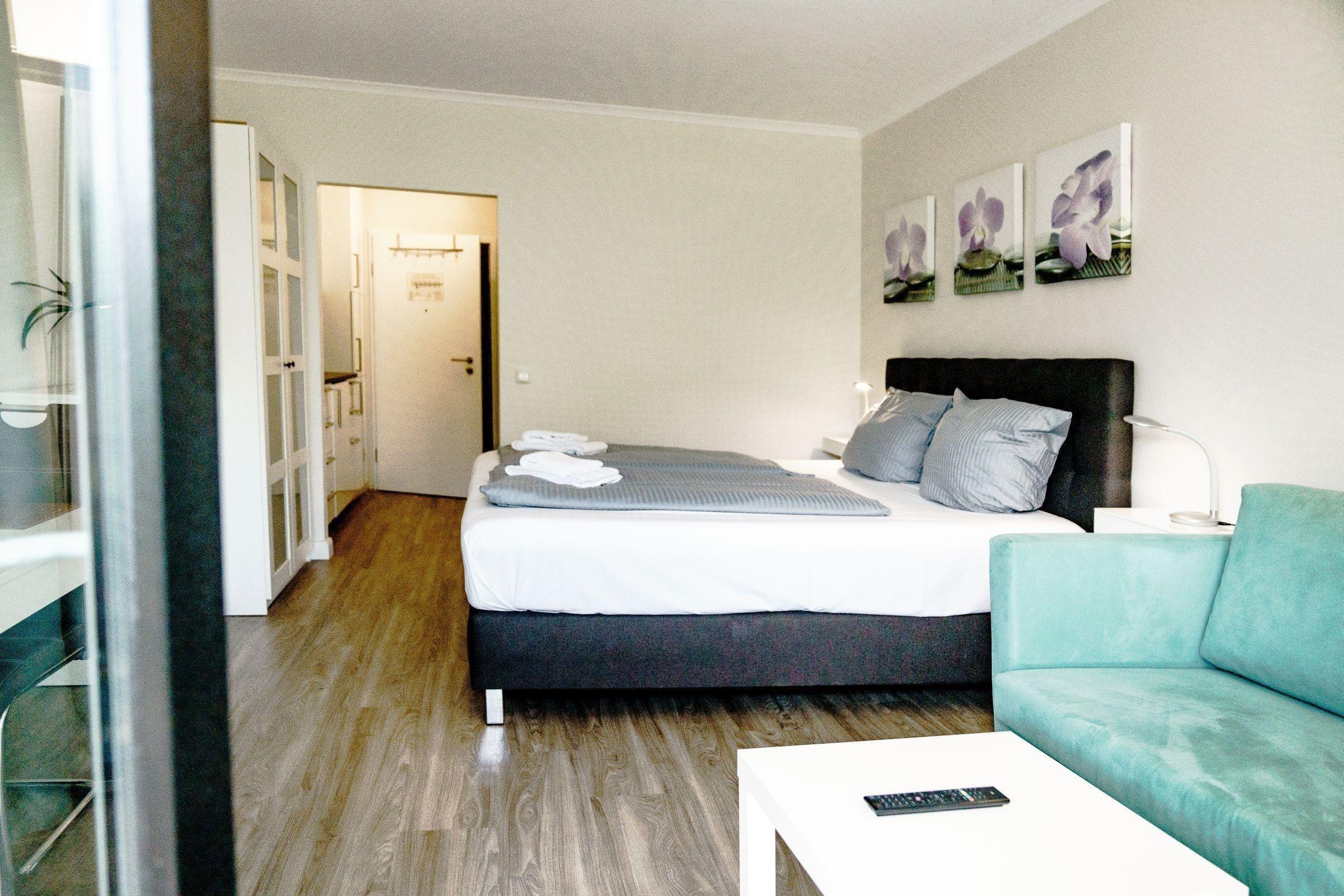 Das Badezimmer verfügt über eine moderne Dusche, einen Haartrockner sowie frische Badetücher. Zum weiteren Komfort gehört ein Esstisch, ein TV für entspannte Abende und ein Sofa zum Entspannen. WLAN mit 25 MBit/s sorgt für durchgehende Internetverbindung. Ein Fahrstuhl und ein Parkplatz stehen ebenfalls zur Verfügung.