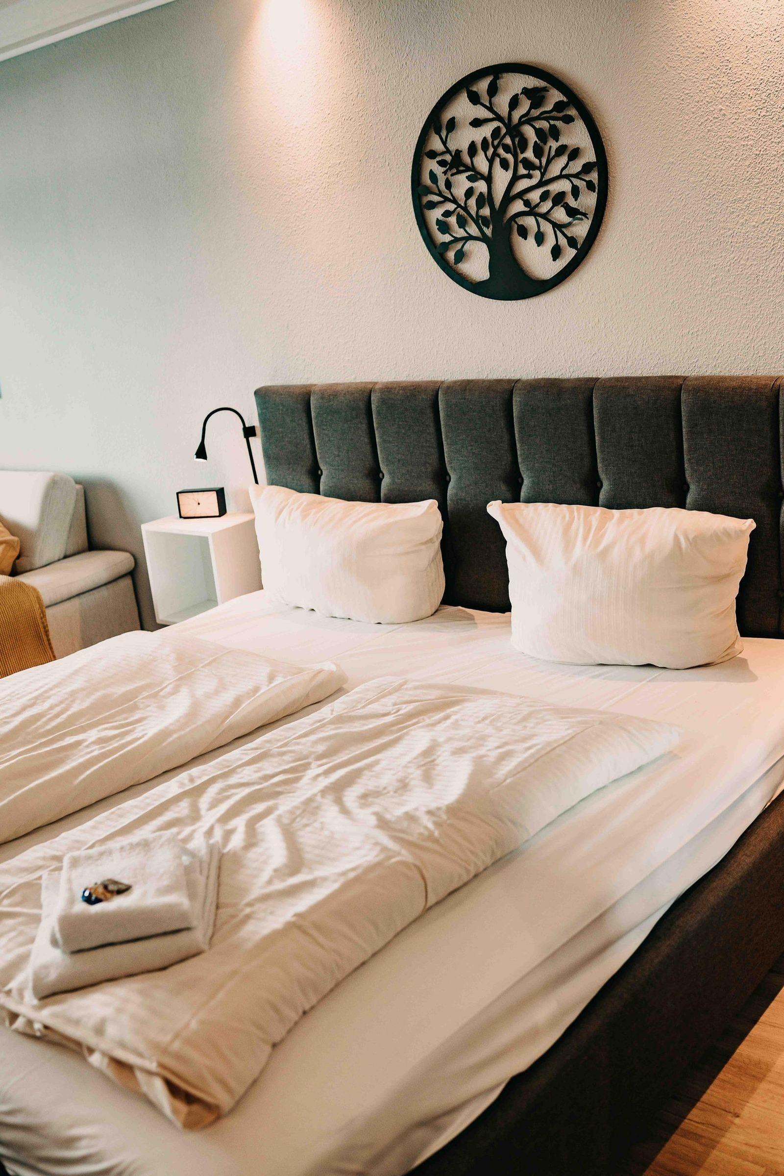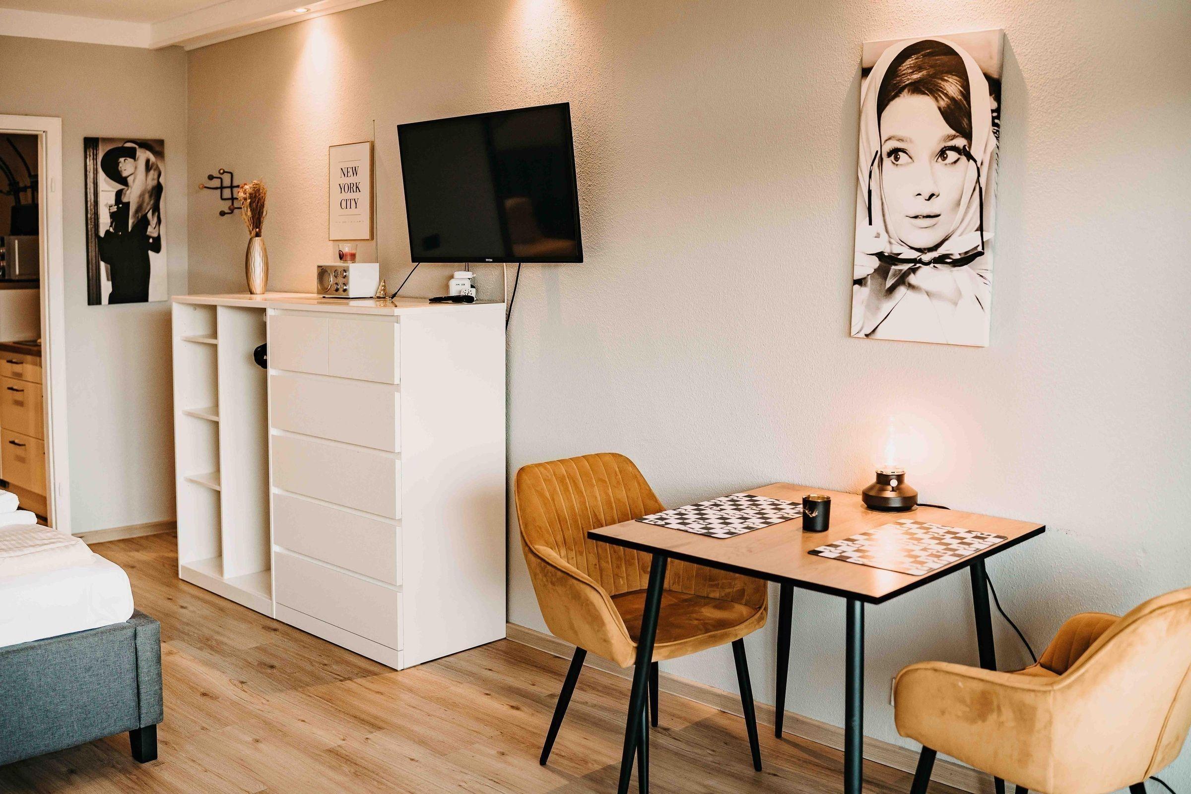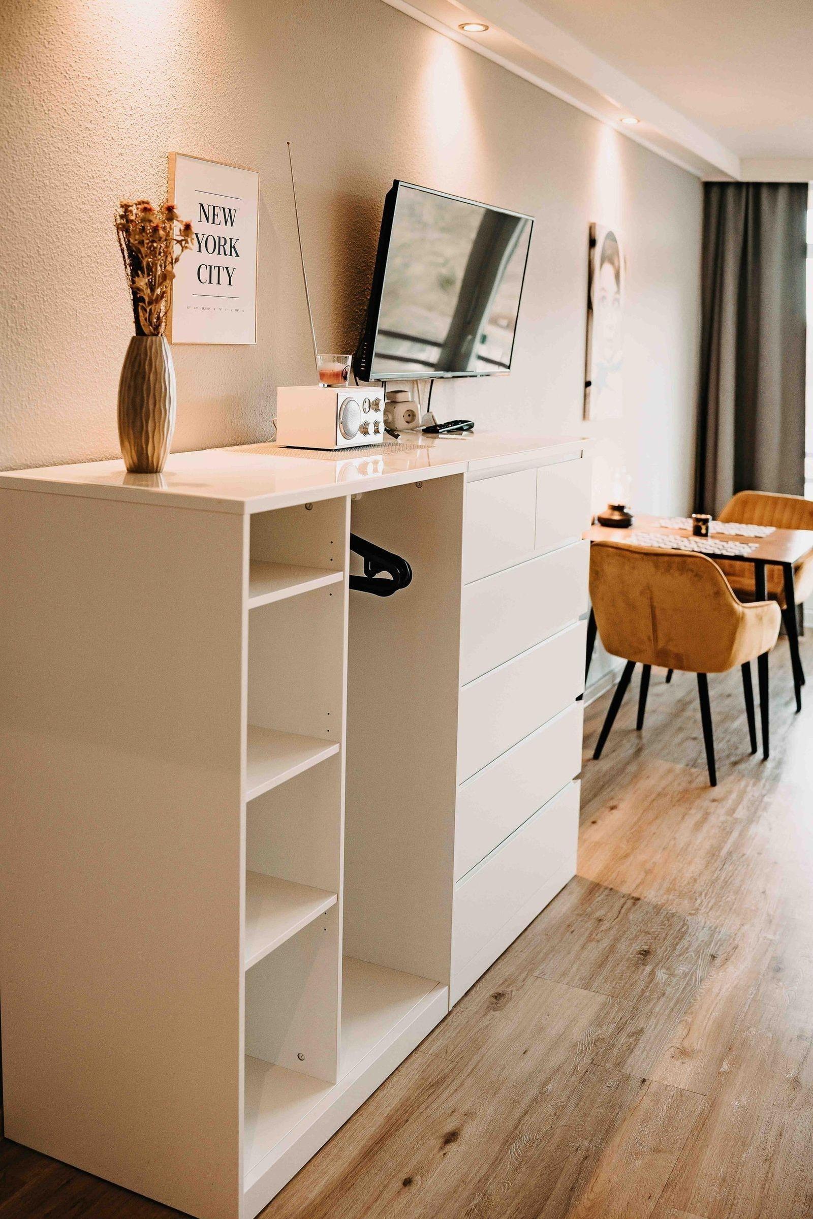 Die Ferienwohnung bietet eine komfortable und gut ausgestattete Unterkunft, die ideal für Gäste ist, die eine entspannte Auszeit suchen. Im einladenden Schlafzimmer befindet sich ein Doppelbett, das für erholsamen Schlaf sorgt. Die Küchenzeile ist mit einem Elektro-/Gasherd, einer Mikrowelle, einem Kühlschrank sowie einer Kaffeemaschine und einem Toaster ausgestattet, was Selbstversorgern viel Flexibilität bietet. Im modernen Duschbad stehen auch ein Haartrockner und frische Badetücher bereit. Zur weiteren Ausstattung gehören ein gemütliches Sofa, ein Schreibtisch und ein Flachbild-TV, die den Aufenthalt angenehm gestalten. Die Wohnung verfügt über einen Fahrstuhl für einfachen Zugang, und die Heizungsanlage sorgt für wohlige Temperaturen. Geschirr, Besteck und Geschirrtücher sind ebenfalls vorhanden. Rauchmelder garantieren zusätzliche Sicherheit. Diese Ferienwohnung bietet somit alles, was für einen gelungenen Urlaub benötigt wird.