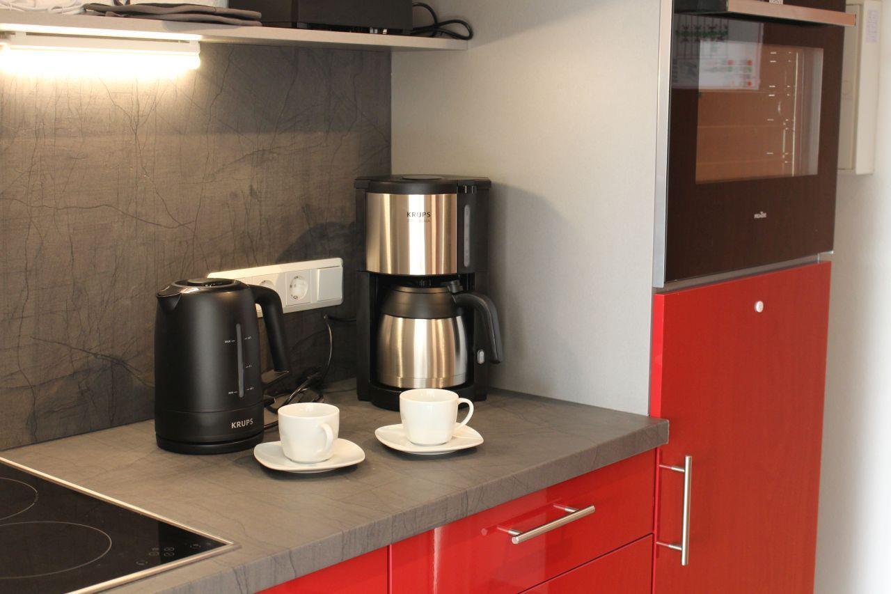 - Küche inkl. 2-Plattenherd, Kühlschrank, Wasserkocher, Kaffeemaschine, Toaster