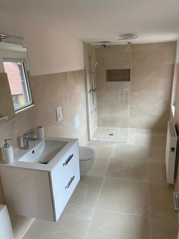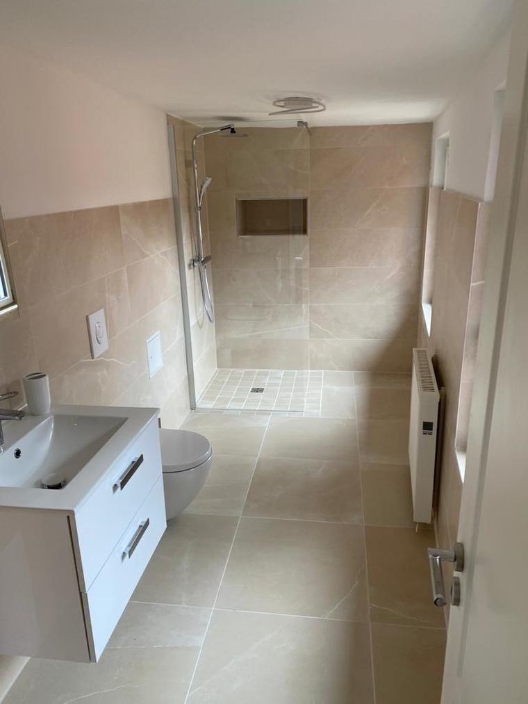Bad: Dusche, Waschtisch, WC