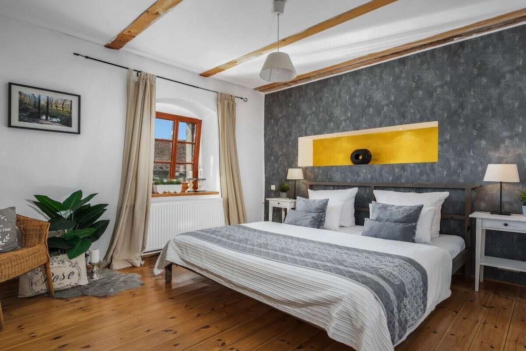 Stueetage: (Stue(, Fjernsyn, pejs, DVD-afspiller, DVD-afspiller, radio, CD-afspiller, varme), spisestue(spisebord, varme), Køkken(, , spisebord, pejs, kogeplade, kogeplade, elkedel, brødrister, komfur, kaffemaskine, ovn, mikrobølgeovn, opvaskemaskine , køleskab, insektnet), badeværelse(, toilet, badekar, bruser, håndvask, varme)) På 1. etage: (badeværelse(, toilet, bruser, håndvask), guest toilet(, toilet, håndvask)) , , , , soveværelse(, , dobbeltseng), soveværelse(, , dobbeltseng), soveværelse(, , dobbeltseng), soveværelse(, , dobbeltseng), soveværelse(, , dobbeltseng), soveværelse(, , dobbeltseng), Internetadgang, Internetadgang, tørretumbler, vaskemaskine, varme, terrasse(, havemøbler), have(, Grill center, grill, havemøbler), parkering, strygebræt, strygejern, tørreskab