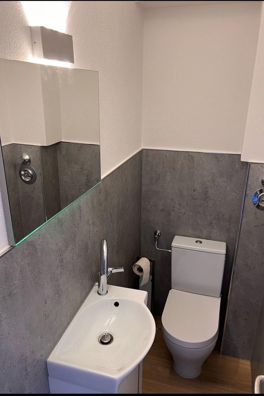 There is plenty of storage space in the bathroom with washbasin, vanity unit and WC. Naturally, the bathroom has a hairdryer and magnifying mirror.