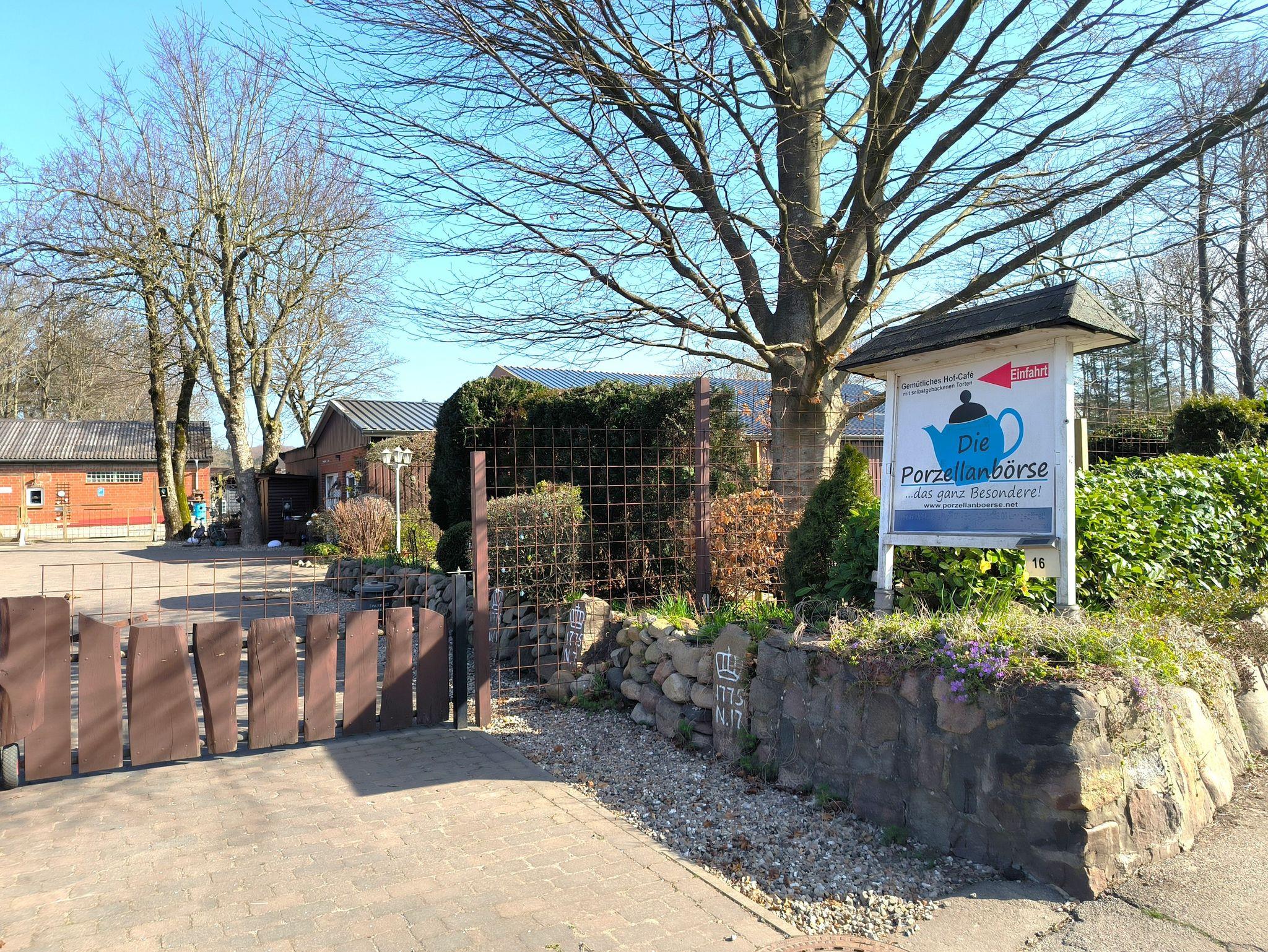 Die Ferienwohnung liegt auf dem Gelände eines alten Bauernhofs: neben einem antiken Hof-Café, das die Gäste in der Saison mit hausgemachten Torten aus regionalen Produkten verwöhnt, kann in der Porzellanbörse ausführlich gestöbert werden: die große Ausstellungshalle mit Markenporzellan aller bekannten Firmen, Glas, Silberbestecken und vielen schönen Kleinigkeiten ist ein absolutes Unikat.