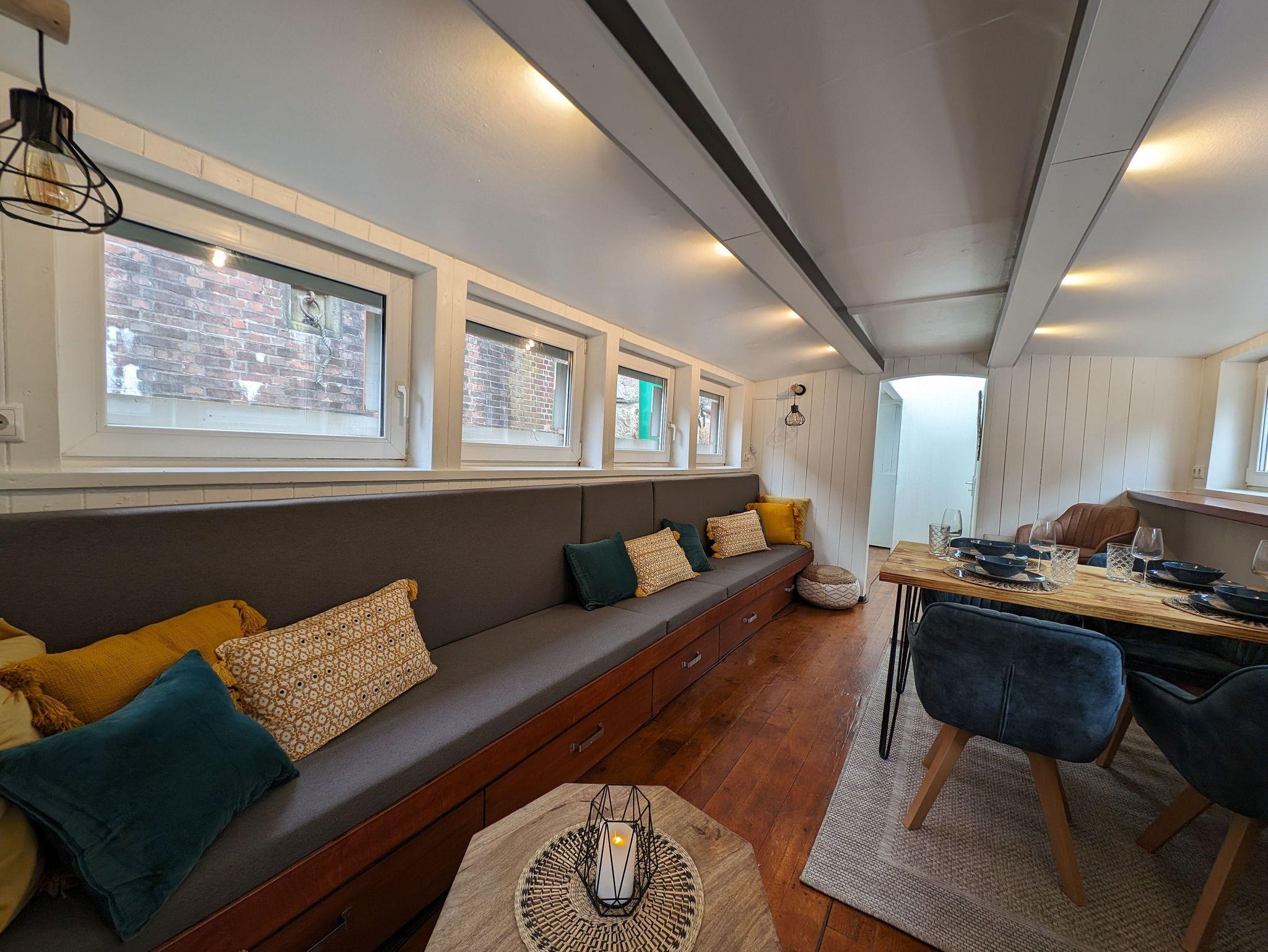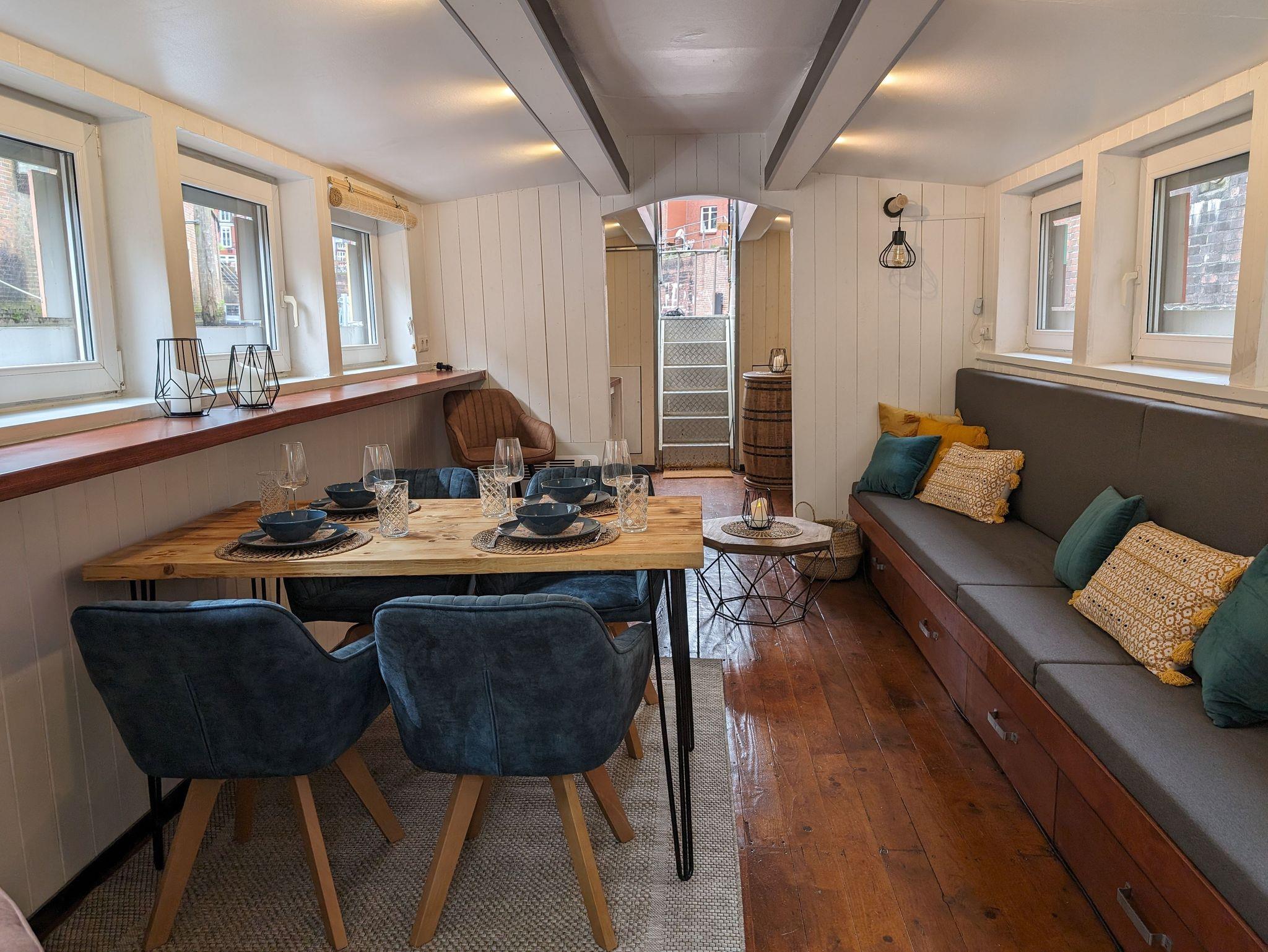 Genießen Sie eine Auszeit auf dem Stader Kunstkudder und lassen Sie den Tag nach einem Bummel durch die wunderschöne Altstadt oder einer Fleetkahnfahrt gemütlich auf dem Sofa Ihres Hausbootes oder auf der Dachterrasse ausklingen.