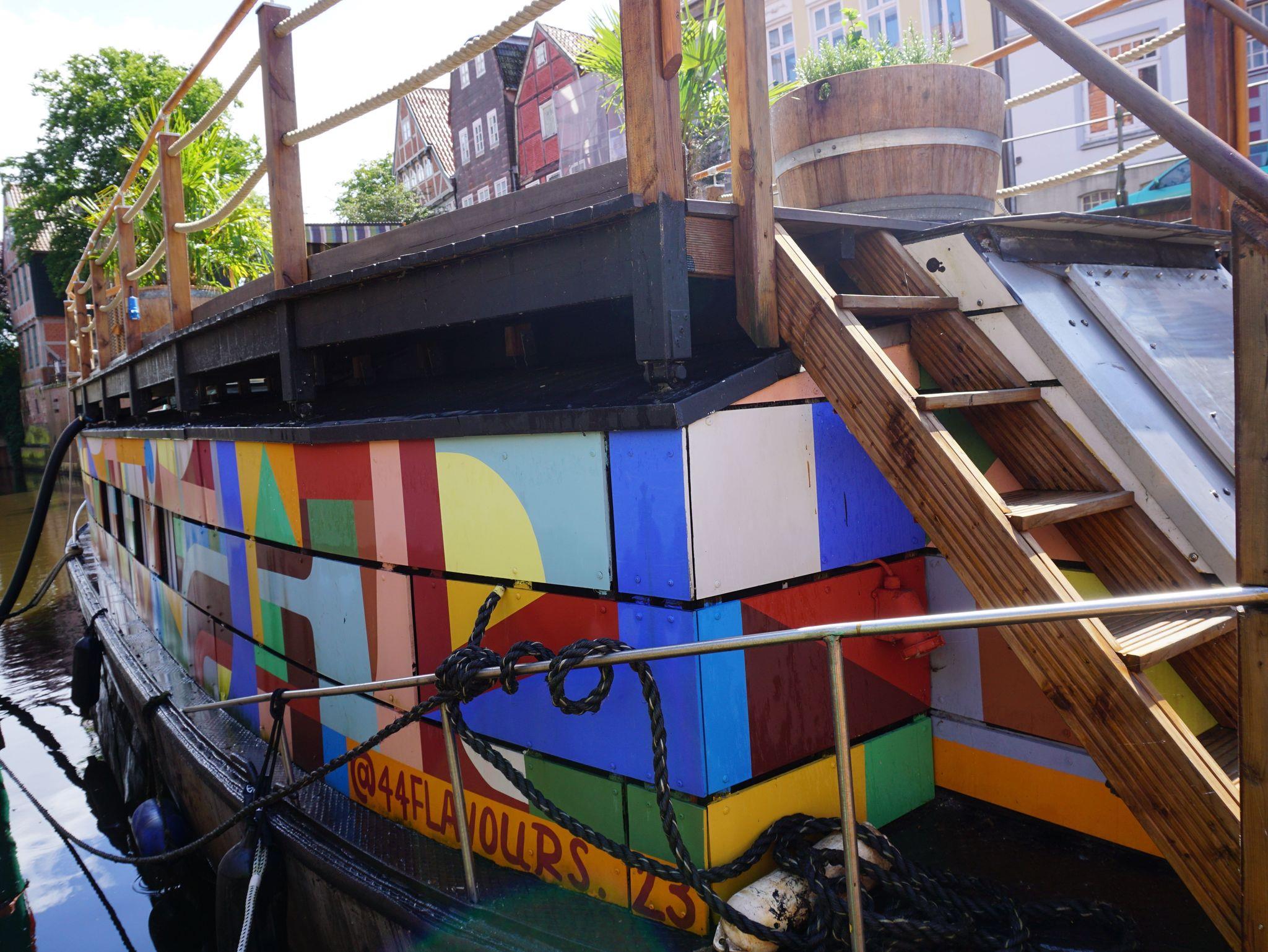 Gelegen im historischen Hafen der Hansestadt Stade bietet das von Künstlern gestaltete Hausboot mit dem Namen „Kunstkudder“ einen farbenfrohen Kontrast zum pittoresken Ensemble von Hafenbecken und Fachwerkhäusern. Das Hausboot, das seinen festen Liegeplatz an der Kaimauer neben dem Museum Schwedenspeicher hat, begeistert mit seinem rustikalen Charme und der geschmackvollen Inneneinrichtung.