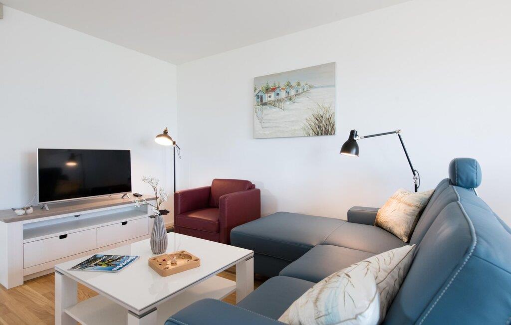 Det bliver romantisk foran pejsen i den hyggelige sofa. WiFi og Smart TV med Telekom Home Entertainment-program sørger også for indendørs underholdning.