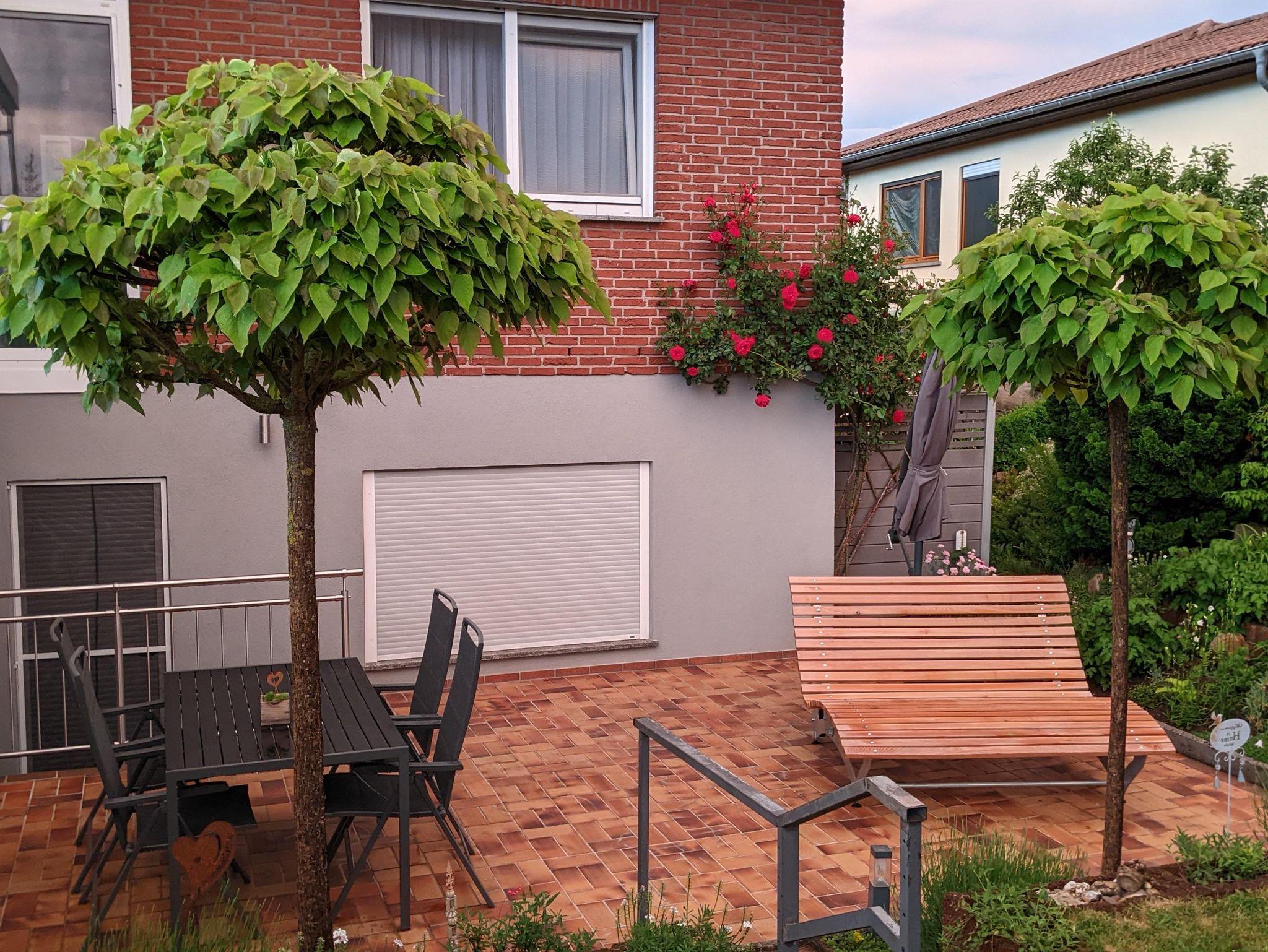 Ein besonderes Highlight ist Ihre großzügige ( ~30 qm) eigene Terrasse. Mit Sitzgelegenheiten ,Tisch , Sonnenschirm und ganz aktuell einer Himmelsliege.