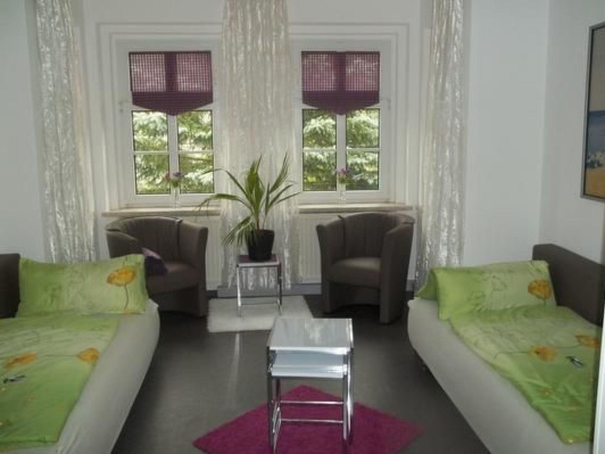 Our holiday flat offers 74 m² of space for 4 people (+ 1 extra bed possible). It is stylishly and comfortably furnished for a special kind of holiday. You should feel at home when you make yourself comfortable on the cosy sofa. Here you can watch TV, listen to the radio or simply relax in peace and quiet. Our modern kitchen leaves nothing to be desired: the inventory includes a microwave, dishwasher, electric cooker with ceramic hob and oven, coffee machine and kettle as well as a fridge with freezer compartment, and of course there is plenty of crockery and cutlery. A parking space for your car is available. When the weather is nice, you can also use our lovingly designed garden with sunbathing lawn. You can hire bicycles from us for an excursion into the surrounding area. The prices include bed linen, towels and energy costs.
