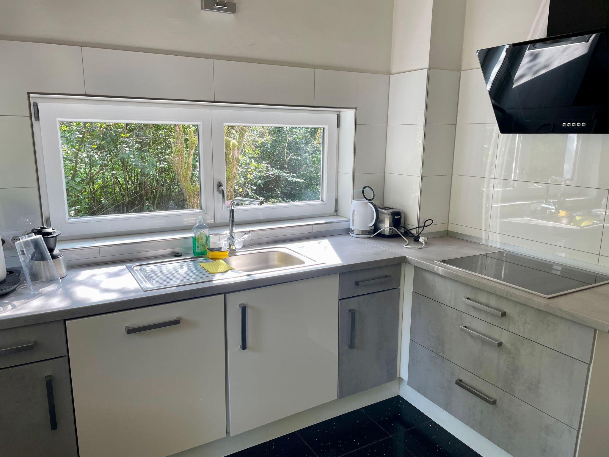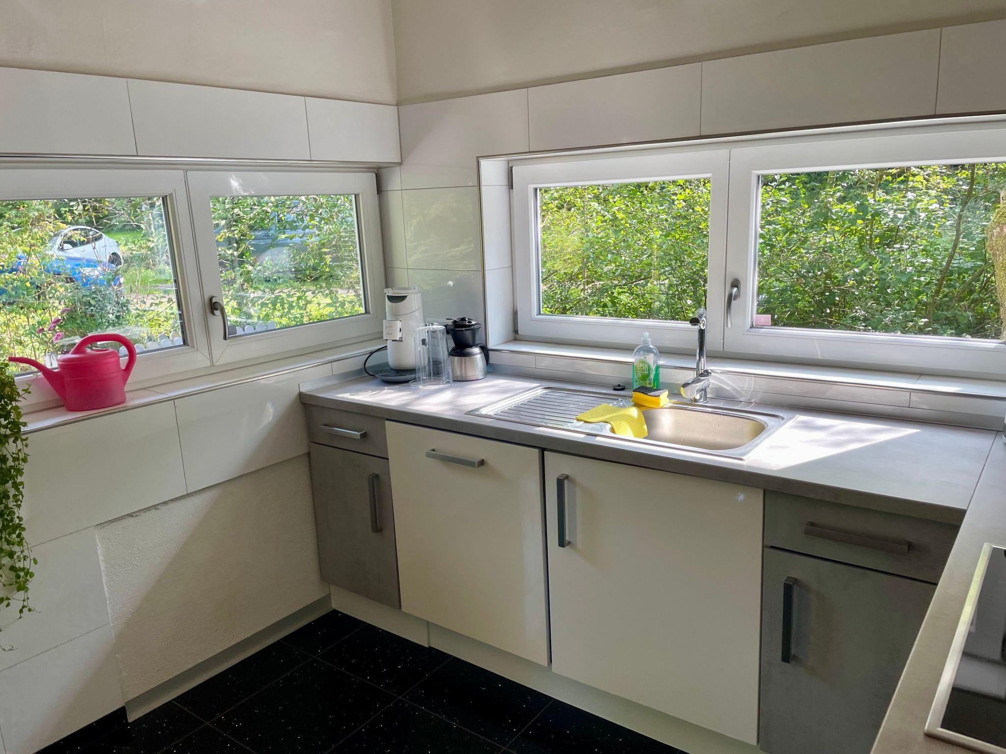 Outside, a spacious, idyllic outdoor area awaits you. The picturesque stream flowing past the house, the natural meadow and the sunny terrace invite you to relax and enjoy. The garden, surrounded by hedges and a fence for your privacy, as well as free parking and thanks to the free WLAN, nothing is left to be desired.
