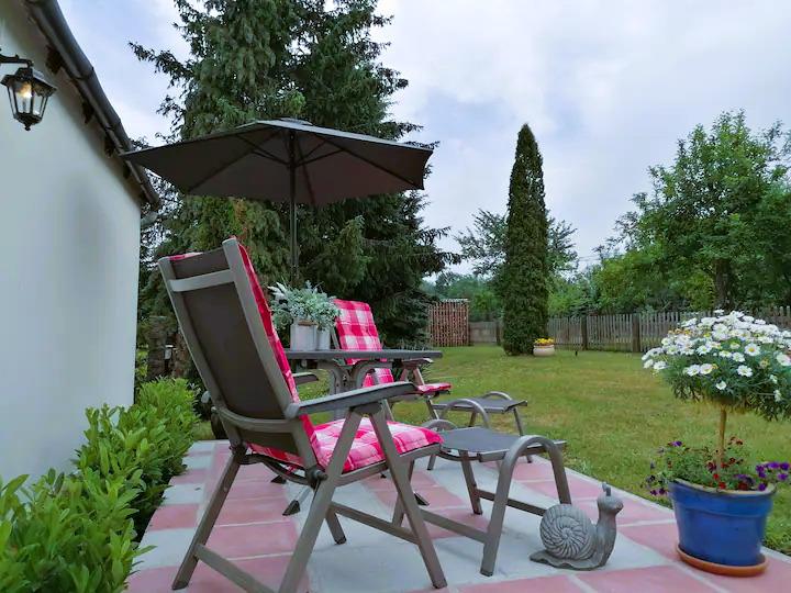 Am Rande des Dorfes mit Blick auf Wiesen und Felder befindet sich die gesamte Wohneinheit in einer Doppelhaushälfte. Sie wurde komplett saniert und freut sich nun auf ihre Gäste.
