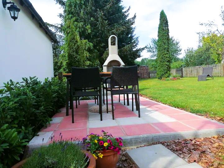 Eine nur durch Sie genutzte Liegewiese mit Terrasse und Gartenmöbeln befindet sich am Haus.