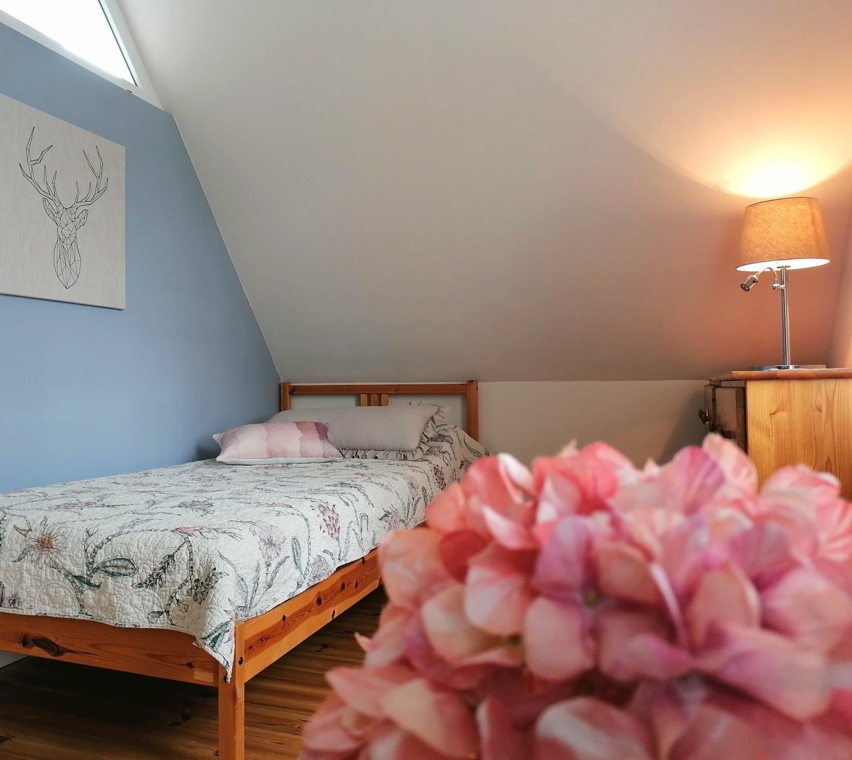 Ein geräumiges Schlafzimmer im Obergeschoss hält ein bequemes Doppelbett 1,80 x 2,00 m sowie ein Einzelbett 0,90 x 2,00 m für Sie bereit und wird ergänzt durch ein WC en Suite.