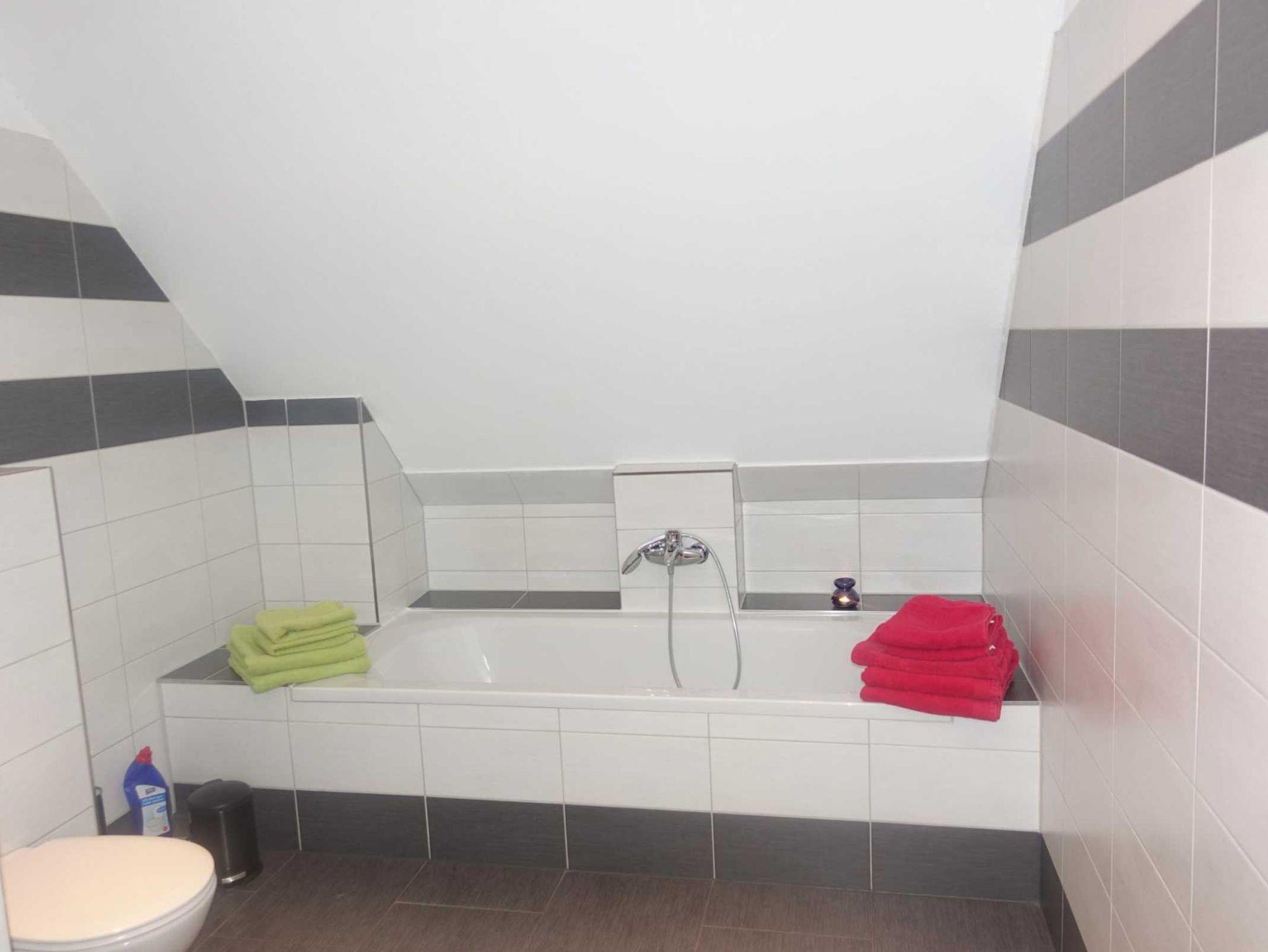 - großzügiges Badezimmer mit Badewanne und Regendusche; Handtücher inkl.