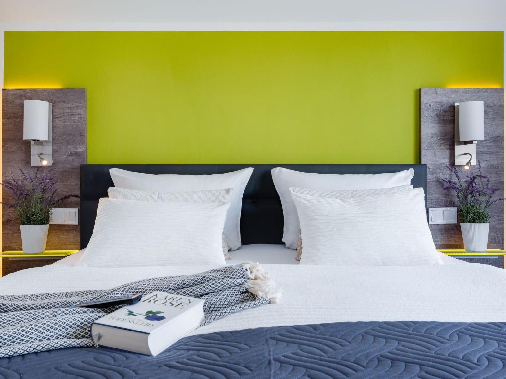 Directly on the Baltic Sea, in one of the most beautiful holiday regions in Germany, in the north-east of Schleswig-Holstein, directly between the mouth of the Schleim estuary and the Baltic Sea, a new, unique holiday resort in a class of its own is being built, which will impress with its diversity: the Ostseeresort Olpenitz is to become Northern Europe's largest maritime holiday resort. Embedded in an incomparable natural setting, equipped with everything to make your stay pleasant and varied all year round: a large marina, restaurants, cafés, shops and a leisure offer that leaves nothing to be desired for a new world of holiday experiences. The following highlights await you on site: Within walking distance of the beautiful, kilometre-long, DLRG-supervised Weidefelder beach, which has several beach sections (general bathing, nudist, dog beach and the world's only flat-water windsurfing and kite surfing area). There is also a cosy beach restaurant with beach chair hire, toilets and a playground. Bakery trolleys with fresh bread rolls, ice cream and other delicacies, Edeka supermarket, marina with promenade, fresh fish straight from the cutter, traditional sailing excursions, canoe hire and Optimist sailing courses from the Globetrotter Academy, boat hire and BBQ donut hire from Olpenitz Marina, food trucks with culinary delights on selected dates and, of course, a spectacular harbour cinema. The small, dreamy village of Olpenitz nearby (3 km away) with its beautiful (thatched) houses offers restaurants and shopping opportunities, as does the well-known fishing town of Kappeln on the Schlei with its small harbour approx. 7 km away. Kappeln is also known as "Deekelsen" from the popular TV series "Der Landarzt". A trip to Bad Arnis, Germany's smallest town, or to Eckernförde for the eel regatta or the pirate spectacle in August or to Sieseby, the beautiful half-timbered village directly on the Schlei and then indulge in the gourmet cuisine in the "Schlei-Krog". Or, or, or, or. There is hardly a second location like this on the entire Baltic Sea coast in Germany! Those who love a quiet holiday close to nature will certainly be able to spend "their best time of the year" here, even if the surroundings and infrastructure in the Baltic Sea resort of Olpenitz are currently still subject to constant change with construction activity. This has already been taken into account in the price calculation and does not constitute a defect.
