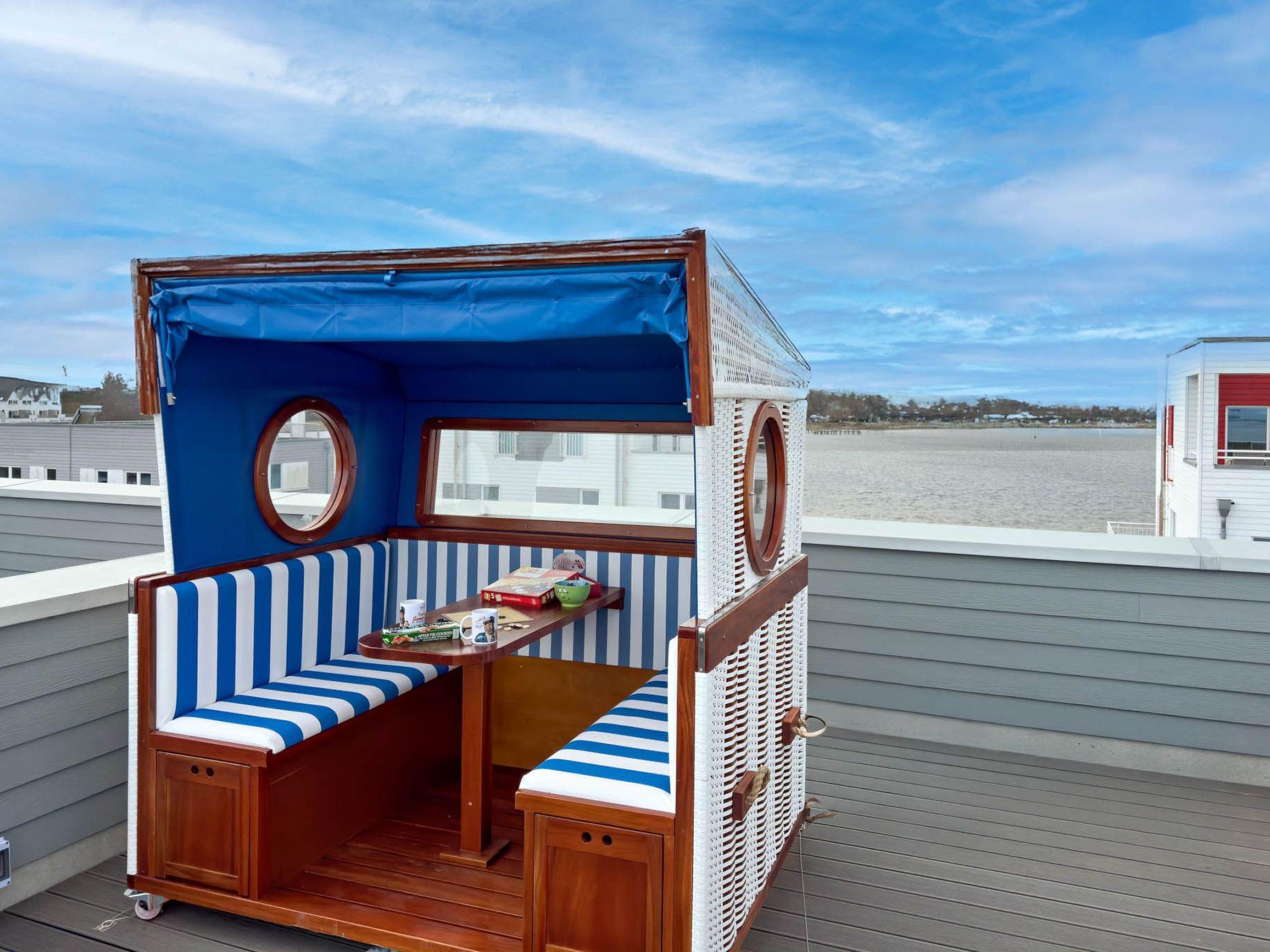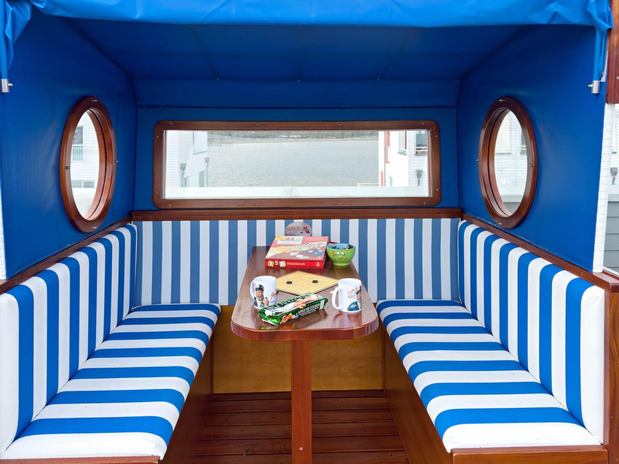 The interior combines modern style with first-class comfort. The master bedroom impresses with a luxurious waterbed (1.80m x 2.20m) and offers a breathtaking view of the marina. At the same time, the second bedroom with a box-spring bed (1.80m x 2m) reveals the beauty of the Schlei.