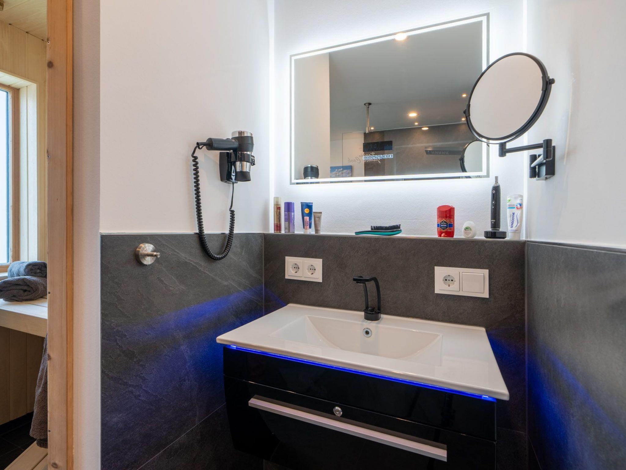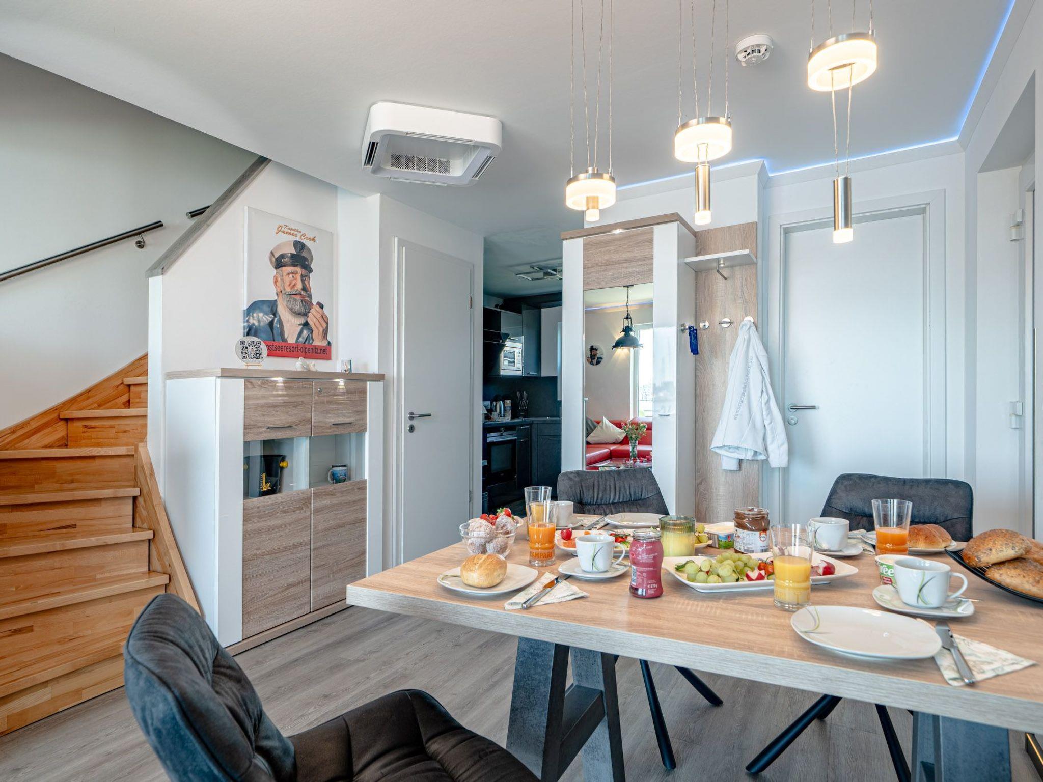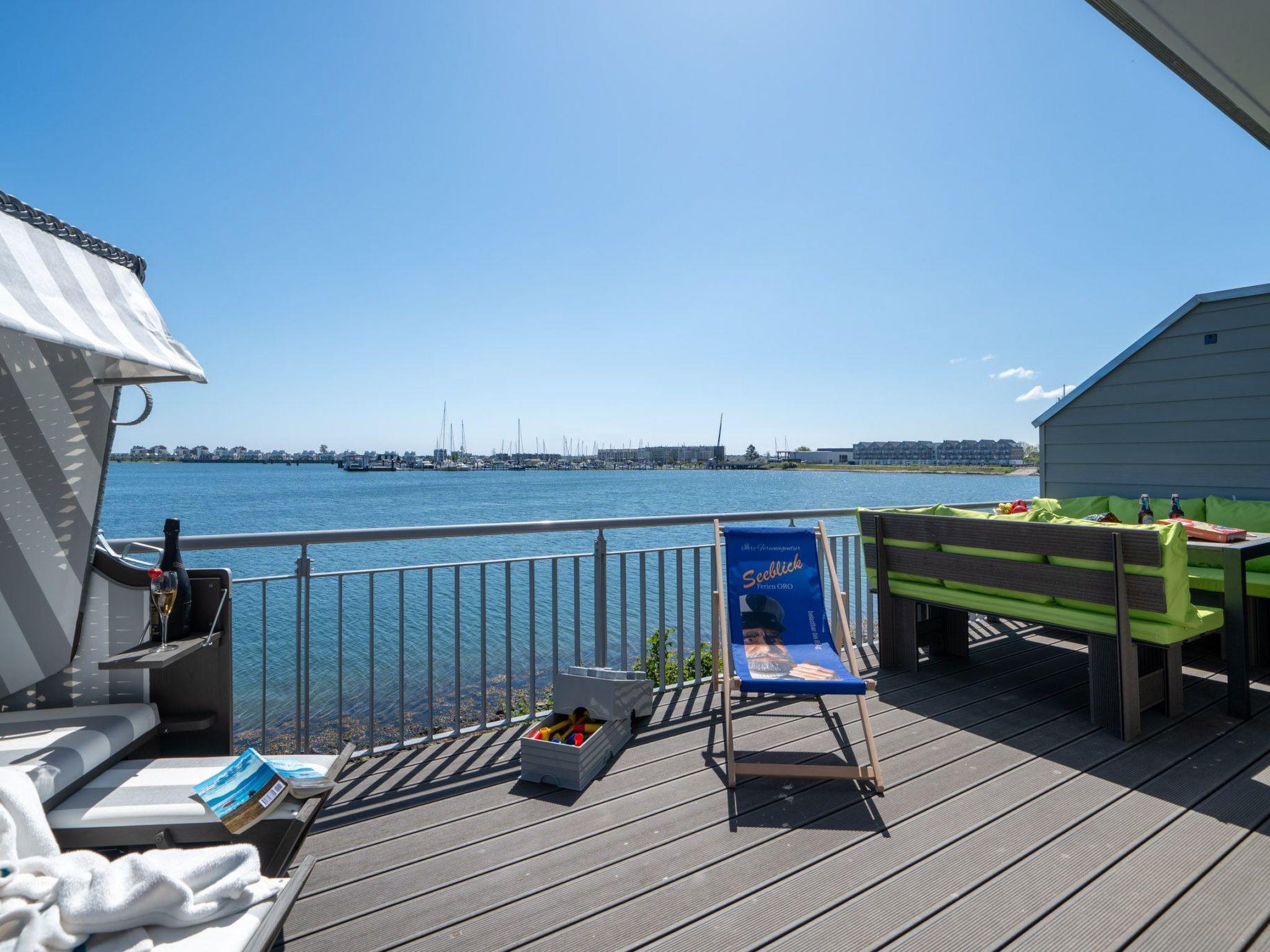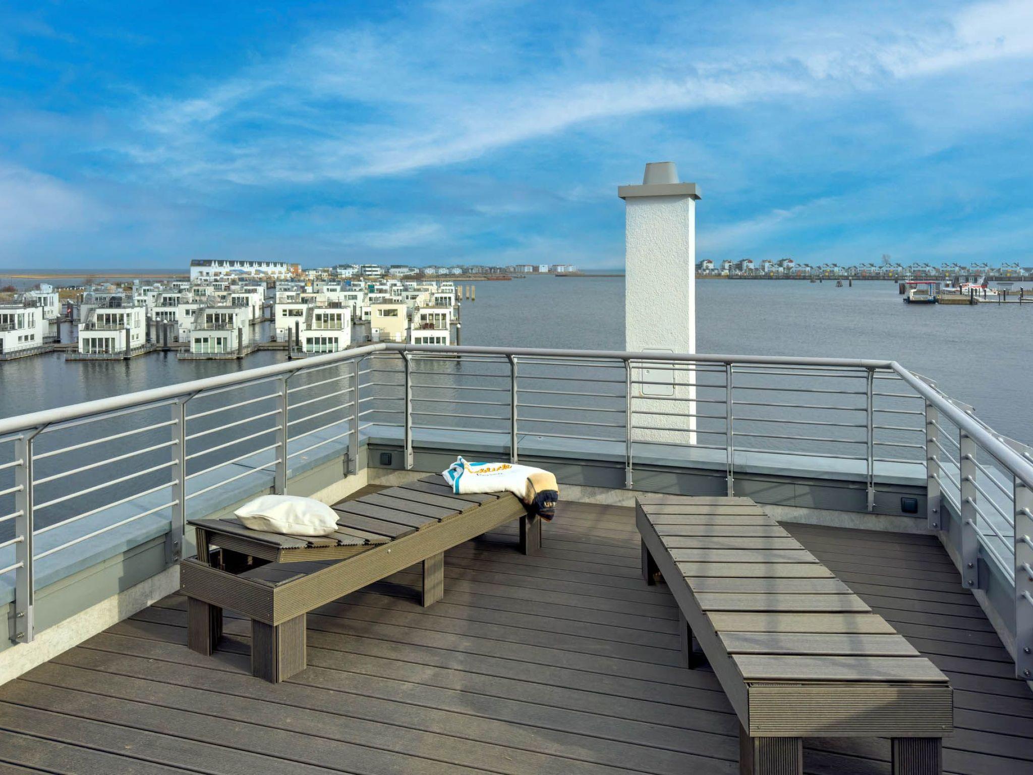 Spend cosy evenings in front of the crackling fireplace in the bright living room on the genuine leather sofa with sleeping function. Switch on the ambient lighting and let yourself be enchanted by the view of the harbour panorama.