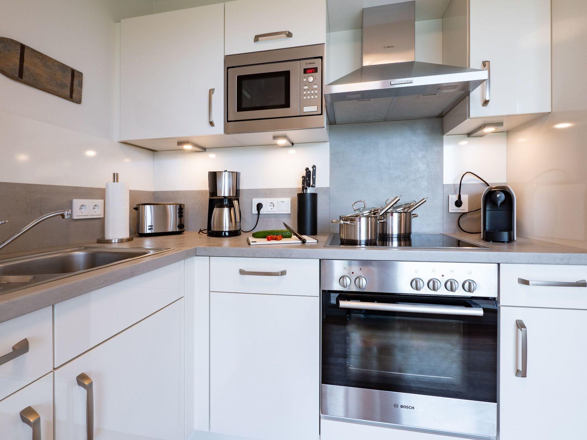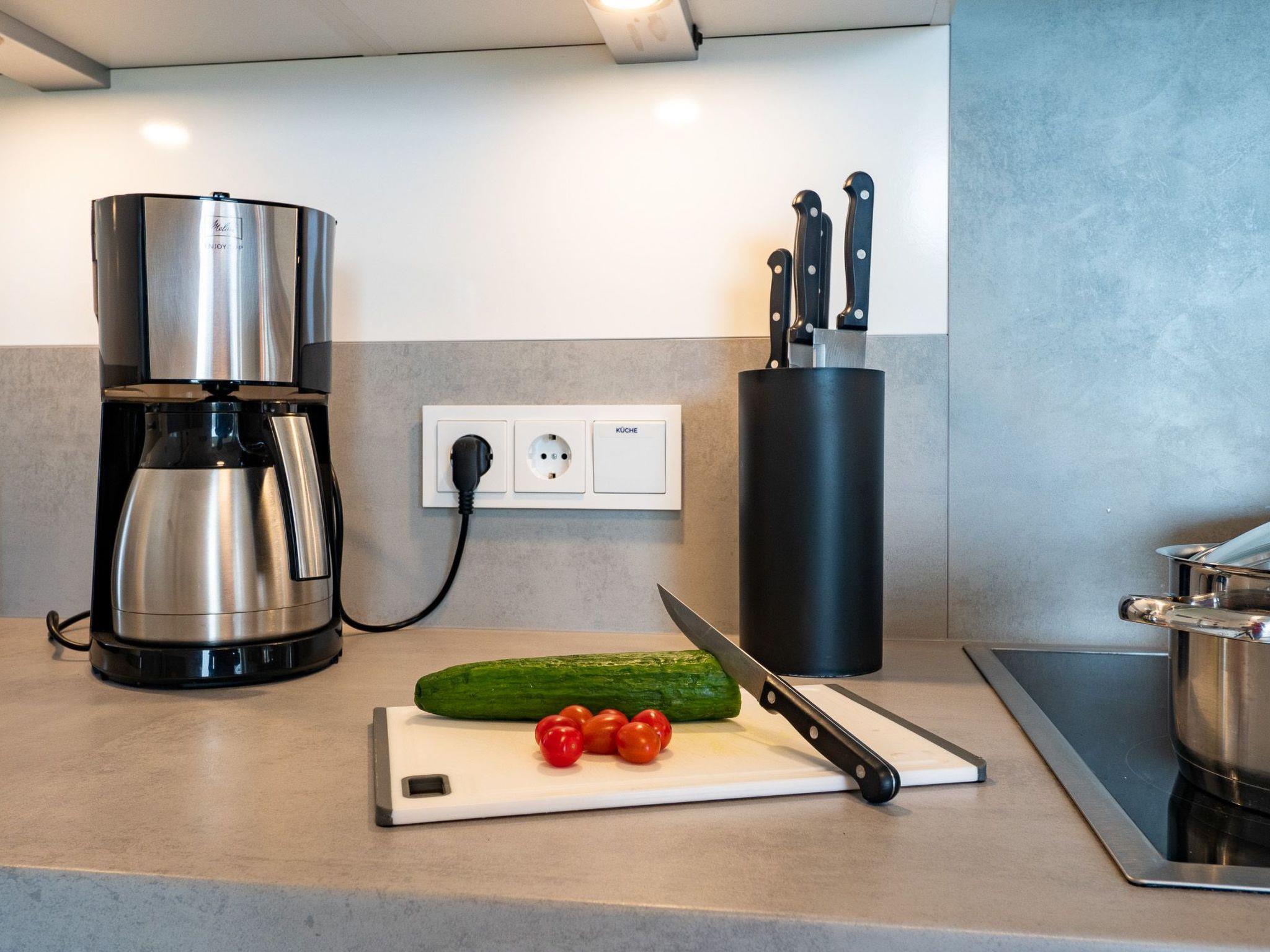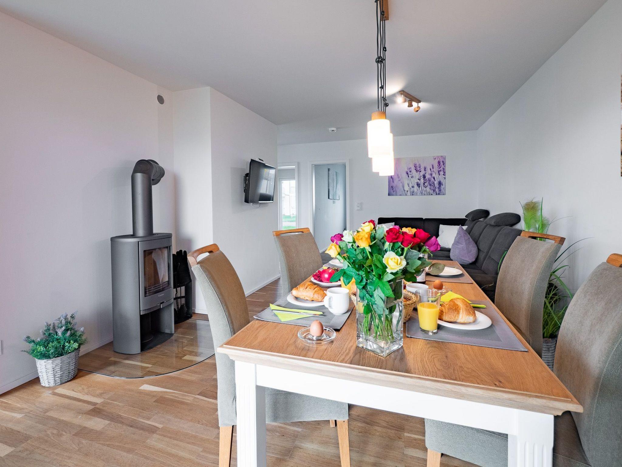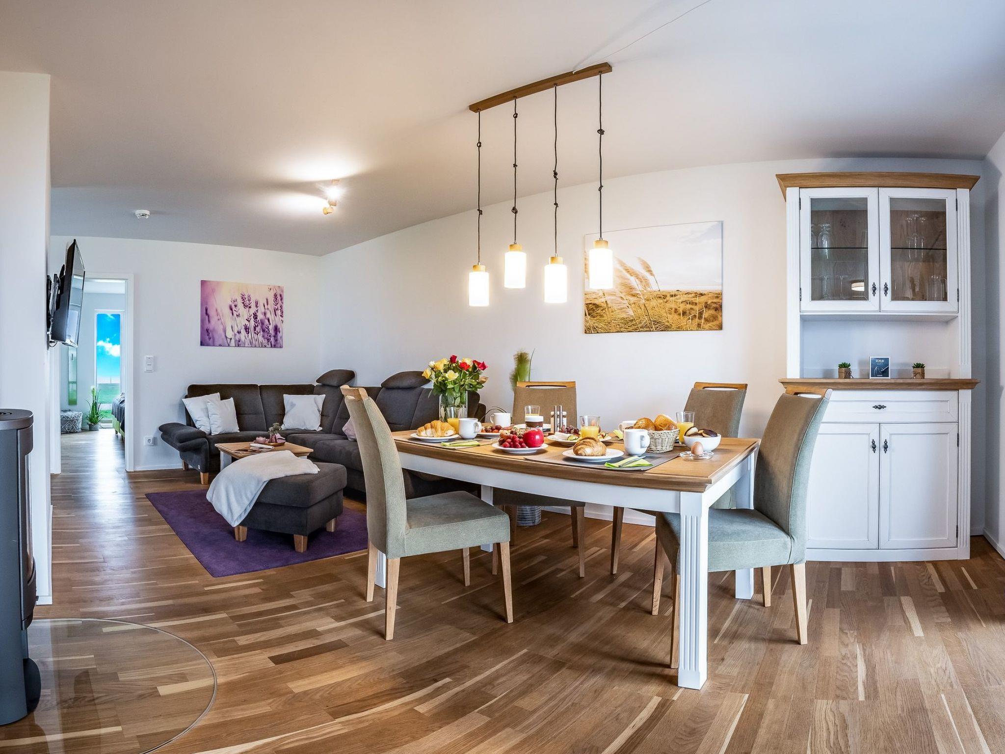 The wood-burning stove with its crackling fire and the underfloor heating transform even cold Nordic days into cosy hours of snuggling in this cosy ambience. Wi-Fi via fibre optic connection and Smart TV with Telekom Home Entertainment programme also provide indoor entertainment.