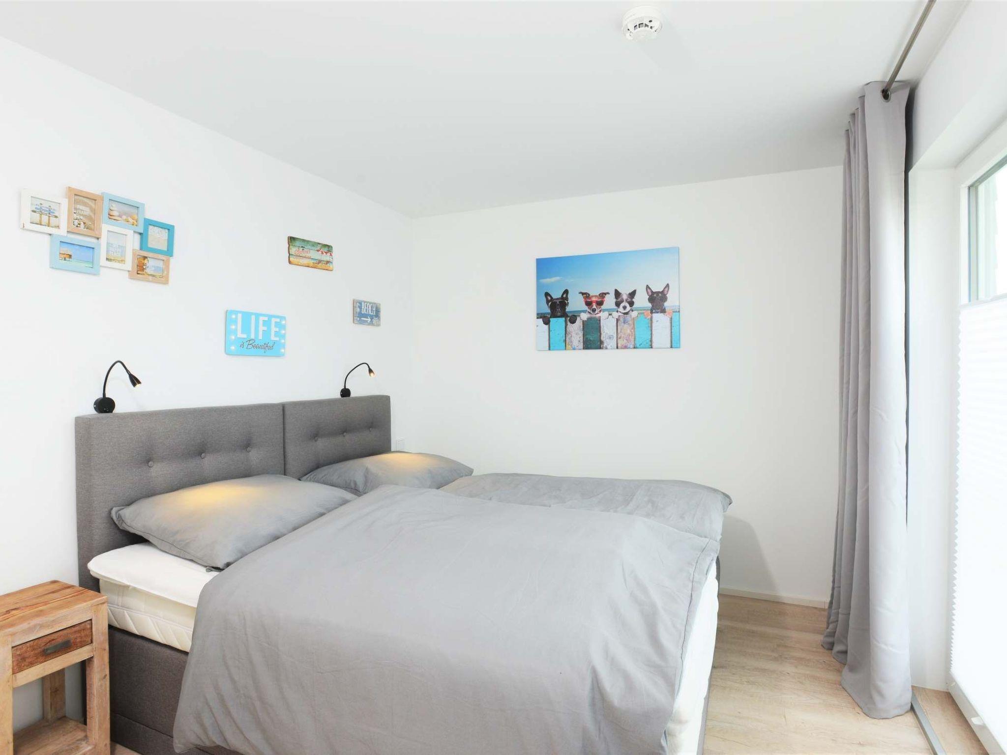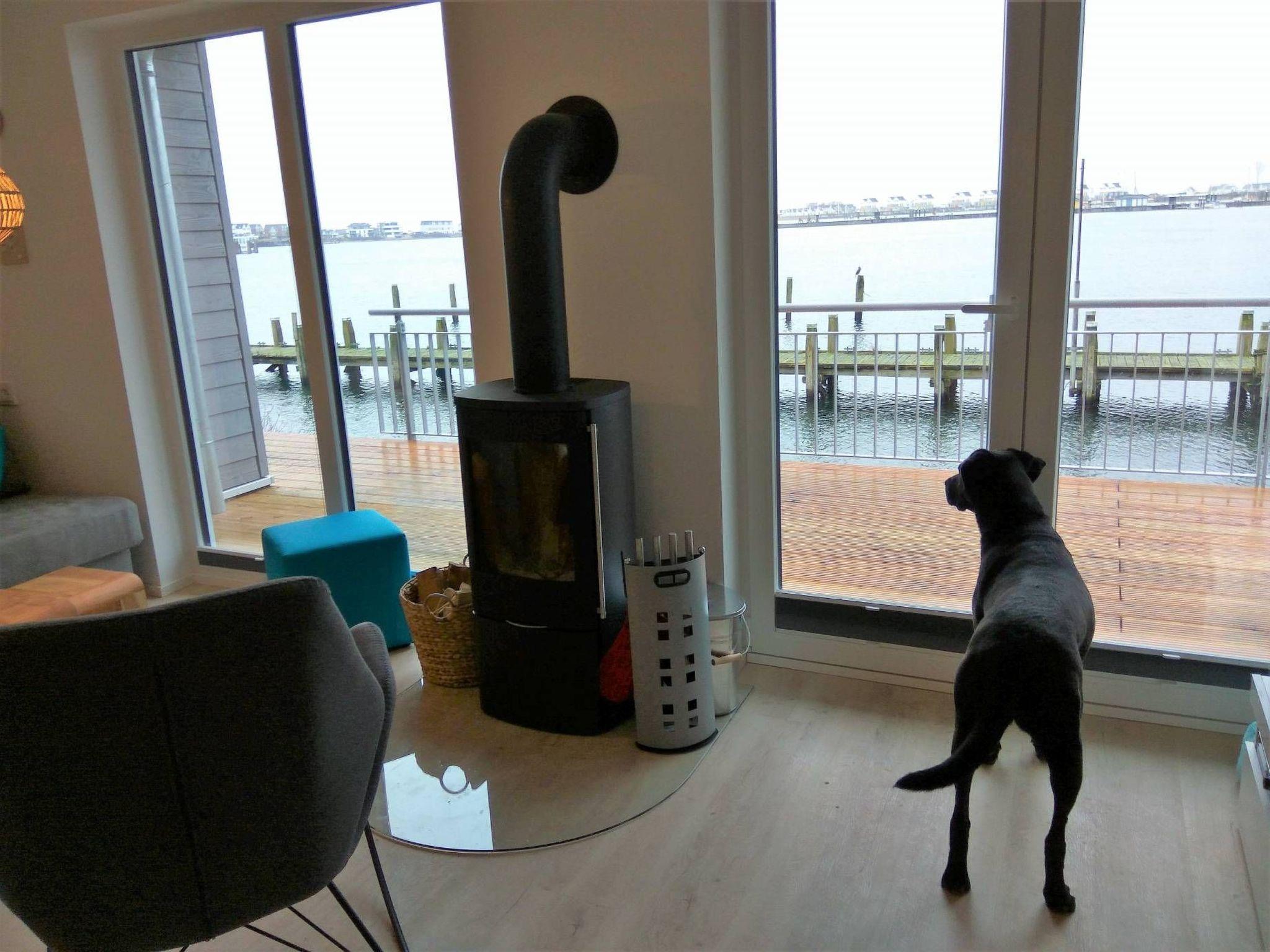 The beautiful wellness bathroom with shower, whirlpool bath, sauna and WC makes your holiday an experience even in bad weather. A further bathroom with shower and WC makes bathroom time easier for families. For the bad days there is also a nice fireplace (please bring your own wood), a Playstation PS4 pro, a few board games, DVDs and books. A beautiful bedroom with direct sea view and spacious box spring bed (1 double bed 180*200cm) offer a relaxed and restful sleep. The second bedroom has 2 single box-spring beds (90x200) and a sofa bed, here you can also see the water. A baby travel cot is available. A very comfortable sofa bed in the living room (sleeping area 150x200cm) is suitable for 2 more guests and you wake up with a direct view of the water. The holiday home has underfloor heating and elegant, white double-glazed plastic windows with blackout blinds in the bedrooms and living room.