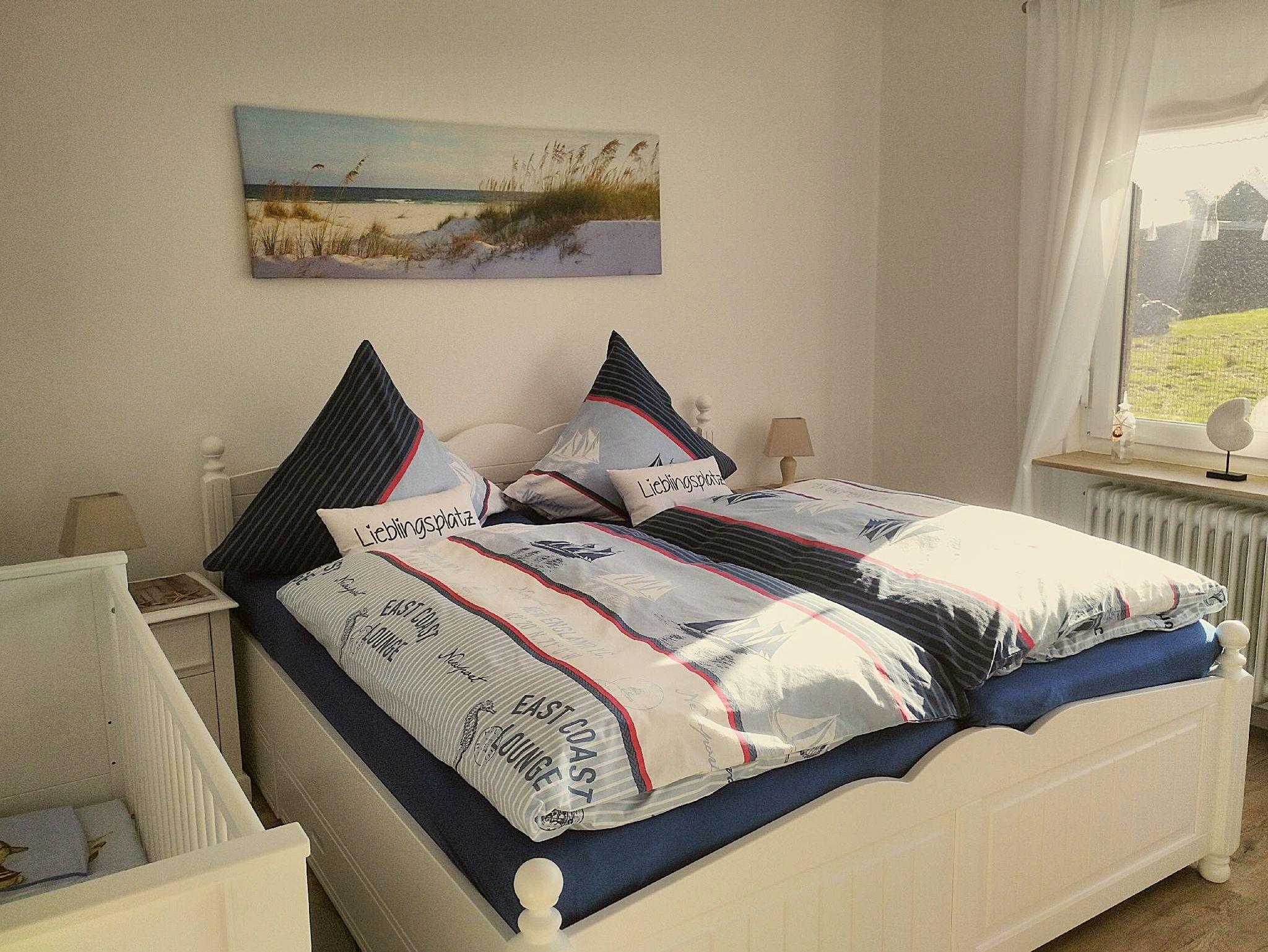 • Schlafzimmer mit Doppelbett (180x200); Bettwäsche inklusive; optional: Kinderbett (70x140) mit Bettwäsche