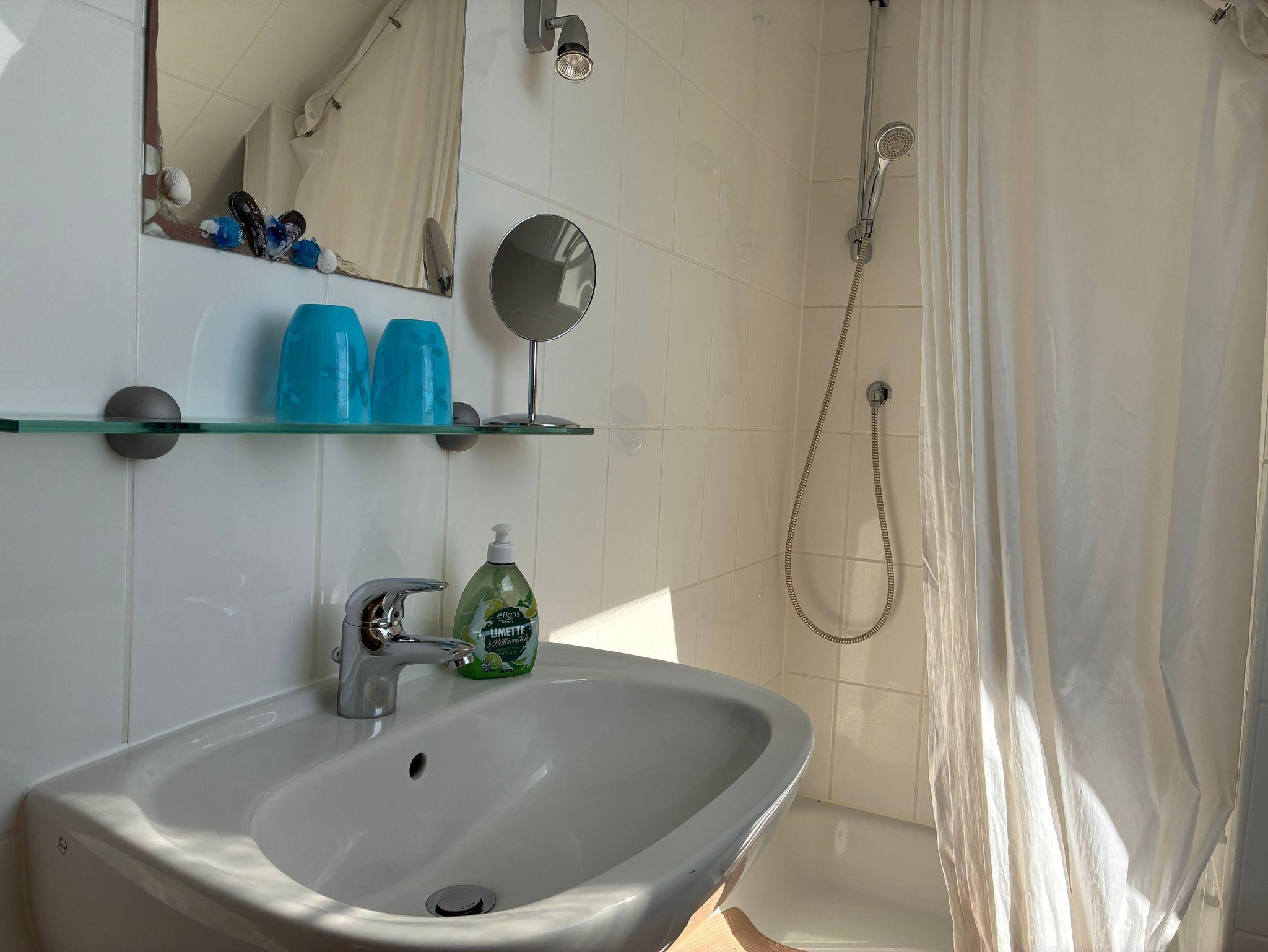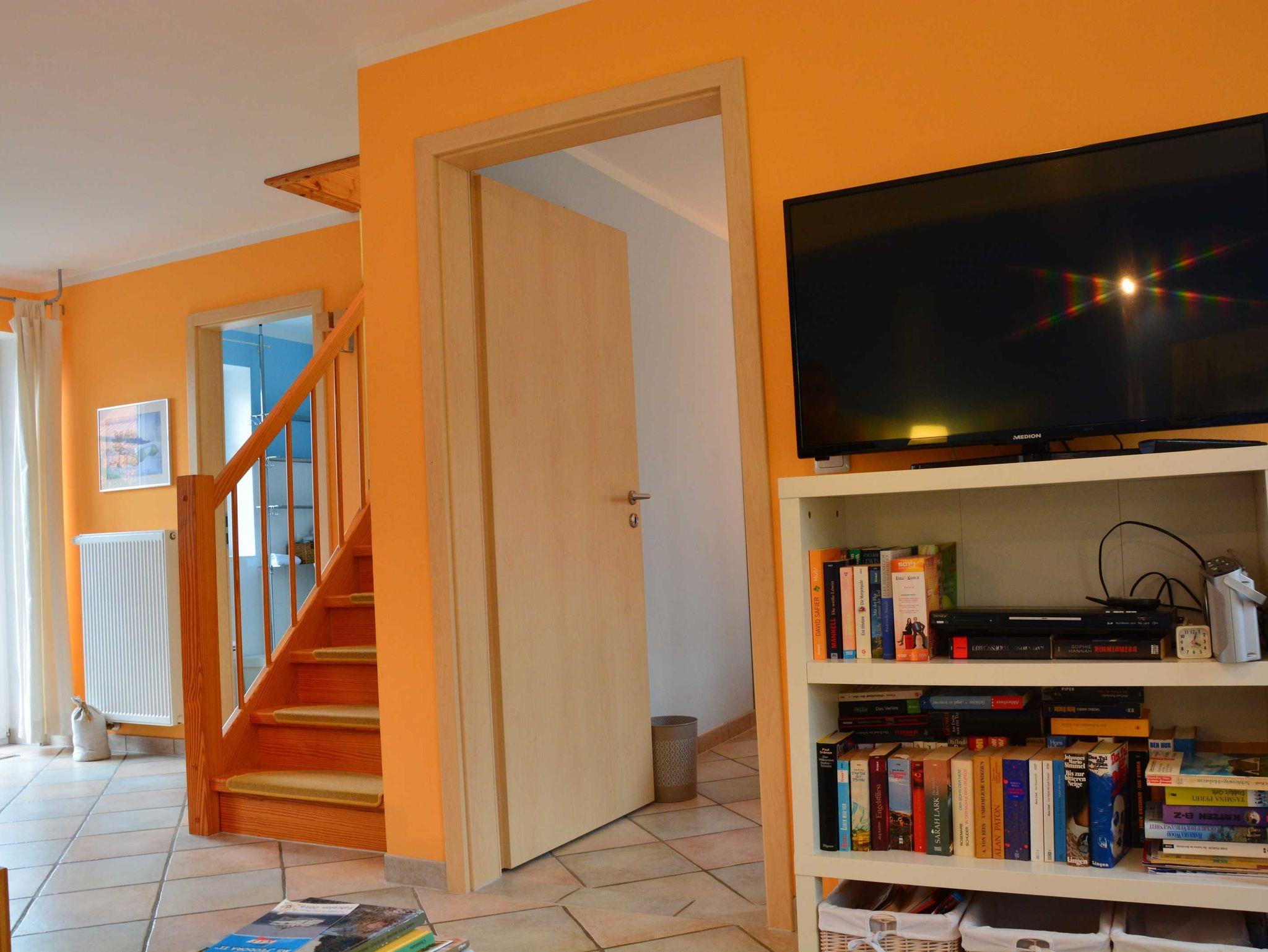 Kommen Sie unsere gemütliche Ferienwohnung besuchen. Bis zu 6 Urlauber finden hier auf ca. 80 m² Platz. Im Erdgeschoss befindet sich ein Wohn/Esszimmer mit offener Küche, ein Doppelschlafzimmer sowie ein Bad. Vom Wohnbereich gehen Sie auf Ihre eigene großzügige Terrasse, mit Gartentisch, Stühle und Sonnenschirm. Im Obergeschoss ist das zweite Doppelzimmer mit Babybett und Sitzecke. Das dritte Schlafzimmer befindet sich ebenfalls im Obergeschoss und ist mit zwei Einzelbetten ausgestattet. Ein weiteres Badezimmer vervollständigt das Obergeschoss. Beide Bäder sind zusätzlich mit Fußbodenheizung ausgestattet. Die Küchenzeile verfügt über einen Kühlschrank, 4-Plattenherd mit Backofen, Mikrowelle, Spülmaschine, Kaffeemaschine und Wasserkocher sowie reichlich Geschirr und Töpfe, so dass Sie selber für Ihr leibliches Wohl sorgen können - wenn Sie es möchten.