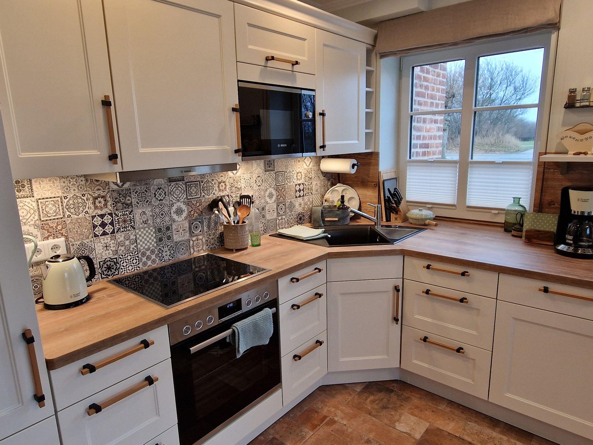 Die barrierearme Ferienwohnung Waschköök im Erdgeschoss des Haupthauses ist in einem charmanten Mix aus Alt und Modern gestaltet und hochwertig ausgestattet. Eine Fußbodenheizung sorgt für angenehme Wärme.