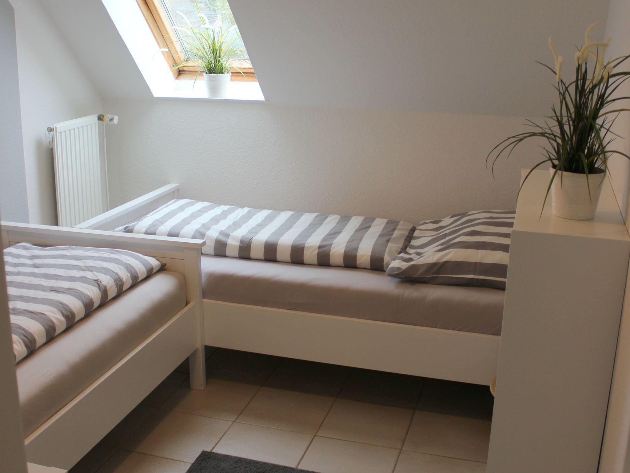 Wohnraum und ihren beiden gemütlichen Schlafzimmern Platz für bis zu 4 Personen. Das Elternschlafzimmer besitzt ein großzügiges Doppelbett. Im zweiten Zimmer befinden sich zwei Einzelbetten. Alle Betten sind für Ihren erholsamen Schlaf mit hochwertigen Matratzen und Lattenrosten ausgestattet.