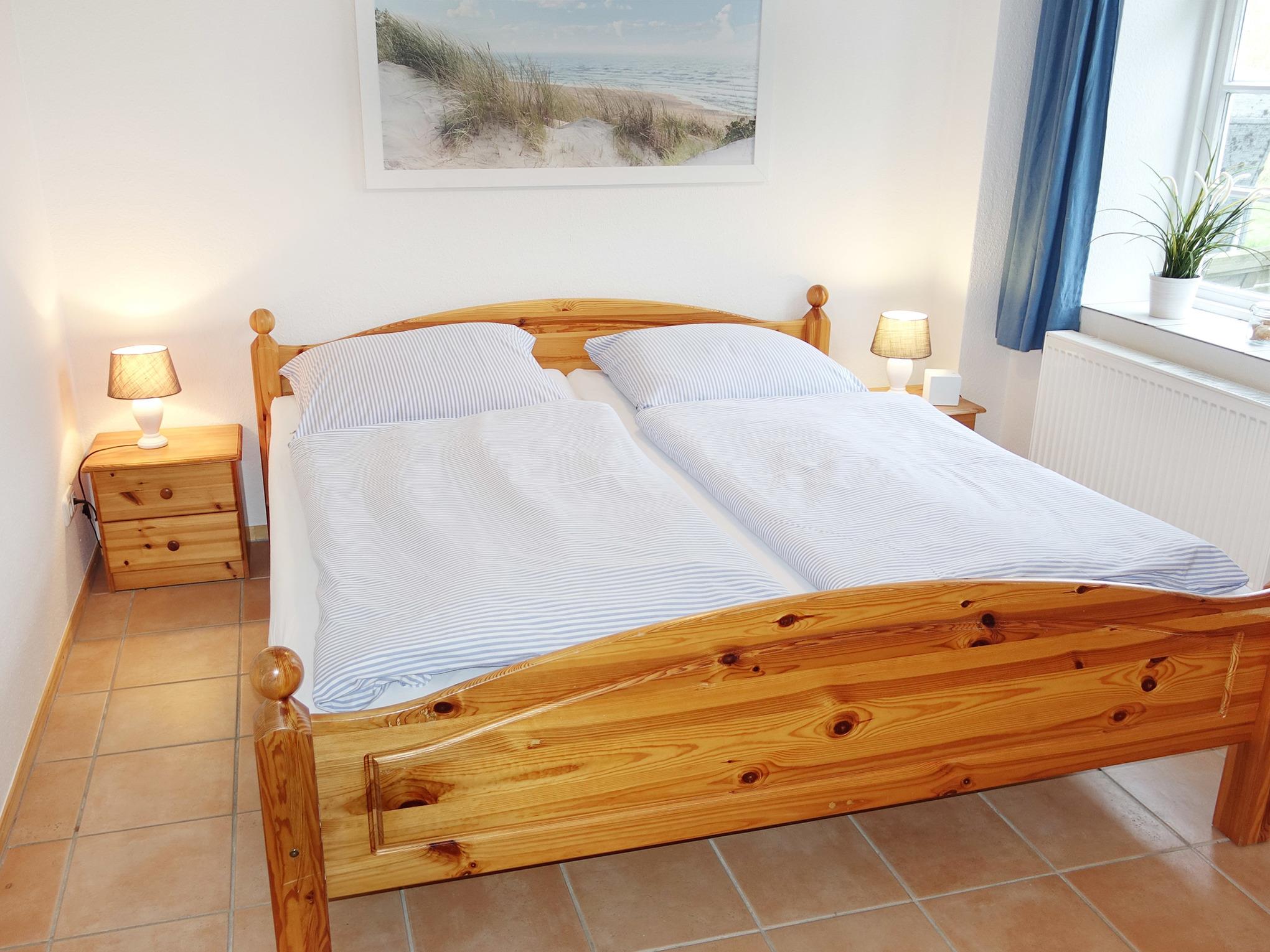Unsere Ferienwohnung "Seesternquartier" bietet mit ihrem gemütlich eingerichteten Wohnraum und ihren beiden gemütlichen Schlafzimmern Platz für vier Personen. Das Elternschlafzimmer besitzt ein großzügiges Doppelbett, das zweite Schlafzimmer zwei einzelne Betten. Alle Betten sind für Ihren erholsamen Schlaf mit hochwertigen Matratzen und Lattenrosten ausgestattet. Nach Herzenslust Kochen ist in der gut ausgestatteten Küche sehr leicht möglich, den Abwasch macht die Geschirrspülmaschine. Eine separate Terrasse mit eigenem Strandkorb lädt zum Lesen, Träumen und Seele baumeln lassen ein. Für Rollstuhlfahrer sind Eingangs- und Terrassentüren ohne Schwellen eingebaut worden, und die Türen innerhalb der Wohnung sind einen Meter breit. Im Bad wurden unterfahrbare, flache Waschbecken und Haltegriffe an der Toilette sowie an der flachen Dusche verbaut.