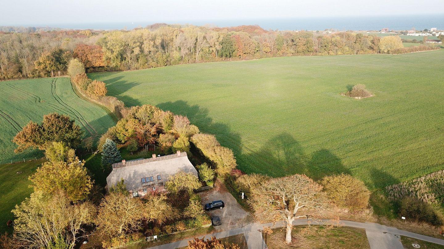 Die gemütliche 46m² große Ferienwohnung "Hühnerstall" bietet Platz für bis zu 4 Personen und befindet sich in einem freistehenden kleinen Nebengebäude eines Reetdachhauses. Die abgelegene Lage des Grundstücks und die Nähe zur Ostsee bieten einen idealen Ausgangspunkt für einen perfekten Urlaub. Die renovierte Wohnung verfügt über einen Wohn- und Schlafbereich mit integrierter Küchenzeile. Die Küche ist mit Kaffeemaschine, Wasserkocher, Toaster, Kühlschrank, Ceran-Kochfeld, Backofen, Mikrowelle sowie allen wichtigen Kochutensilien hervorragend ausgestattet. Machen Sie es sich auf dem Sofa gemütlich und lassen Sie sich von einem Film oder einer Serie auf Netflix unterhalten. Das bequeme Doppelbett (180x200cm) lässt sich durch Schiebevorhänge separieren. Ein Kleiderschrank und eine Kommode bieten viel Stauraum. In dem Schlafzimmer befindet sich ein Etagenbett für 2 Personen (je 90x200cm). Das Tageslicht-Duschbad verfügt über einen Fön und einen Handtuchheizkörper. Zur Ferienwohnung gehört eine möblierte Terrasse, auf der sie auch ein Strandkorb erwartet. Für die Kleinen sind ein Kinderreisebett und ein Hochstuhl vorhanden. Ihr Vierbeiner ist ebenfalls herzlich willkommen! Lassen Sie die Kinder mit dem Hund im Garten spielen und lehnen Sie sich zurück und genießen Sie Ihren Urlaub in vollen Zügen. Die Kids werden dank Klettergerüst mit Rutsche, Schaukel und einem Sandkasten bestens beschäftigt sein. Erholen Sie sich in der gemeinschaftlichen finnischen Fasssauna und lassen Sie den Alltag hinter sich bei dem traumhaften Blick auf die Landschaft. Genießen Sie die Ruhe in dem großen Garten! Dieser steht ebenfalls den 3 weiteren Ferienwohnungen des Reetdachhauses zur Verfügung, jedoch sind durch die 2000m² genügend Platz für alle da. Der Garten ist zu 3 Seiten eingezäunt, an der 4. Seite schließt das Grundstück durch einen Knick ab. Ein Stellplatz ist vorhanden.