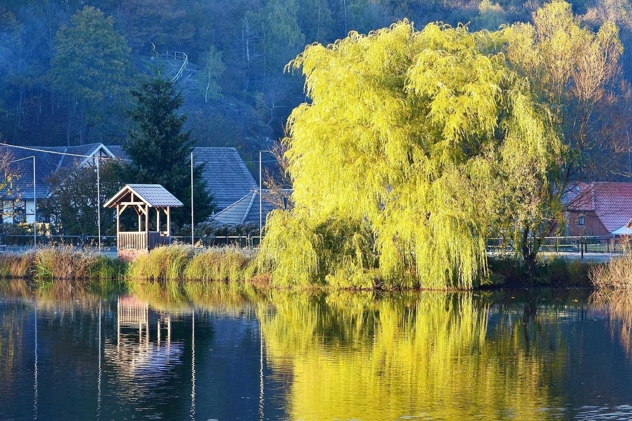Lille feriekompleks i udkanten af Hasselfelde, på en svag skråning på rummelig grund. Dobbelthusene med deres naturlige trævægge og trægulve giver en hyggelig og hyggelig feel-good atmosfære. Tag på lange udflugter i Harzens smukke landskab. Brugen af udvalgte buslinjer i Harzen er gratis for gæster på anlægget i forbindelse med byskatten. Aktiviteter i nærheden: Det klimatiske kursted Hasselfelde midt i Hochharz indbyder naturligvis til vandreture, men også til en tur på Selketalbahn, som har sin egen togstation i landsbyen og er en del af Harzer Schmalspurbahnen transportforening . I landsbyerne og byerne i regionen er der også talrige museer og miner, som garanterer kulturel variation til din ferie Ikke egnet til personer med nedsat mobilitet