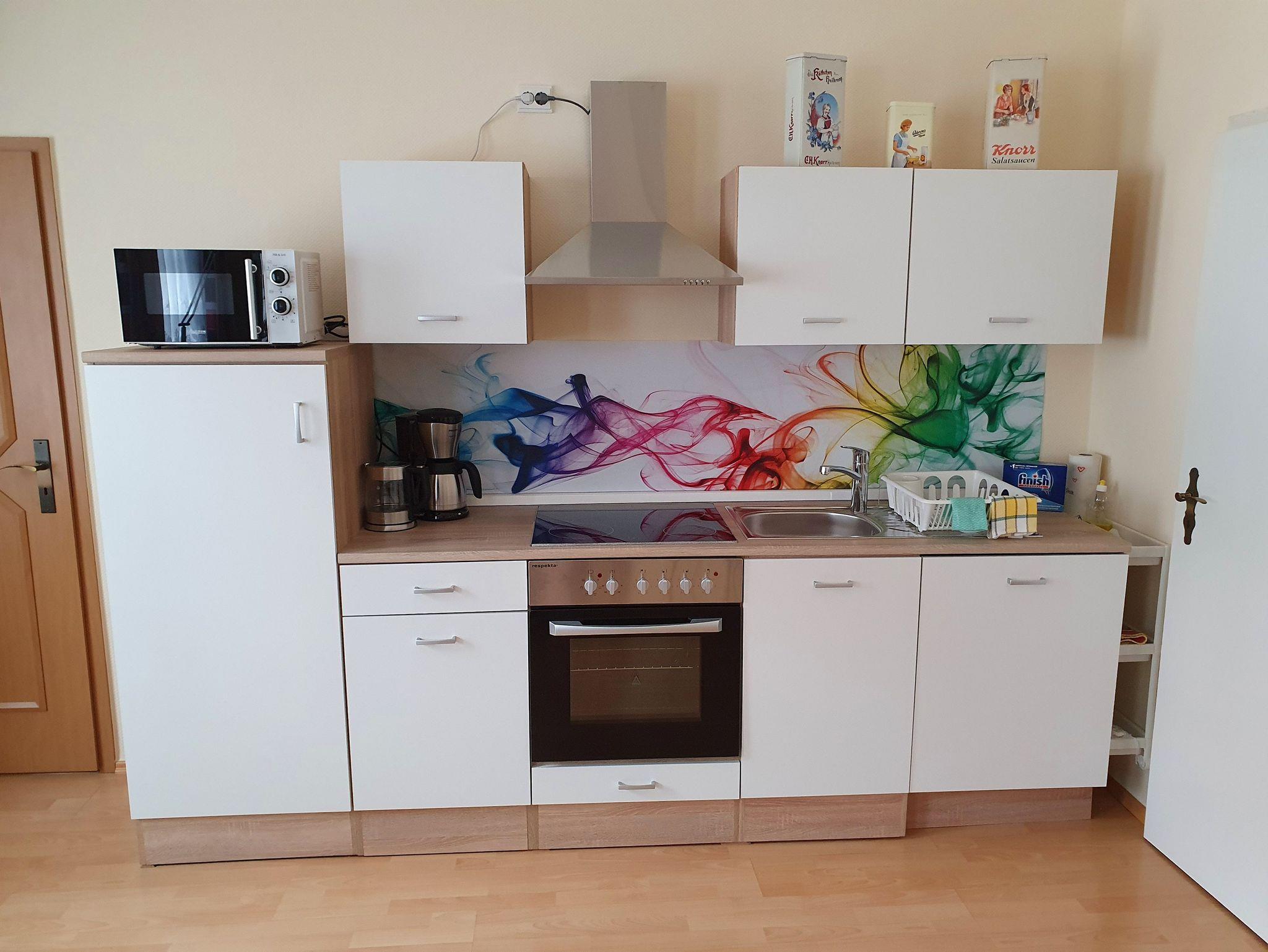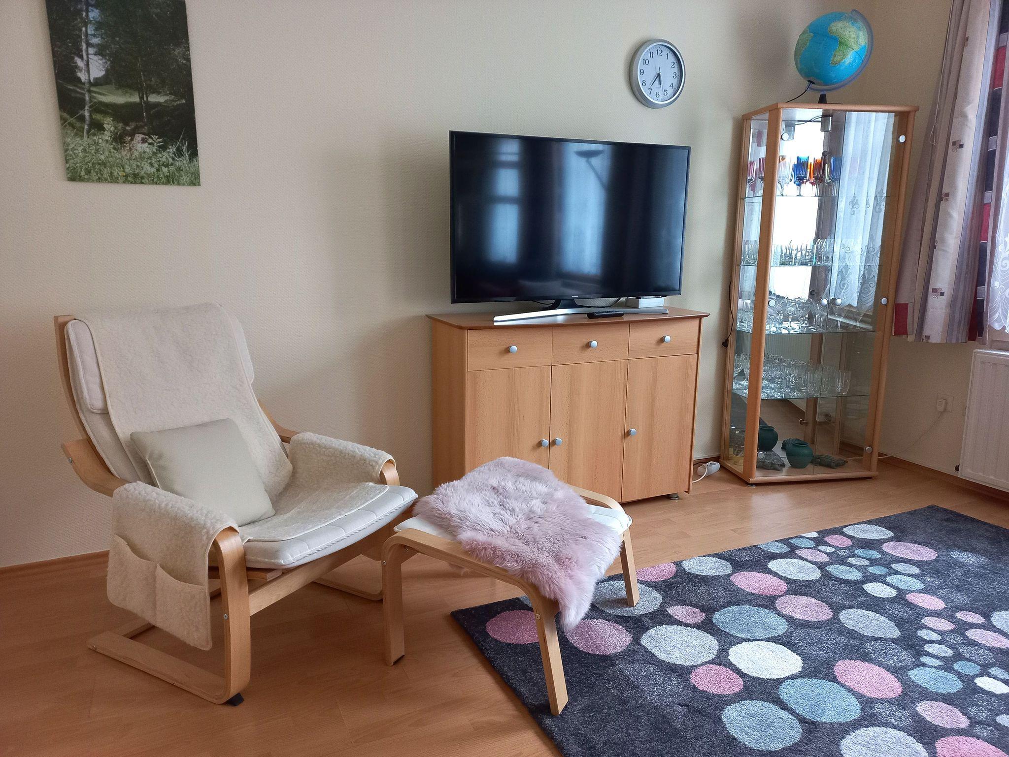Unsere Nichtraucher-Ferienwohnung befindet sich im Erdgeschoss des 2-Familien-Hauses. Über den Eingangsbereich mit Treppenflur erreichen Sie die separate Wohnung. Ein großes, helles und modernes Wohnzimmer mit integrierter Küchenzeile und Essecke lädt zum Verweilen ein. Ein bequemes Schlafsofa bietet die Möglichkeit der Aufbettung für Ihre Kinder oder Enkelkinder. Zusätzlich steht Ihnen noch eine Aufbettung in Form eines Schrankbettes zur Verfügung. Die Küchenzeile hat alles, was Ihren Urlaub bei uns angenehm gestaltet. Vom Backofen mit Cerankochfeld, Kühlschrank mit Gefriermöglichkeit, einer Mikrowelle, einem Geschirrspüler bis hin zur Kaffeemaschine ist alles vorhanden. Das Schlafzimmer verfügt ein Doppelbett (1,80 x 2,00 m) und einen Kleiderschrank. Das Bad ist innenliegend und mit einer Dusche ausgestattet. Leider können wir Ihnen auf dem Grundstück keinen Parkplatz zur Verfügung stellen. Am Haus direkt befinden sich kostenlose öffentliche Parkflächen.