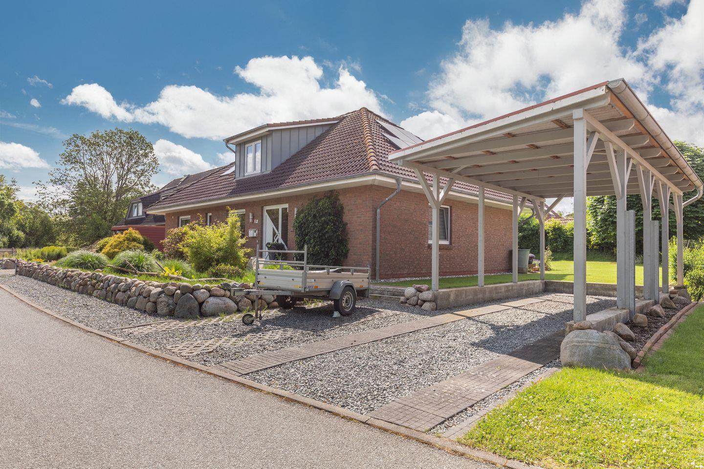 Die Ferienunterkunft Süden in Hattstedt bietet auf 38 m² ein Schlafzimmer, ein Badezimmer und eine gut ausgestattete Küche. Ein privater Parkplatz, gemeinschaftliche Terrasse mit Grill, Garten, WLAN ab 100 Mbit/s, TV, Spiele und Bücher sorgen für Komfort. Nur 300 Meter von Einkaufsmöglichkeiten und drei Kilometer vom Meer entfernt, ist sie ländlich und ruhig im Dorf gelegen.